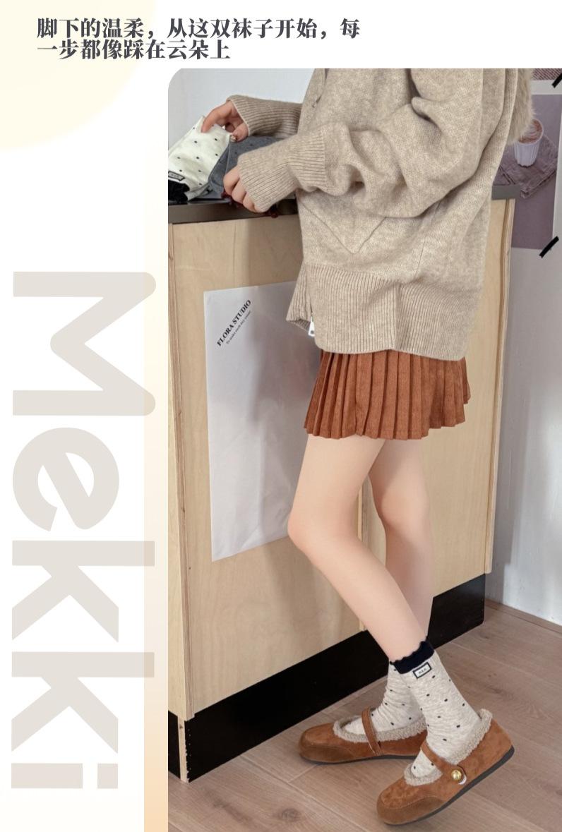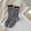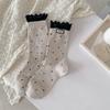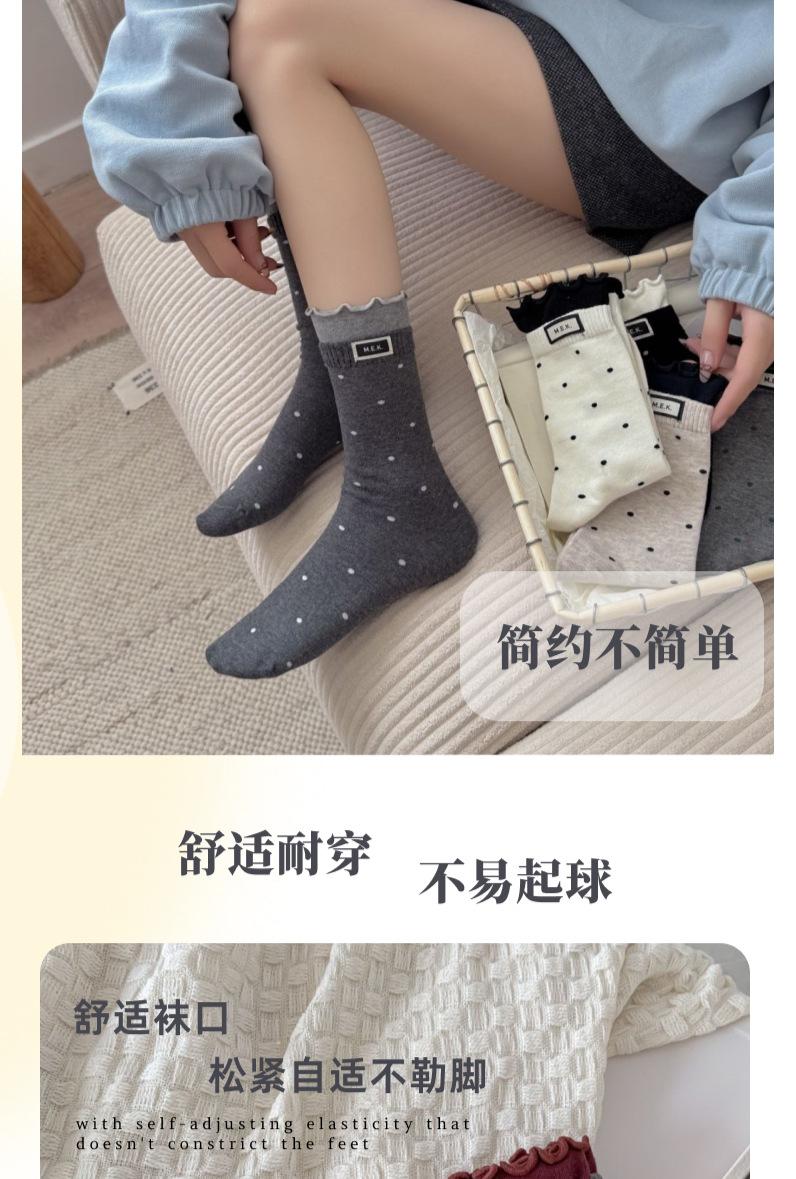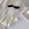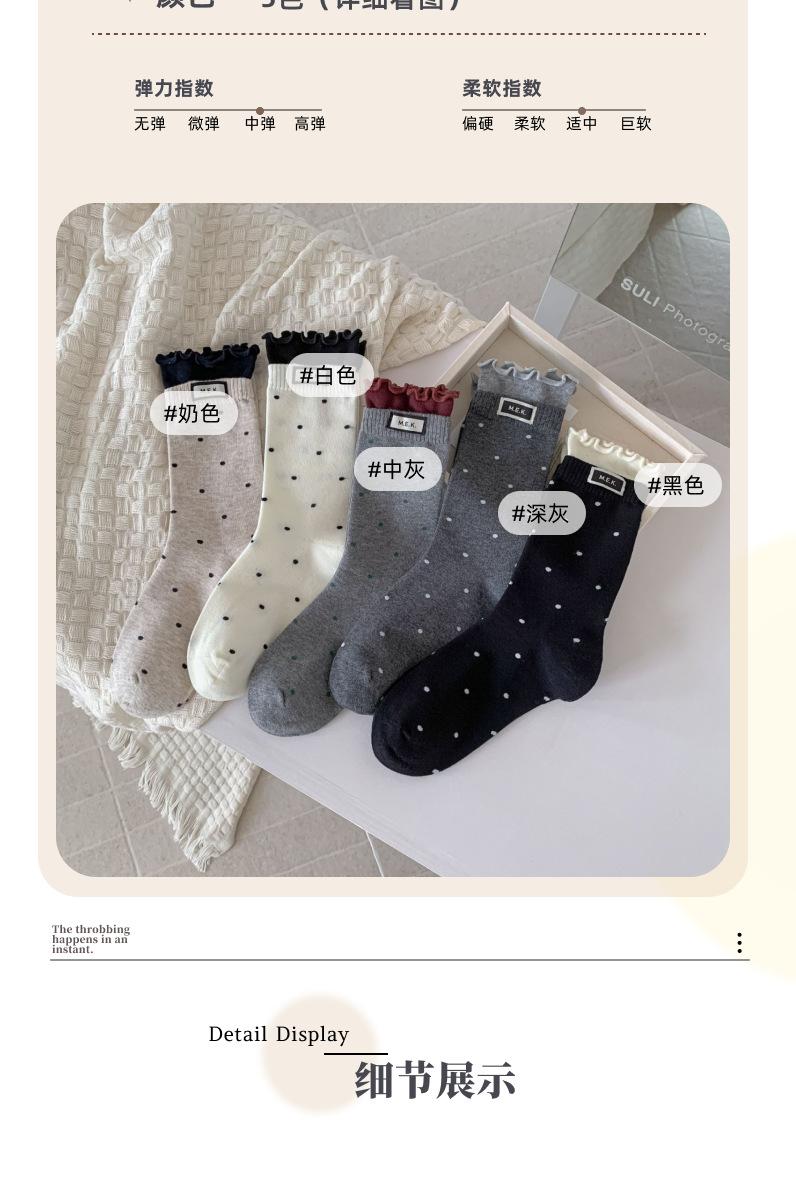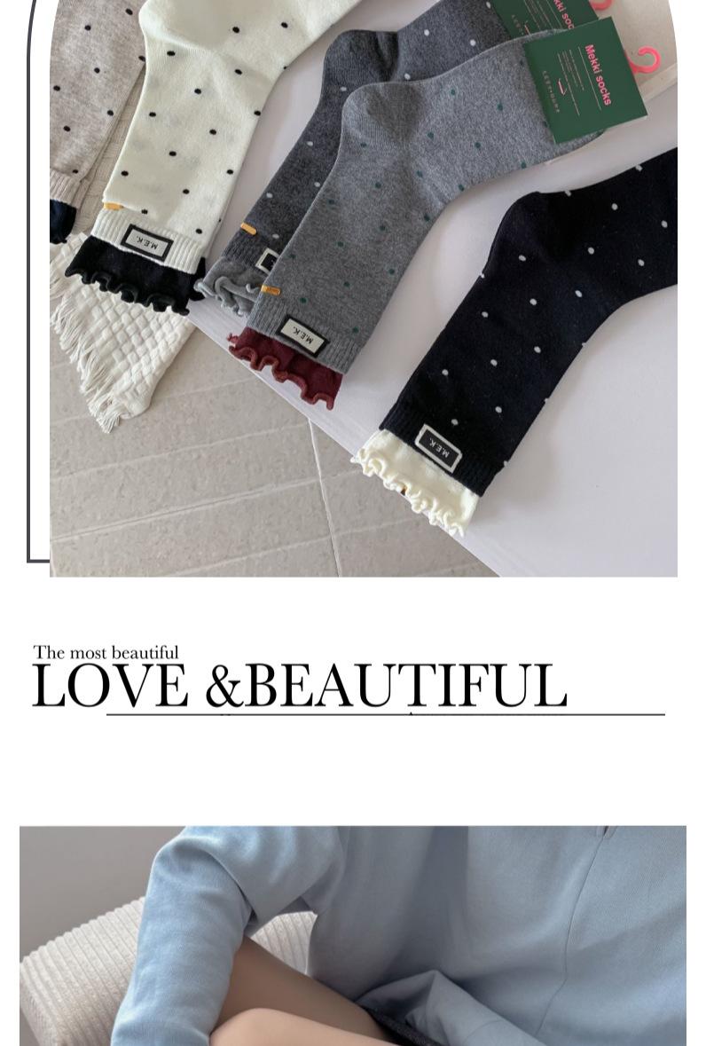 Calcetines de Media Caña de Otoño e Invierno con Borde de Hongo y Lunares, Versátiles, Diseño de Etiqueta de Tela Inglesa con Encaje, Calcetines para Mujer, Calcetines de Algodón Simples y Casuales