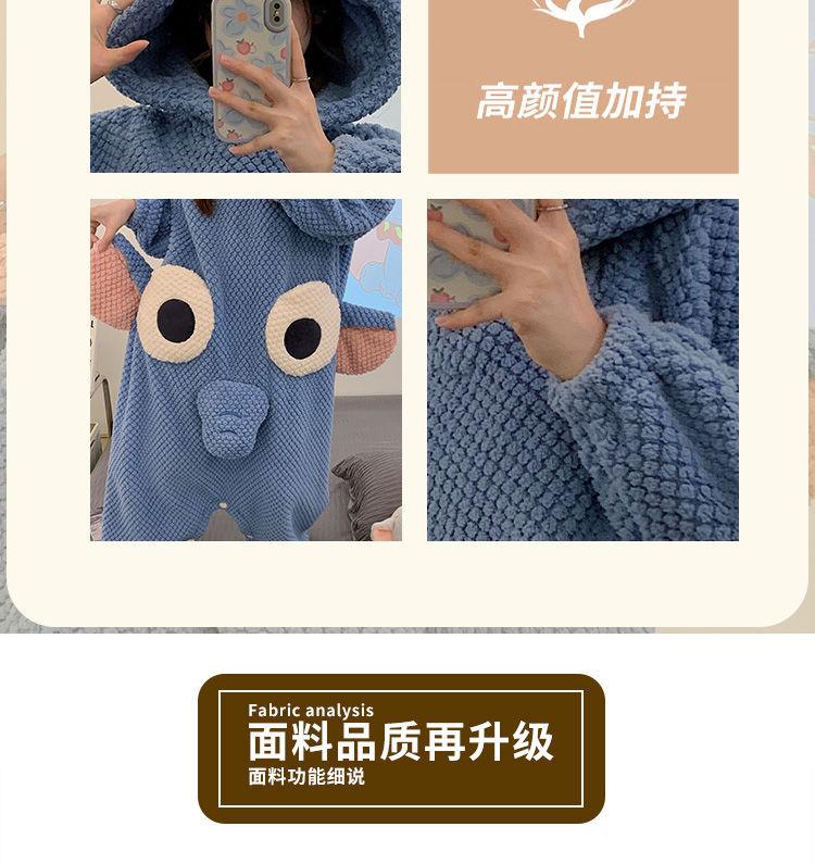 Pijama Onesie de Elefante de Dibujos Animados para Mujer Invierno con Forro Polar Grueso Estilo Otoño e Invierno Holgado Ropa Exterior con Capucha Ropa para el Hogar