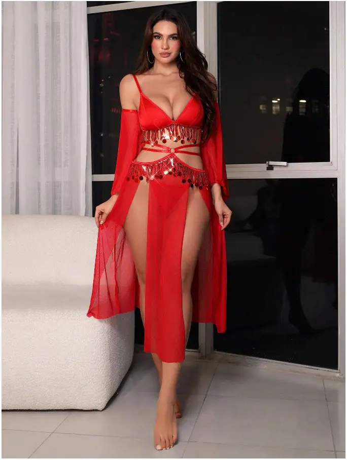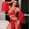 Nueva Ropa Interior Sexy Europea y Americana de Comercio Exterior Sexy Malla Calada Transparente con Abertura Estilo Exótico Set Erótico al Mayoreo