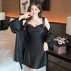Burgundy-two-piece set (nightdress + outer robe), Black-two-piece set (nightdress + outer robe), Green-Two-pie...