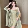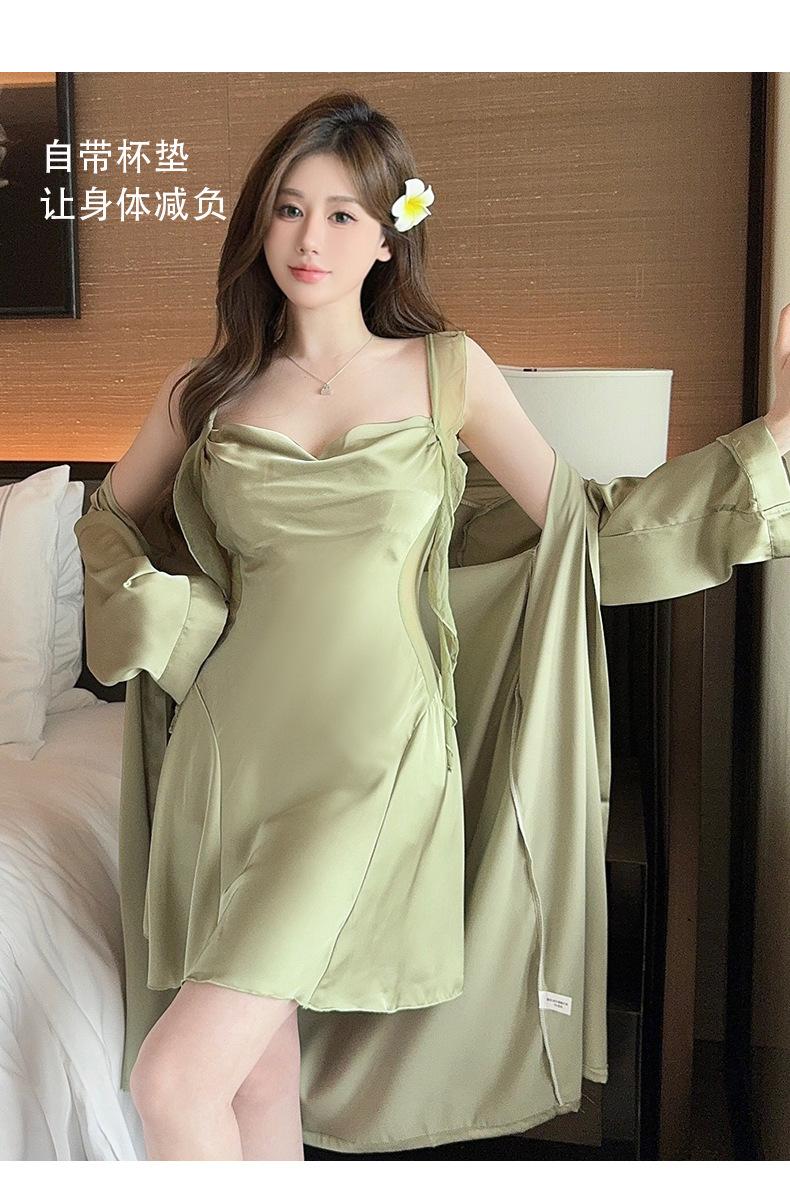 Pijama Transfronterizo de Seda de Hielo Camisola Bata Conjunto de Dos Piezas para Mujer Verano Lencería Sexy Camisón Estilo Delgado con Almohadillas para el Busto