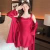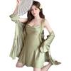 Compra Pijama Transfronterizo de Seda de Hielo Camisola Bata Conjunto de Dos Piezas para Mujer Verano Lencería Sexy Camisón Estilo Delgado con Almohadillas para el Busto al por mayor en Joom.pro
