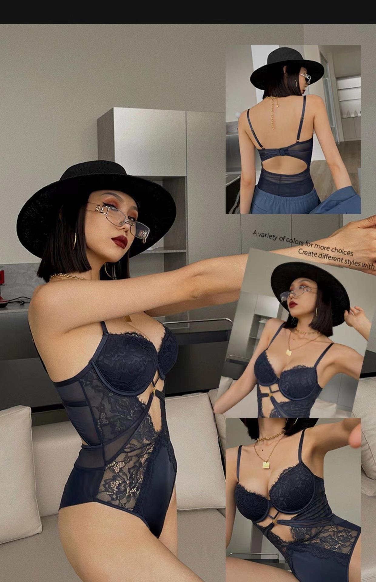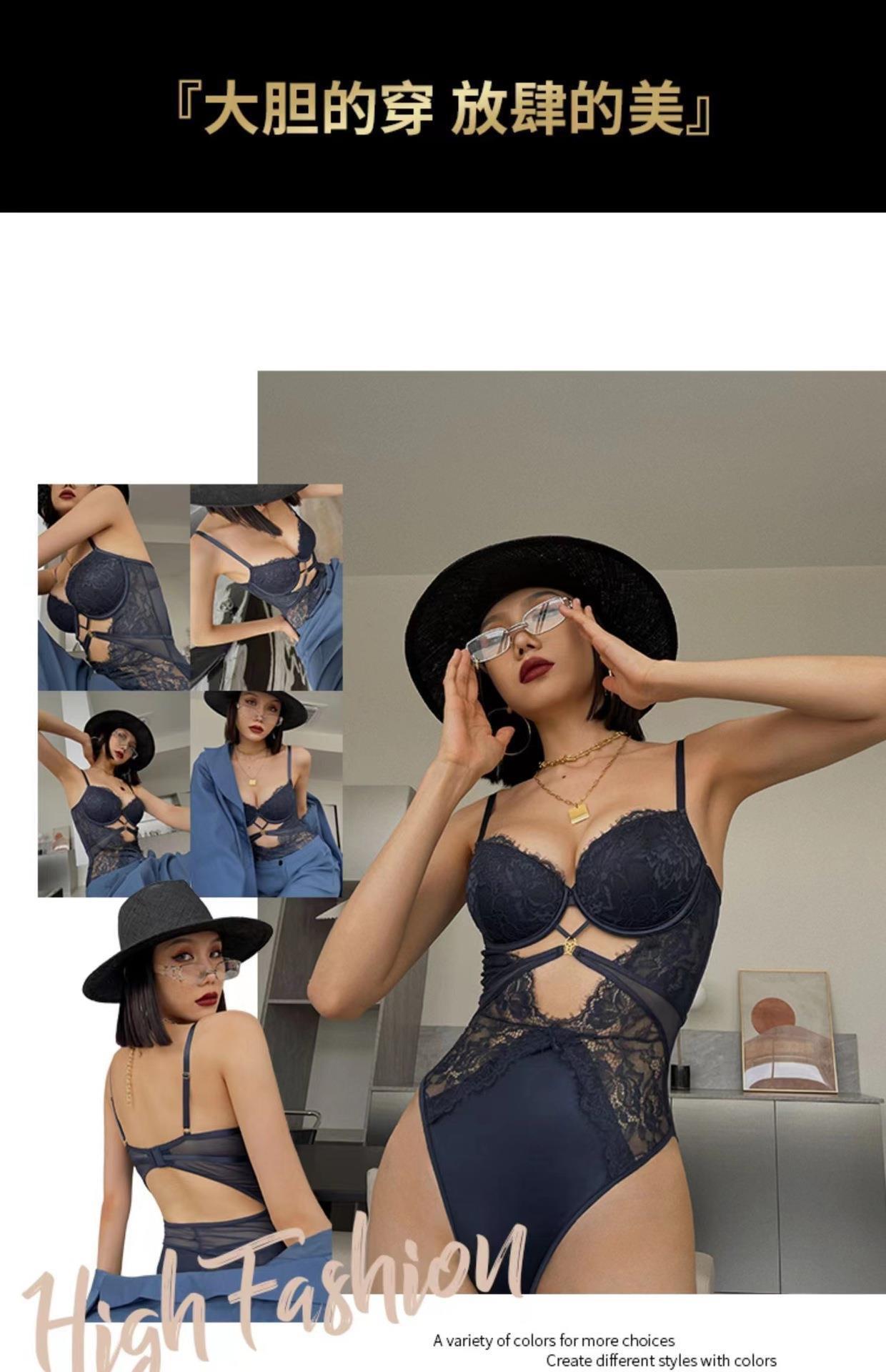 Mono Moldeador de Cuerpo Estilo Europeo y Americano Sexy Encaje Hueco Sujetador Reunión Pecho Pequeño Micro-mono Moldeador de Cuerpo Corsé Ajustado