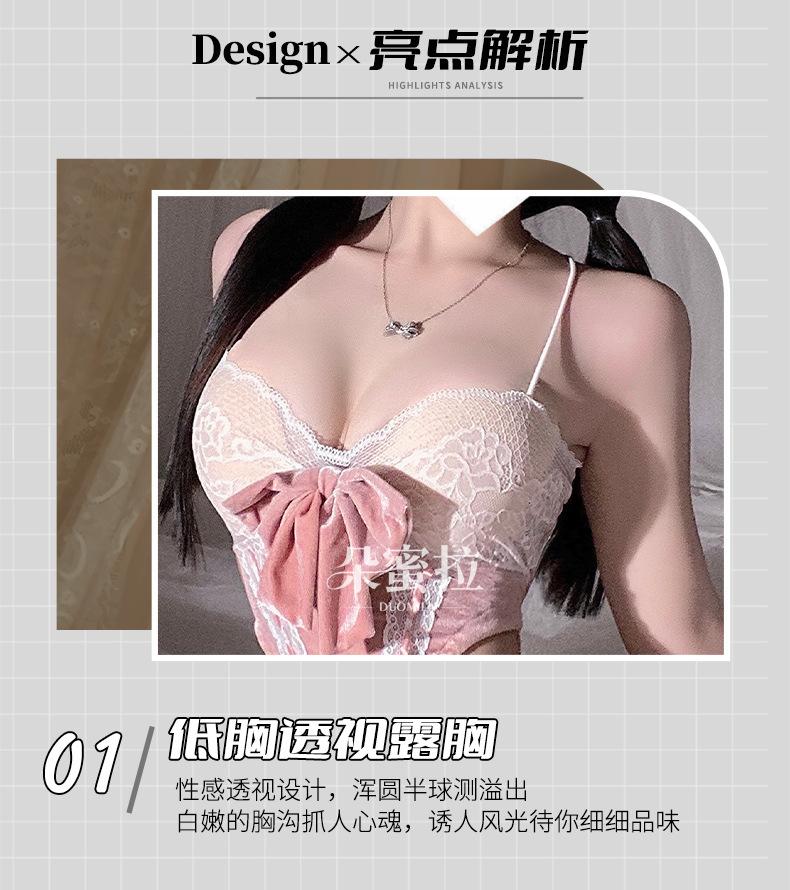 Domila Lencería Sexy Camisola Encaje Transparente Espalda con Lazo Body de Conejita Set de Uniforme