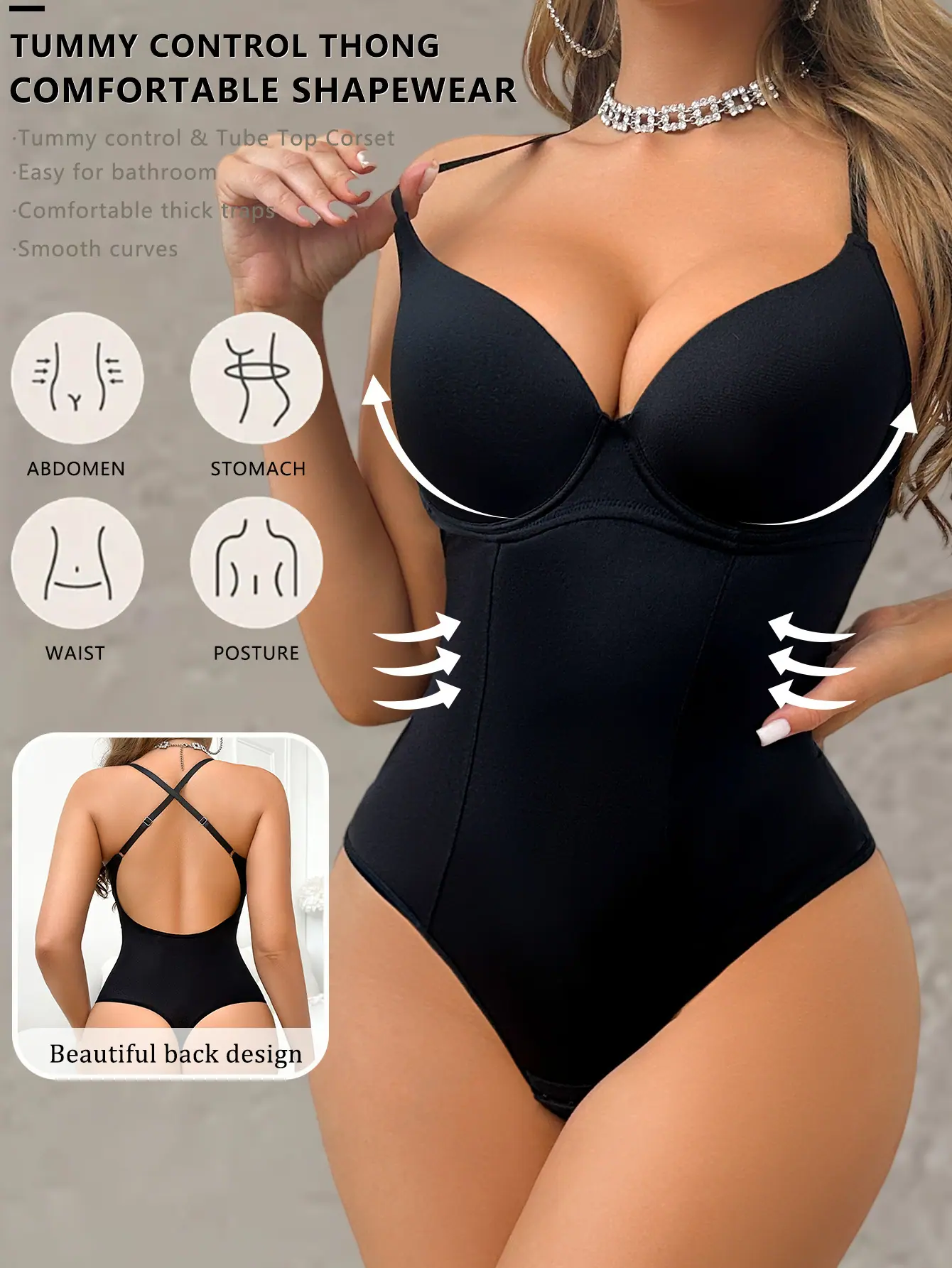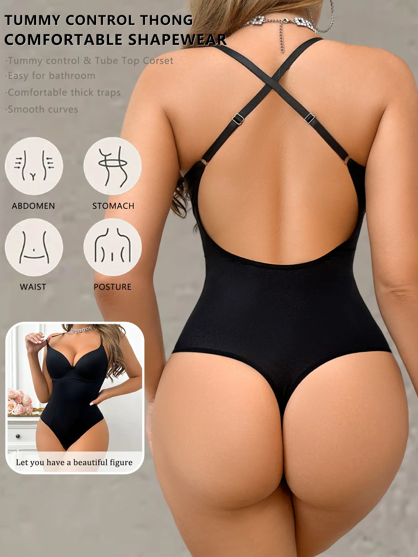Vendedor Popular Transfronterizo Shein TEMU Amazon Body de Una Pieza Ajustado Espalda Descubierta con Fila de Ganchos Copas de Algodón Cinturilla Moldeadora