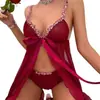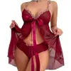 Comercio Exterior Transfronterizo Lencería Sexy Europea y Americana de Malla con Flor Pequeña Tirante Espagueti Lazo Abertura Conjunto de Camisón