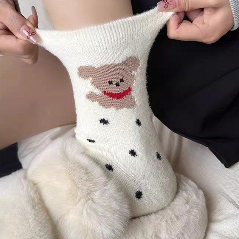 Calcetines de Mujer Otoño Invierno Media Caña Invierno Dibujos Animados Media Caña Forro Polar Cálidos Gruesos Calcetines de Cachorro Calcetines de Piso Lindos Jacquard
