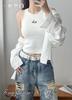 Camiseta interior de otoño e invierno cepillada de nuevo estilo con copas de pecho integradas, tejido de punto acanalado, top exterior versátil para mujer