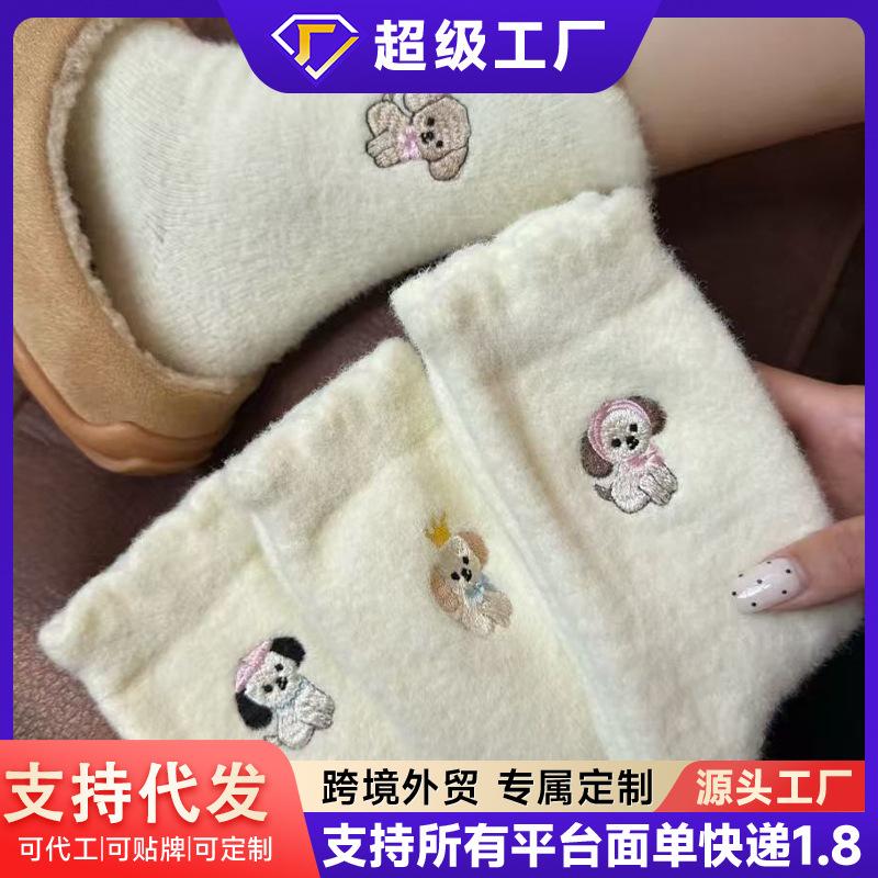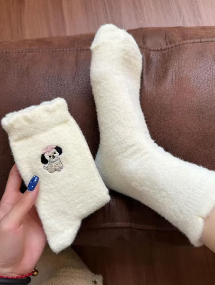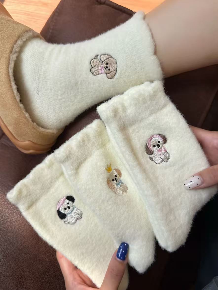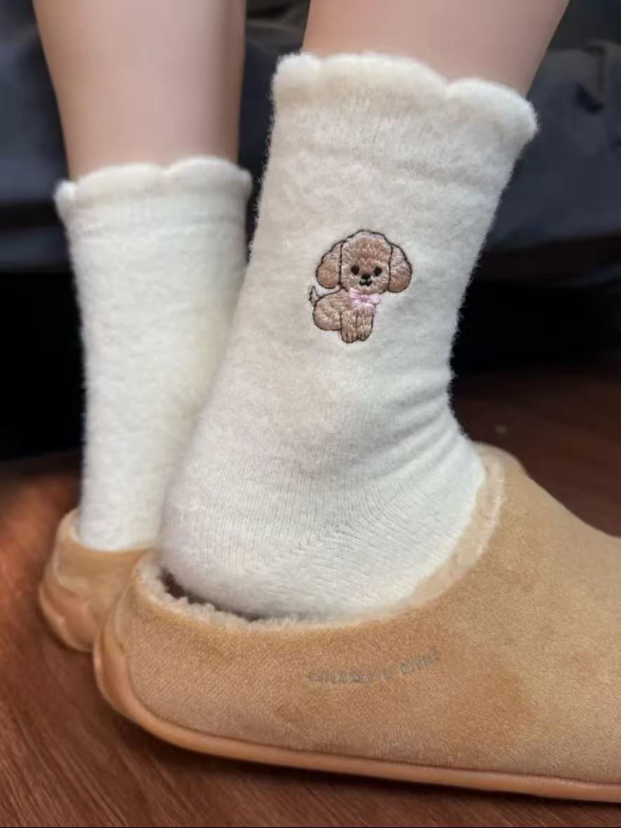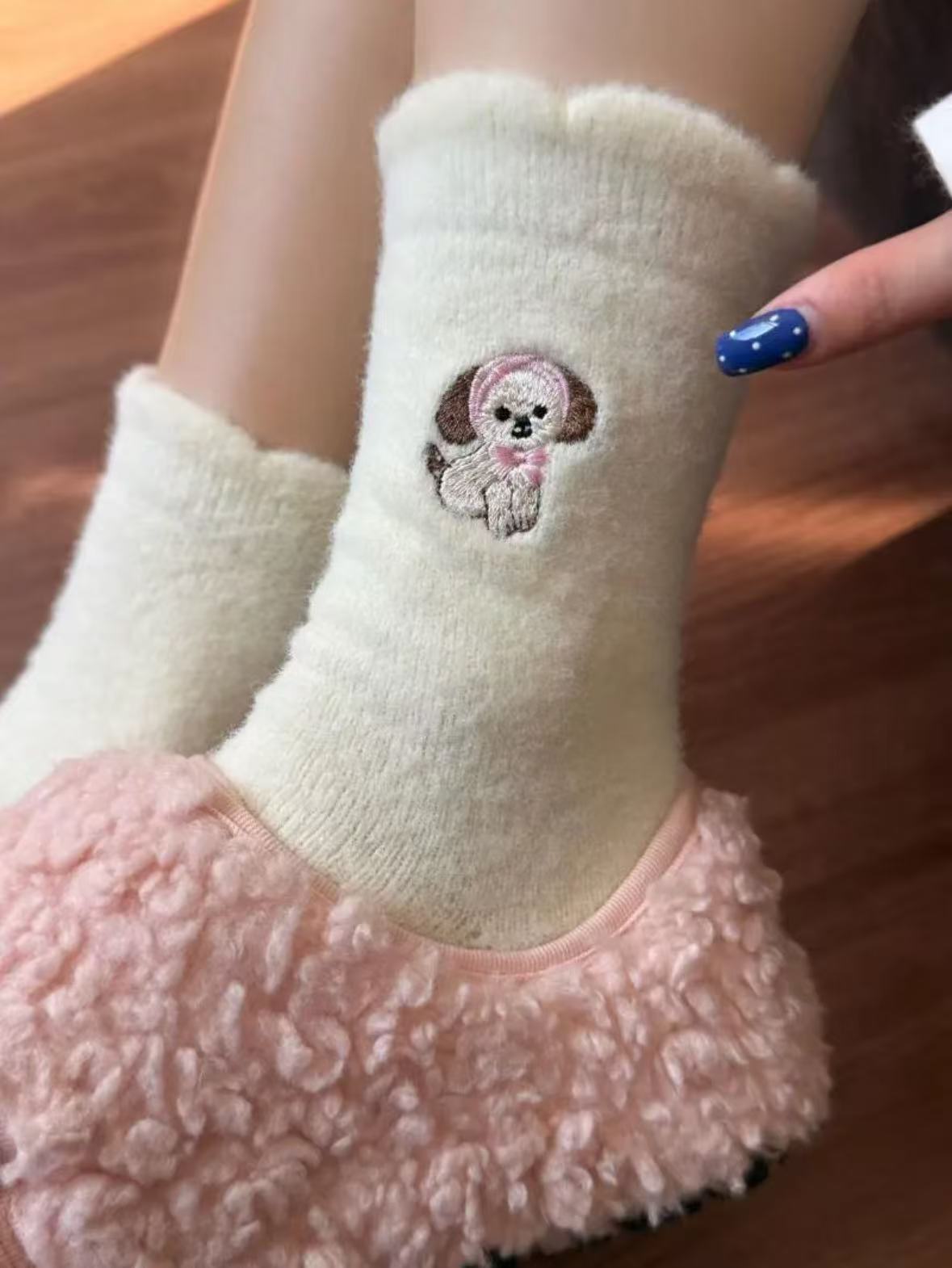 Compra Calcetines de Mujer Estilo Otoño e Invierno Gruesos y con Forro Polar Cálidos a Prueba de Frío Calcetines de Media Caña Dibujo Animado Corona Cachorro Felpa para Casa Dormir al por mayor en Joom.pro