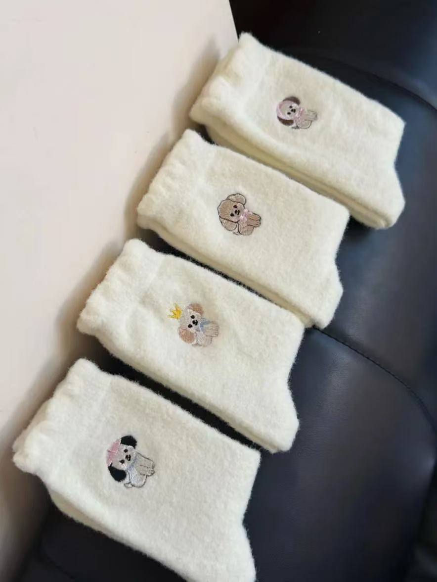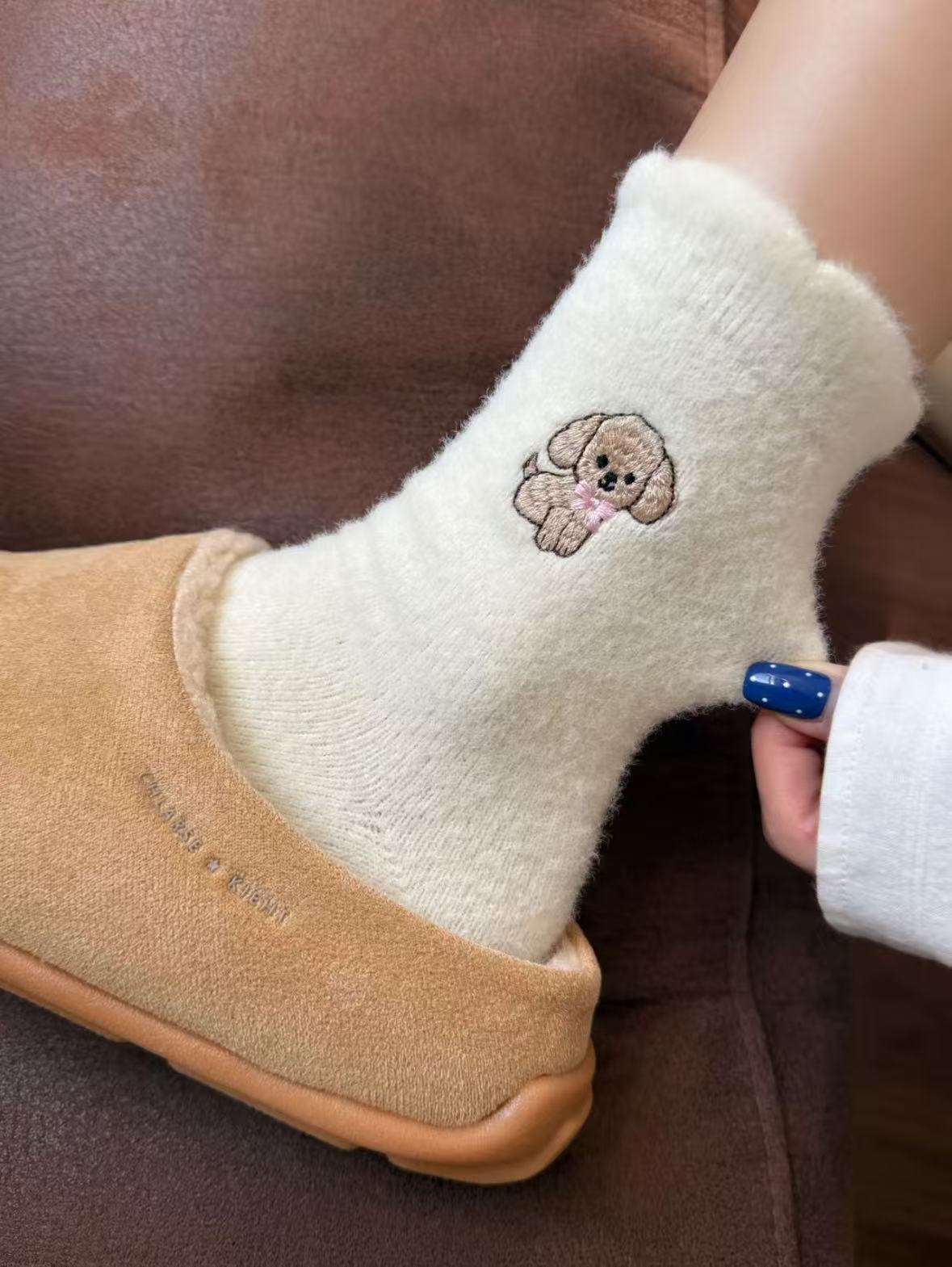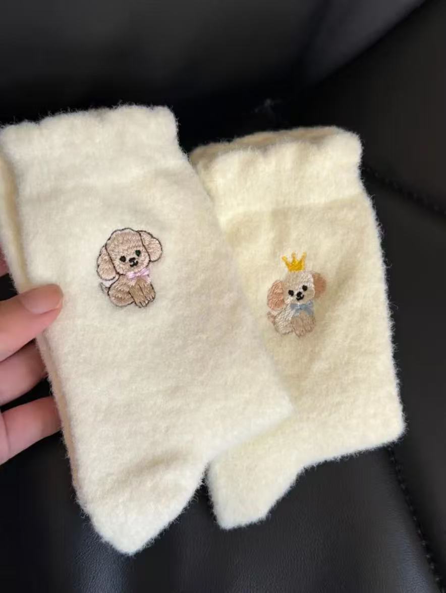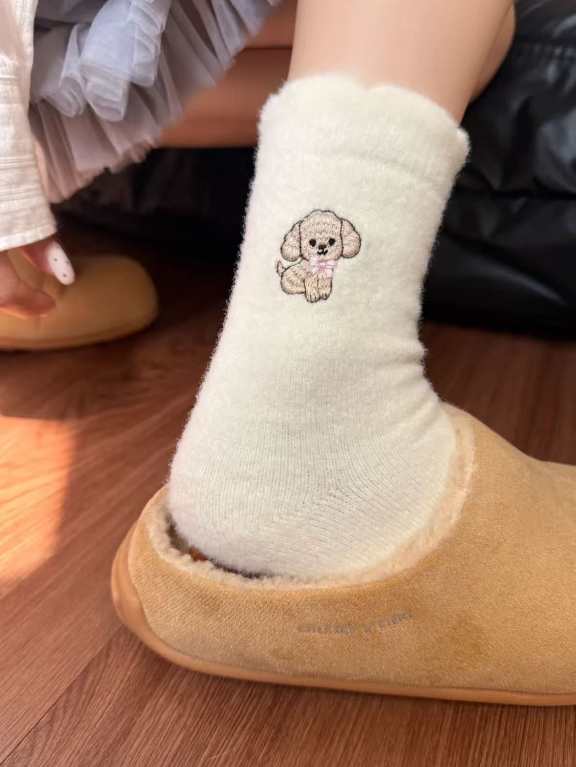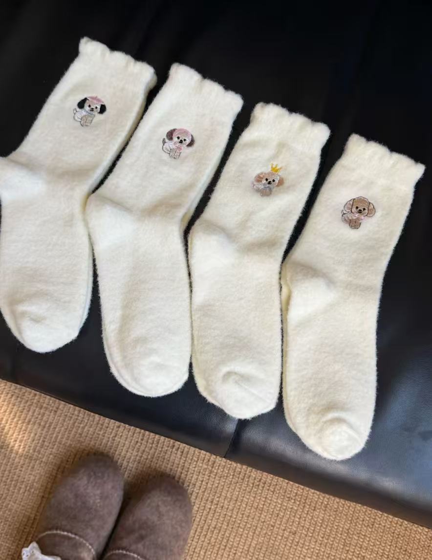 Compra Calcetines de Mujer Estilo Otoño e Invierno Gruesos y con Forro Polar Cálidos a Prueba de Frío Calcetines de Media Caña Dibujo Animado Corona Cachorro Felpa para Casa Dormir al por mayor en Joom.pro