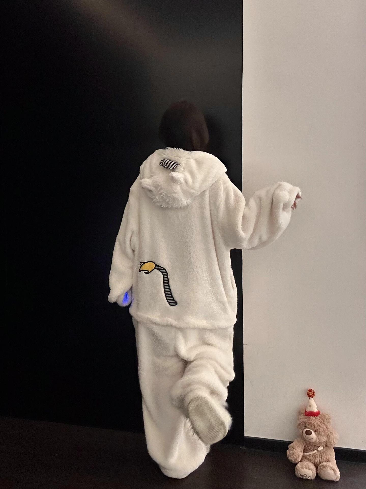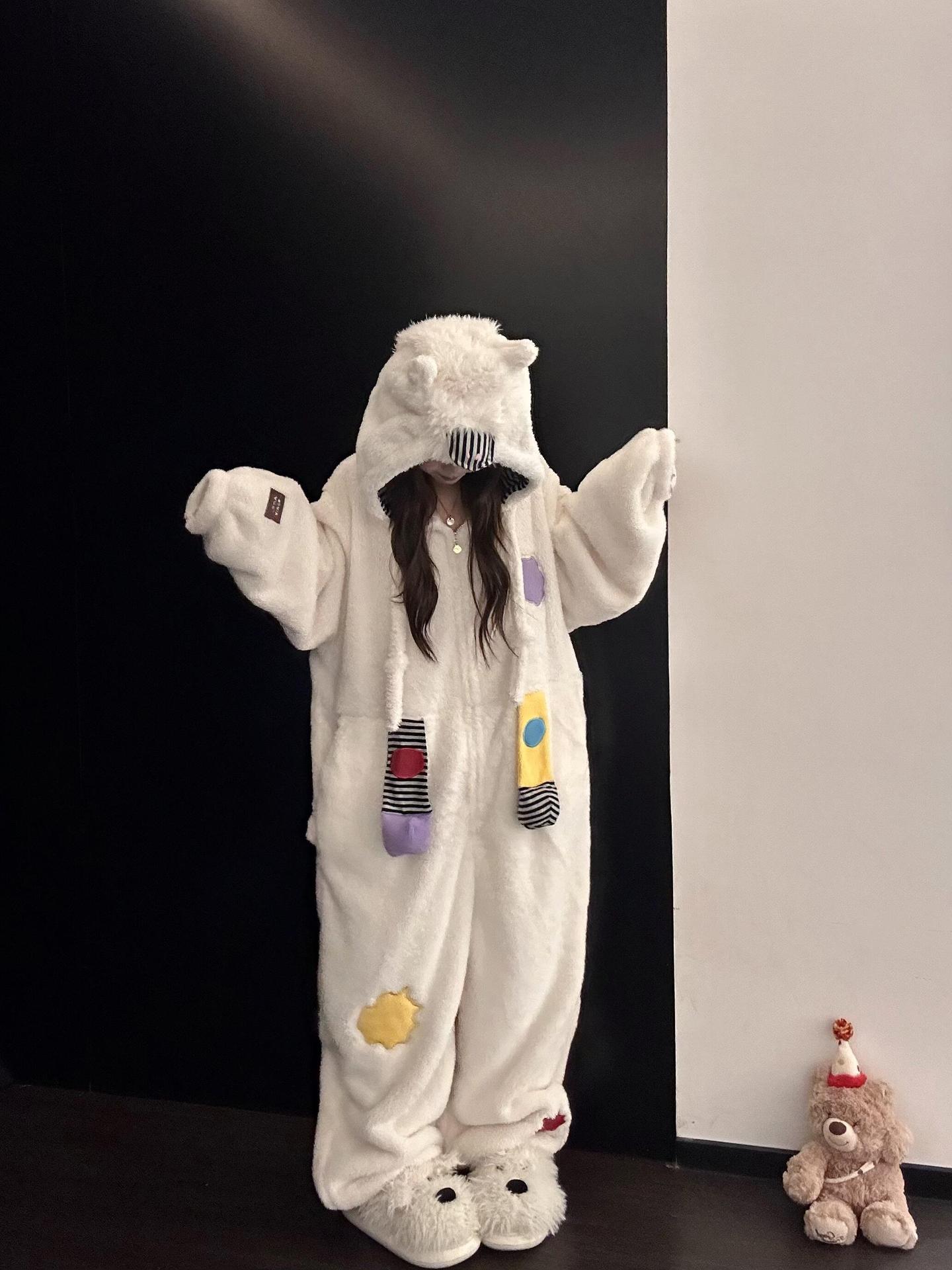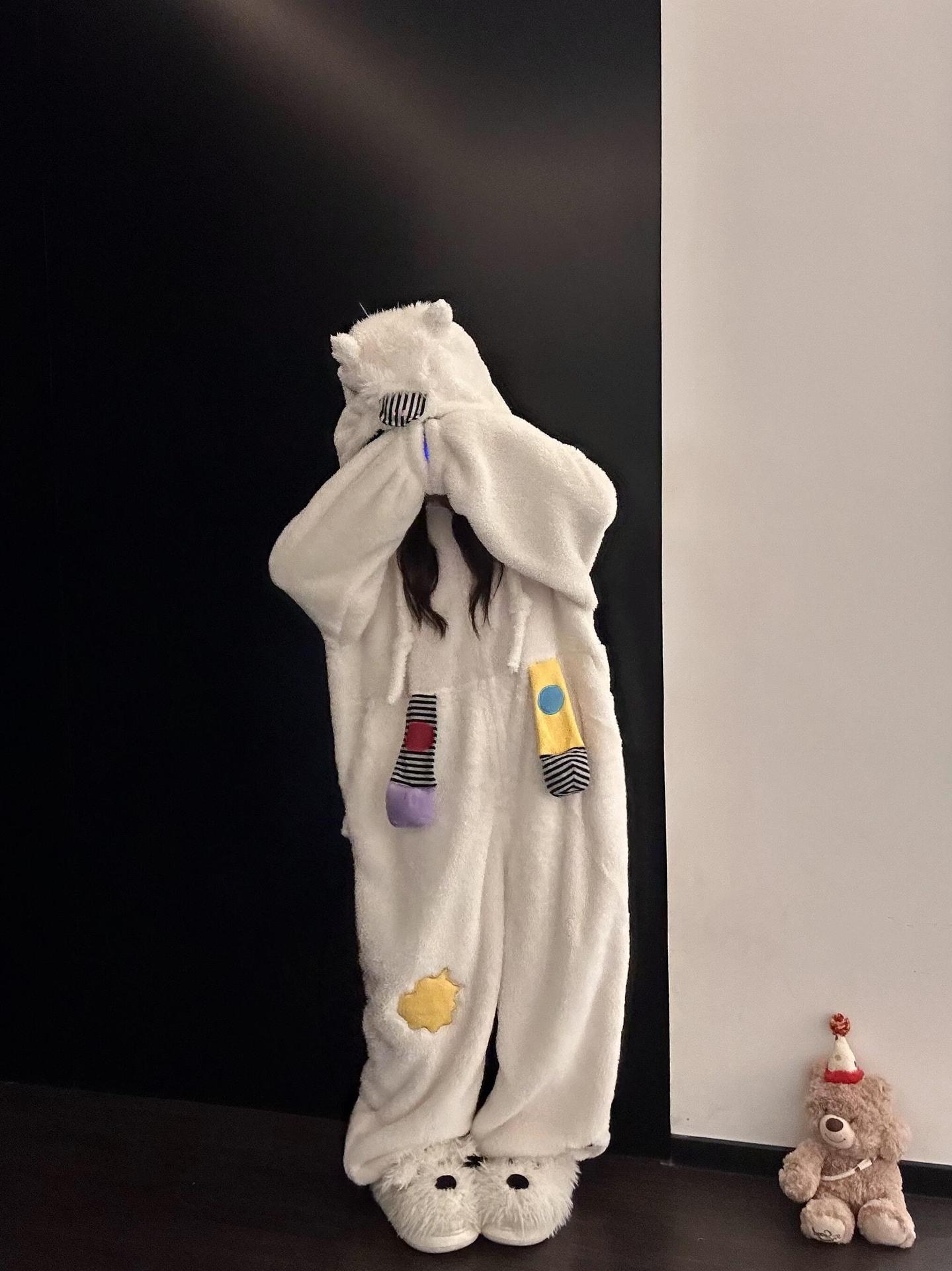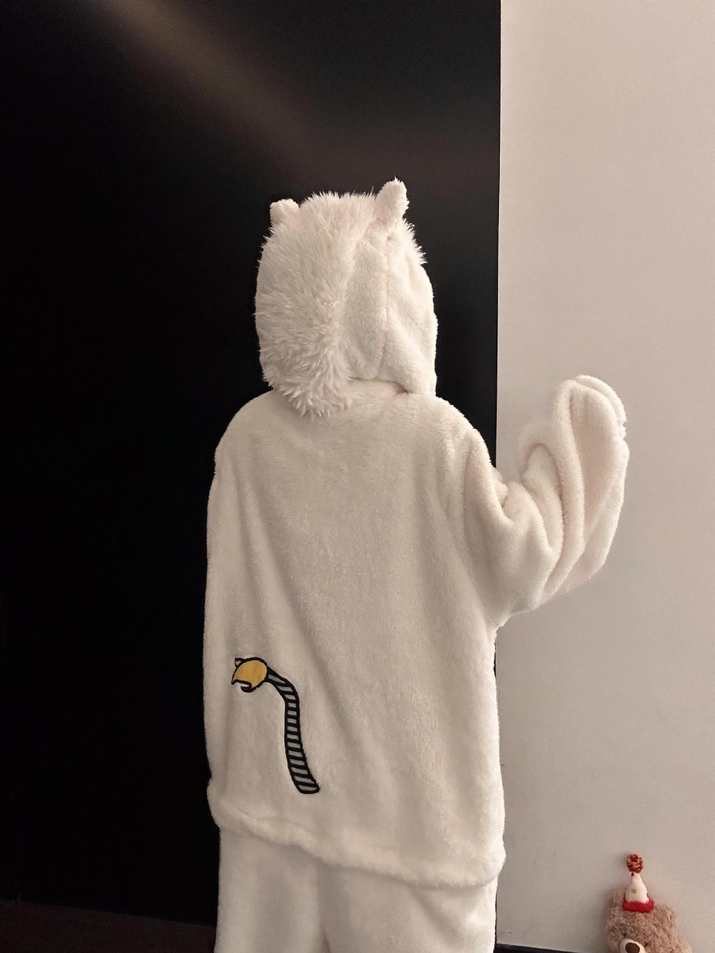 Pijama de Felpa con Capucha de Pony Lindo para Niña Otoño e Invierno Nuevo Forro Polar Coral Ropa de Casa Mono de Una Pieza