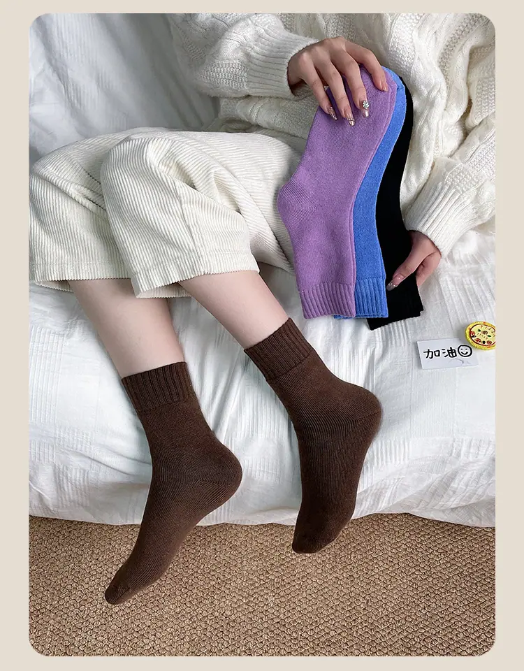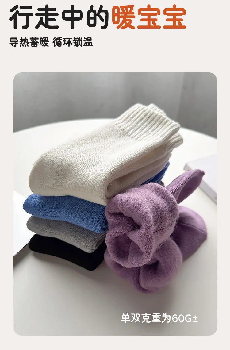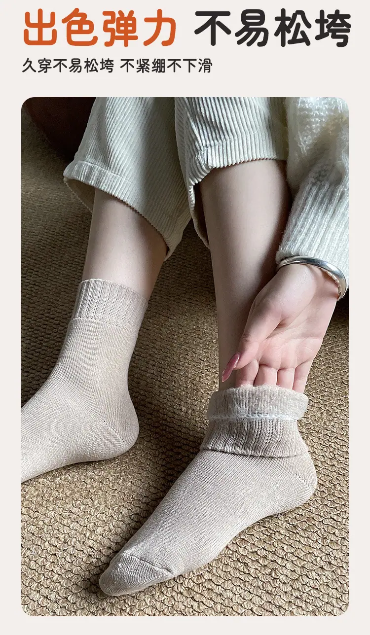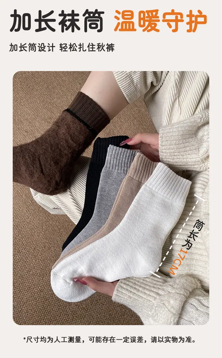 Calcetines Largos Gruesos de Invierno para Mujer de 60G con Forro Polar Cálidos de Felpa Calcetines para Dormir de Color Sólido para Invierno para Mujer Calcetines de Mujer Zhuji