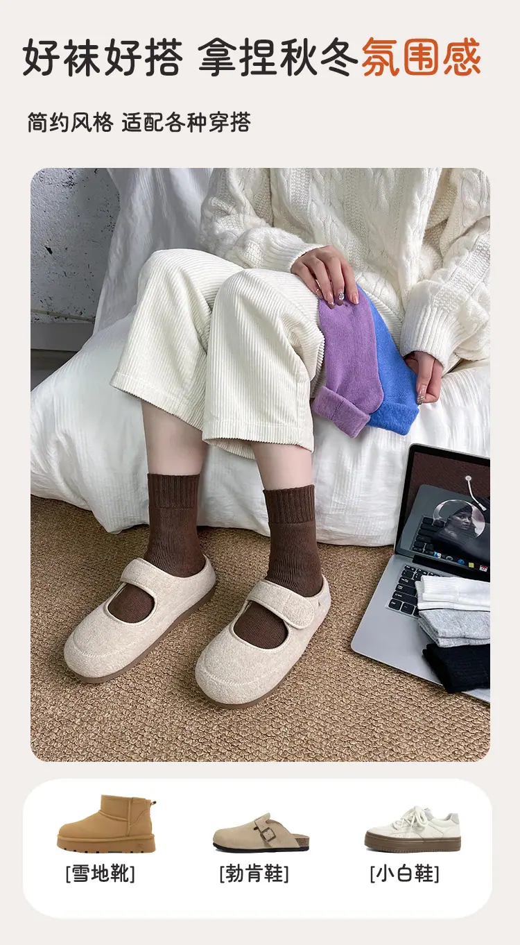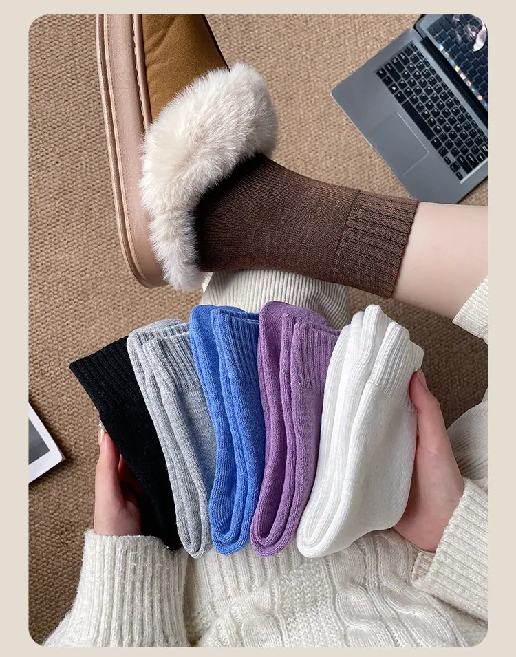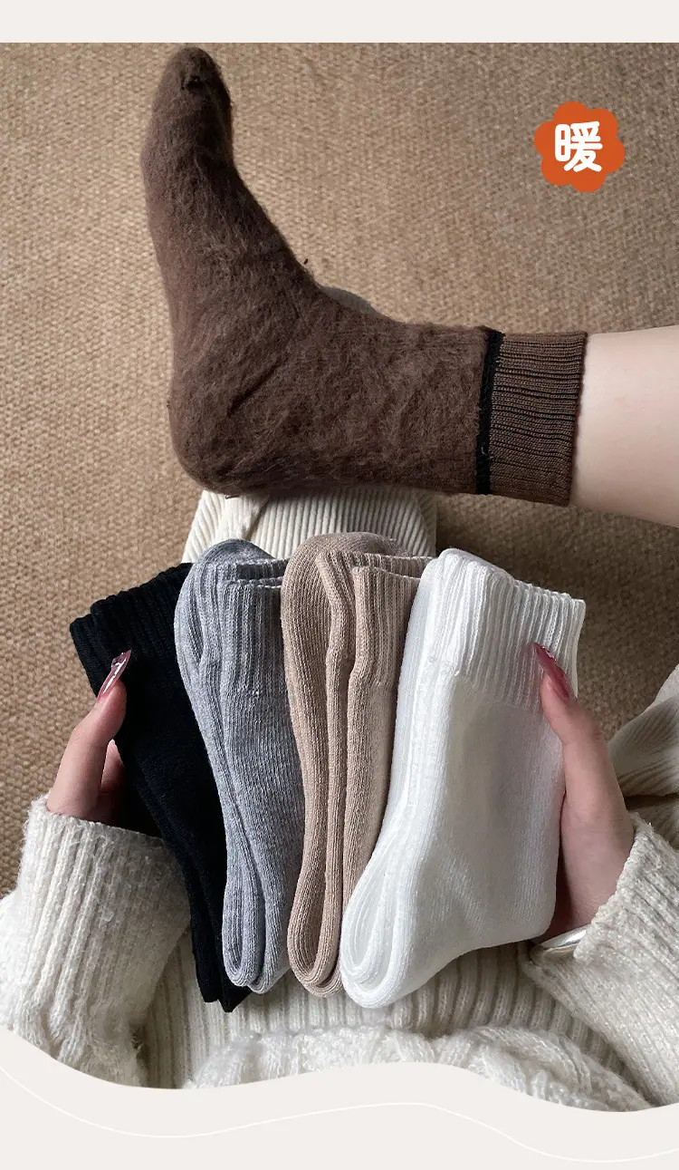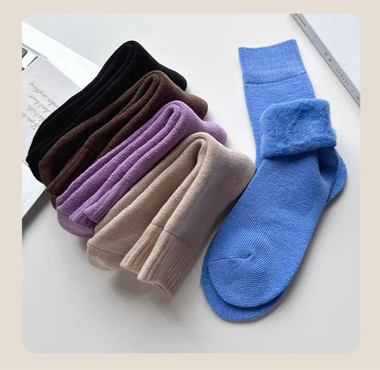 Calcetines Largos Gruesos de Invierno para Mujer de 60G con Forro Polar Cálidos de Felpa Calcetines para Dormir de Color Sólido para Invierno para Mujer Calcetines de Mujer Zhuji