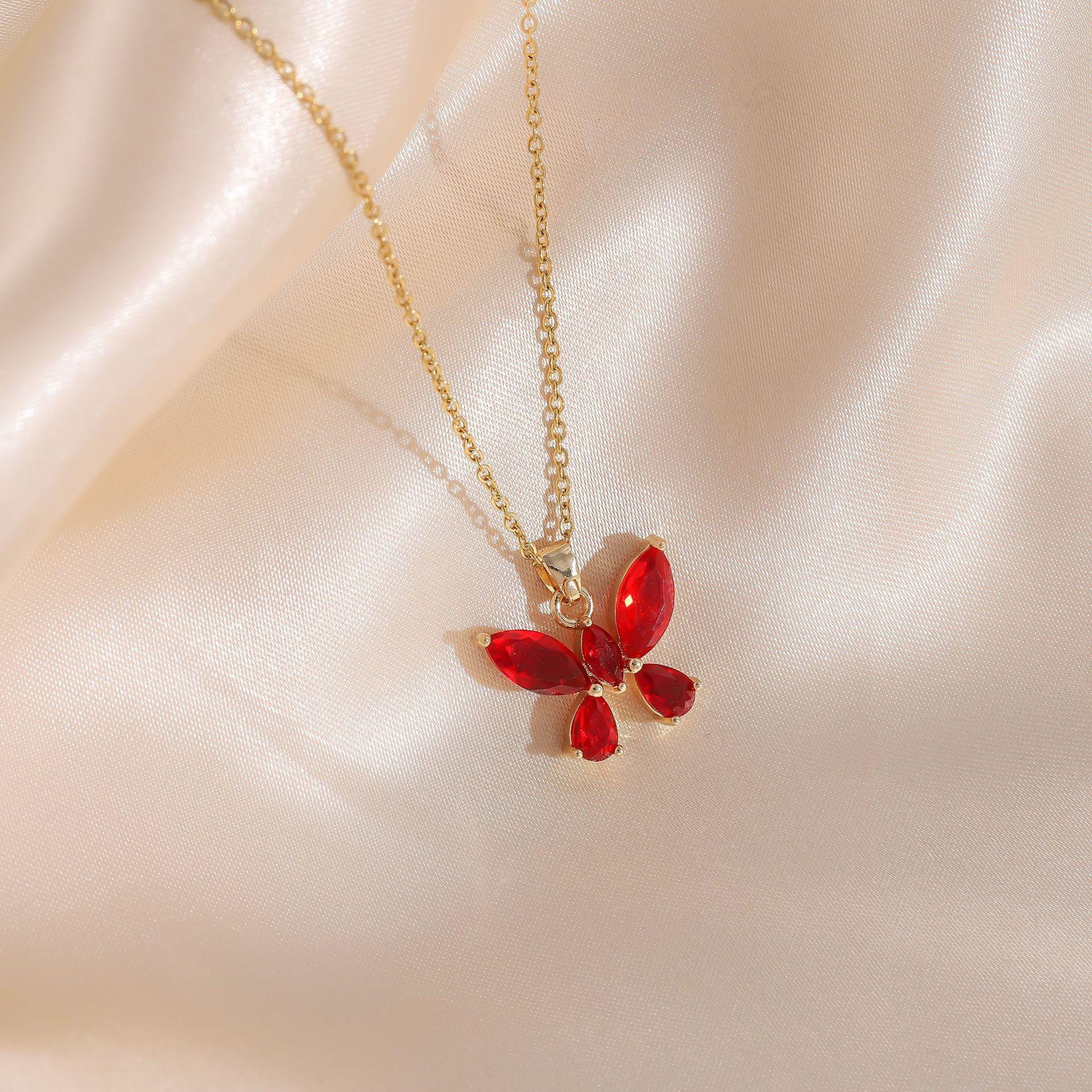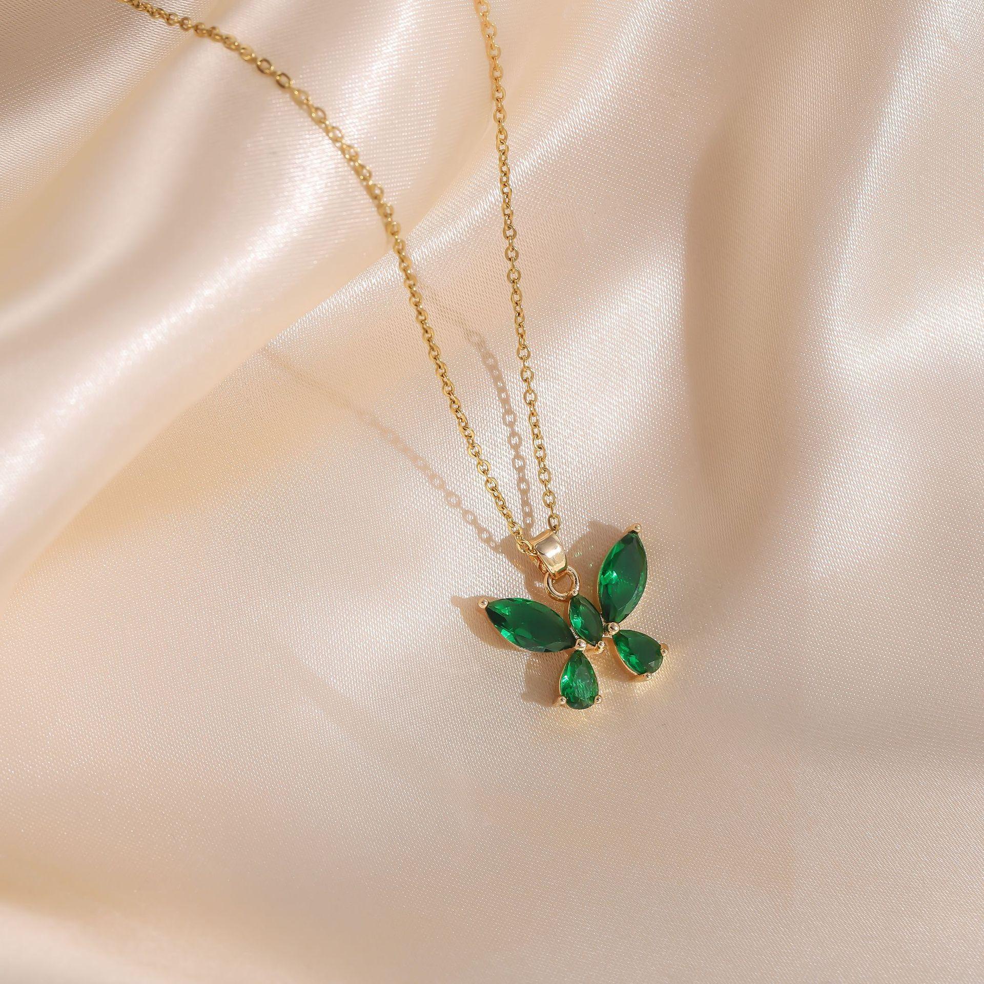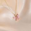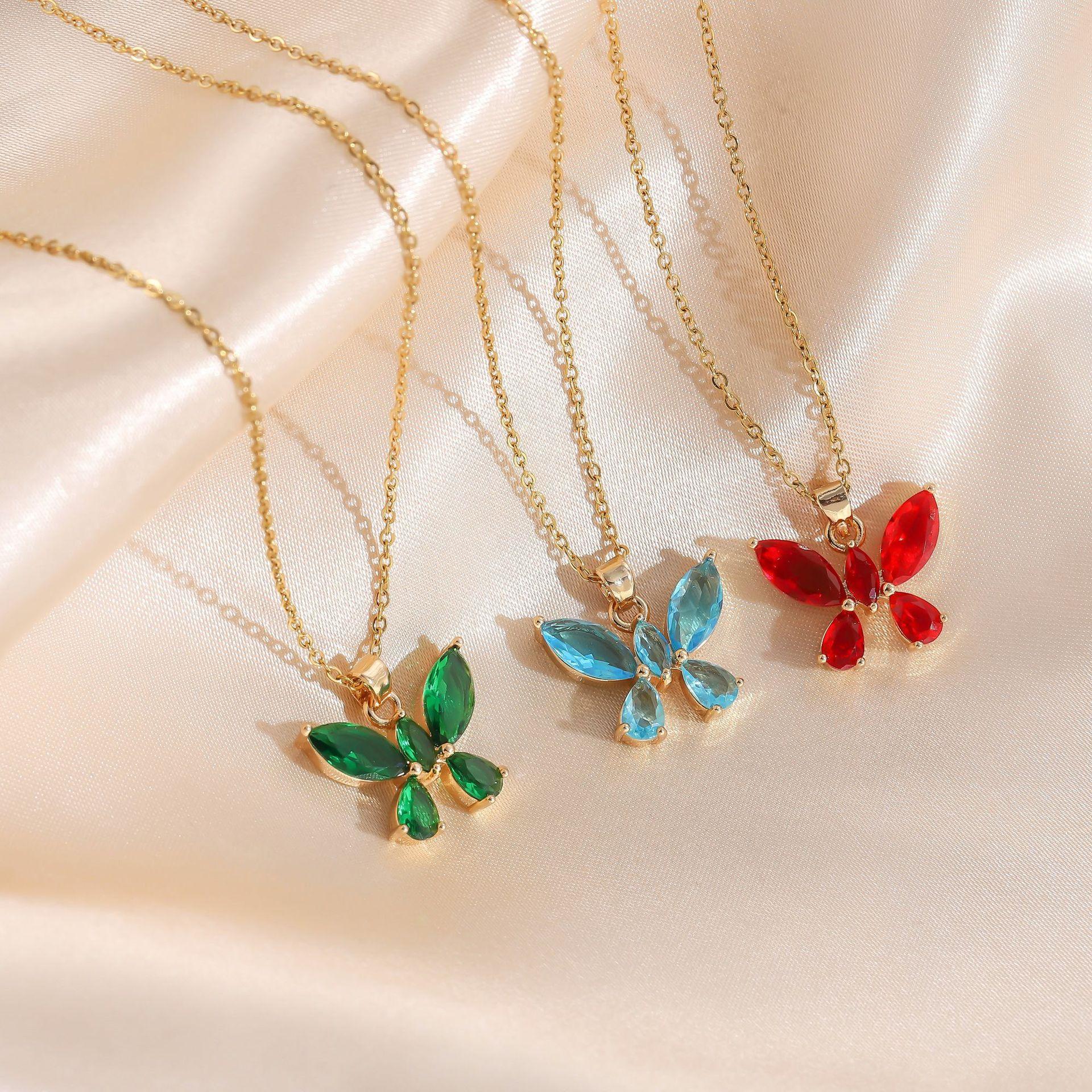 Joyería transfronteriza europea y americana estilo dulce lujo ligero color cristal colgante de mariposa collar de acero de titanio femenino con incrustaciones de circonita cadena para clavícula