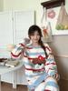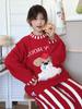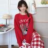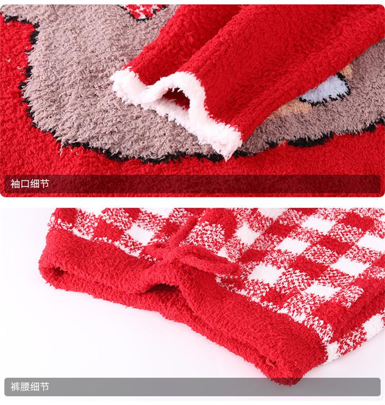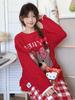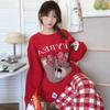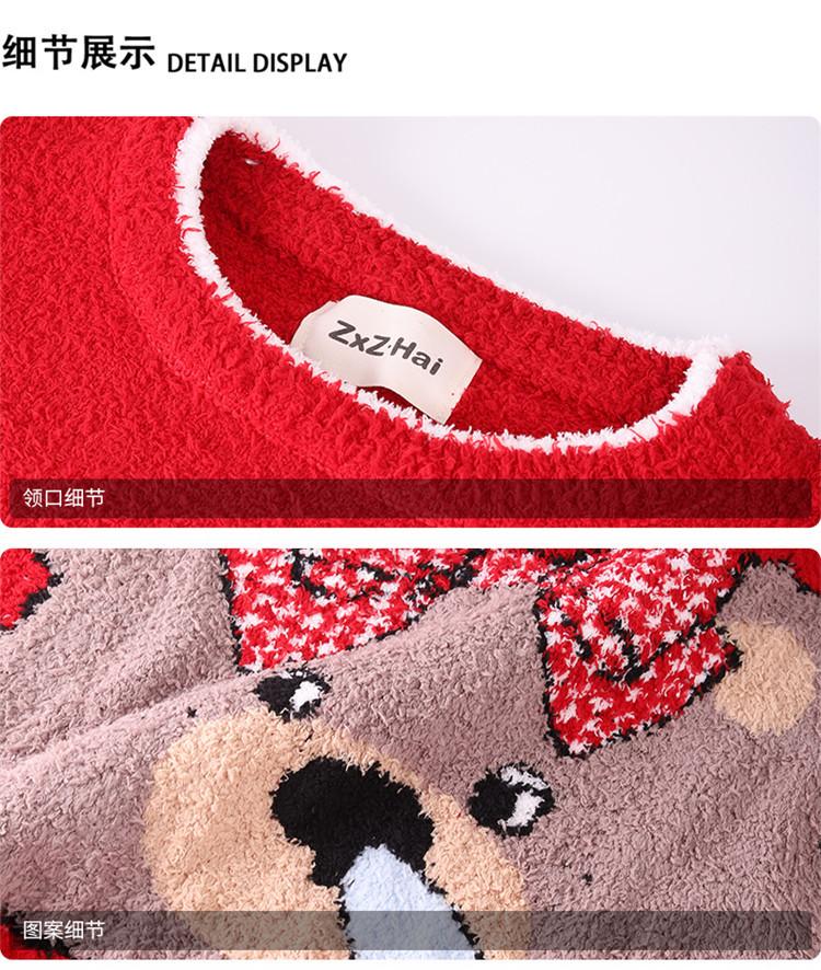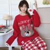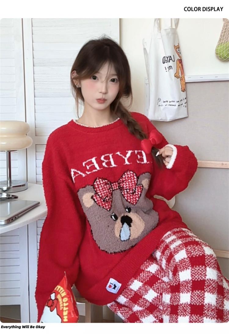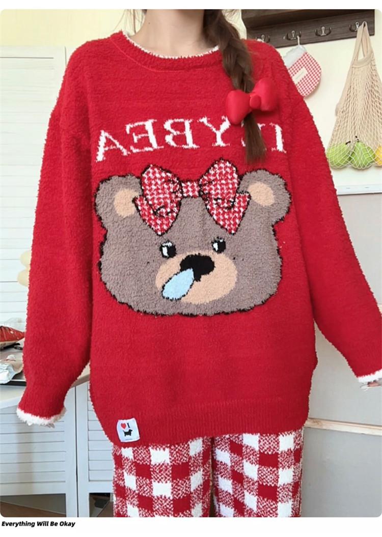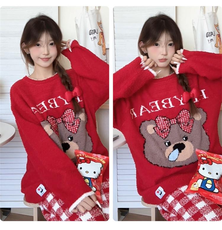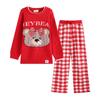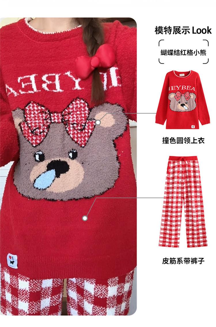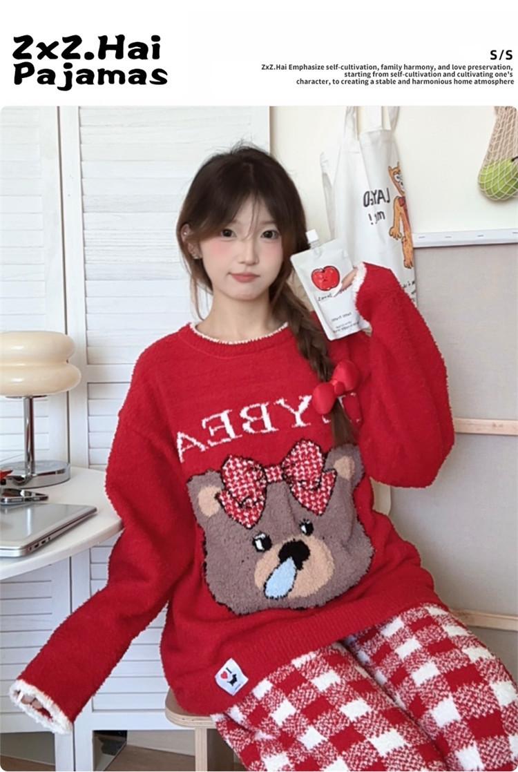 2025 Otoño/Invierno Nuevo Conjunto de Pijama de Media Felpa con Lazo y Cuadros Rojos de Oso Mocoso Dibujo Animado Se Puede Usar Afuera Ropa de Casa
