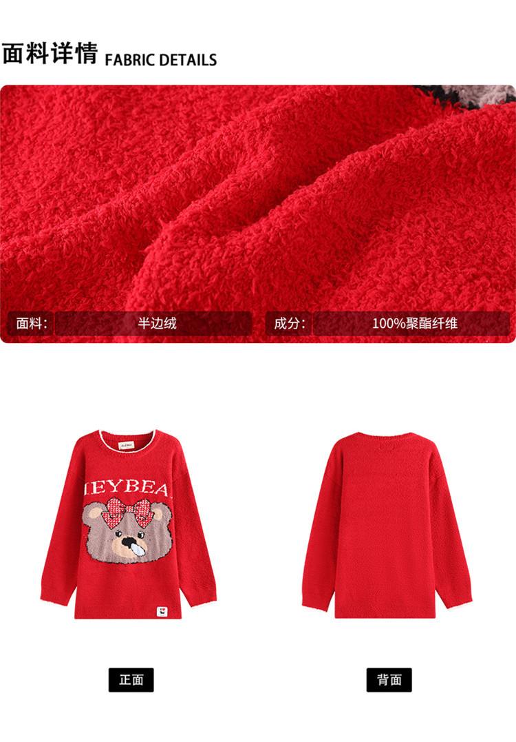 (Long Sleeve Long Pants) ZXZ30101 Bow Red Plaid Bear (Half-Velvet)