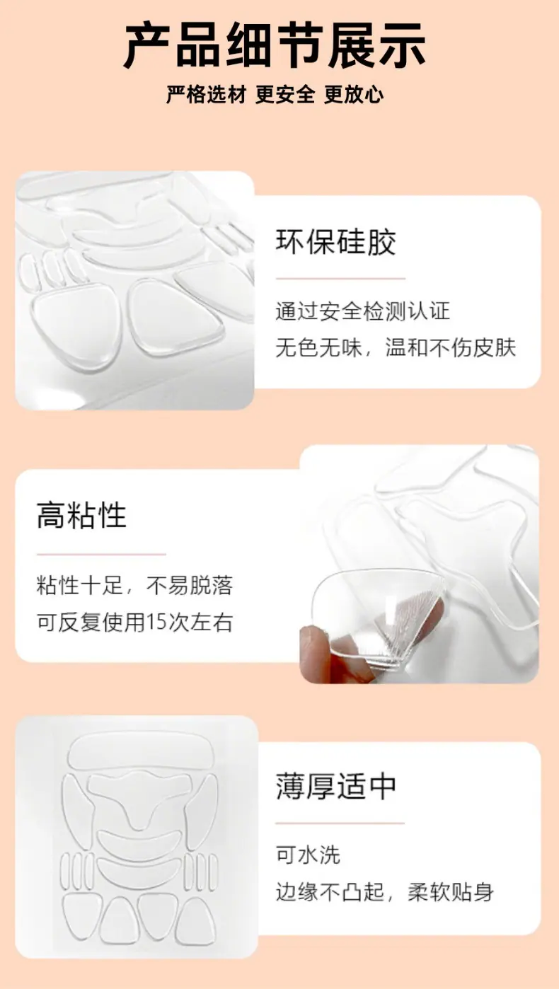 Parche facial lifting y reafirmante de cuello exclusivo transfronterizo, parche para surcos nasolabiales, parche para ojos, parche para pecho, parche antiarrugas de silicona transparente invisible