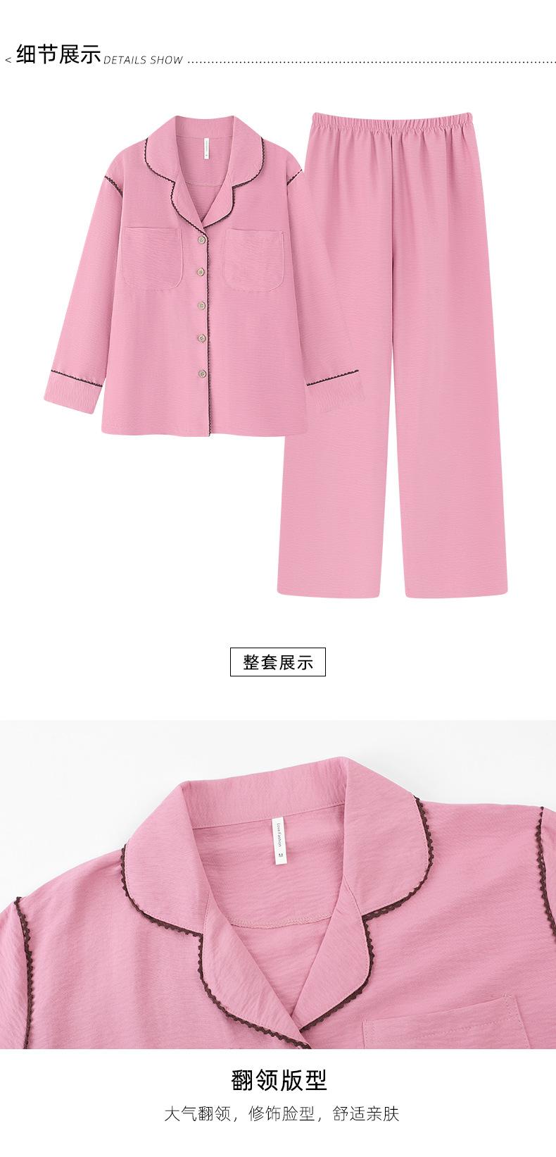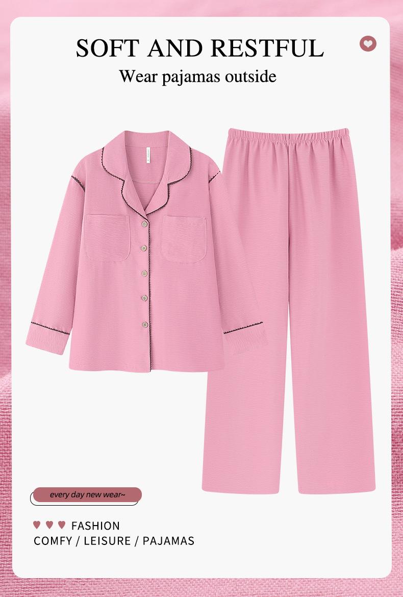 Pijama de Algodón Nube para Mujer Cárdigan Simple de Manga Larga Talla Grande Pantalones Largos Se Puede Usar Afuera Estilo Delgado Ropa para el Hogar Conjunto de Temporada Primavera y Otoño