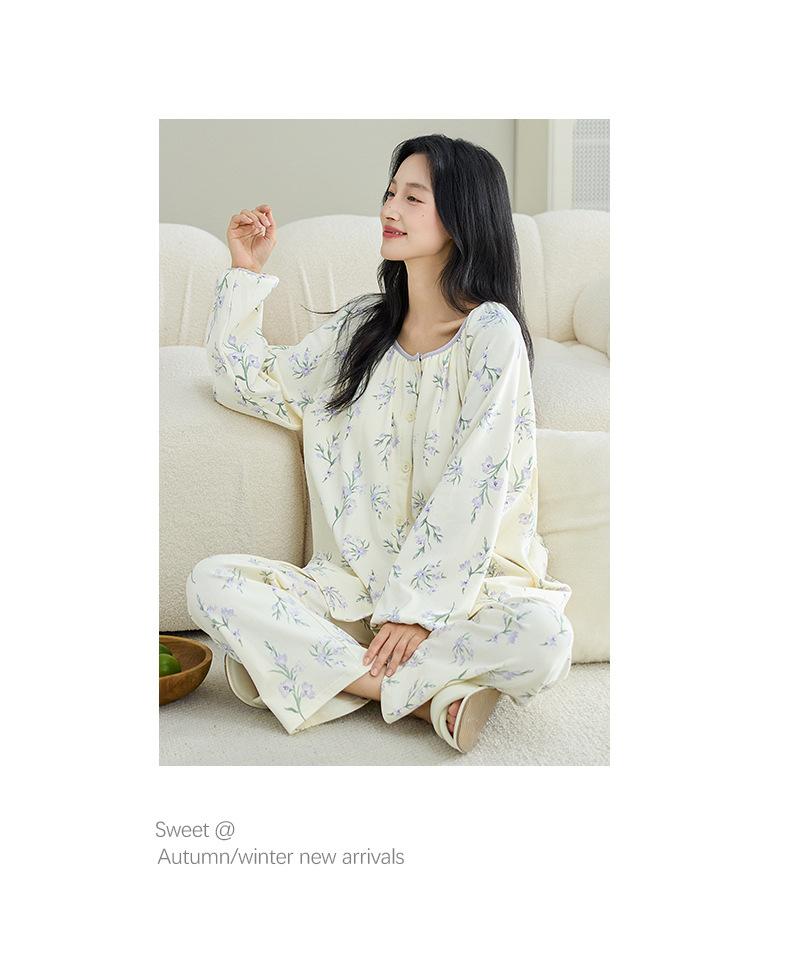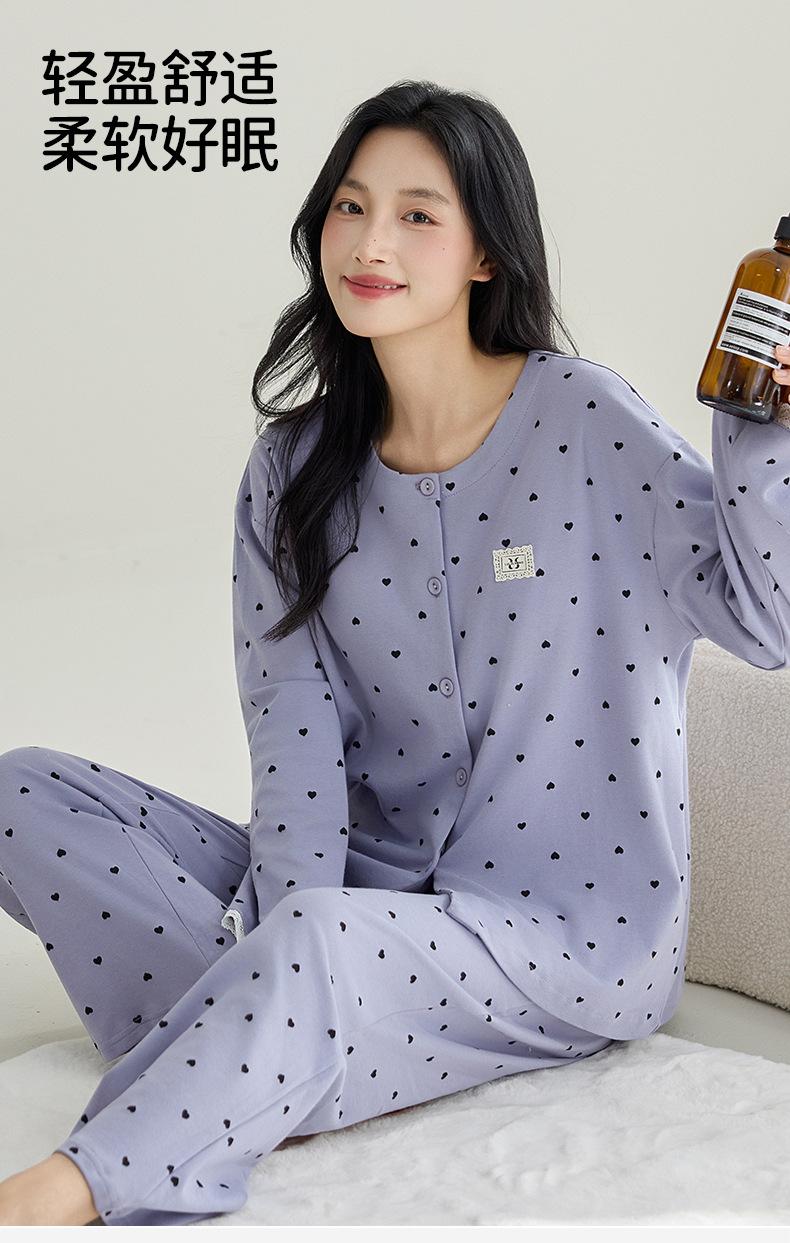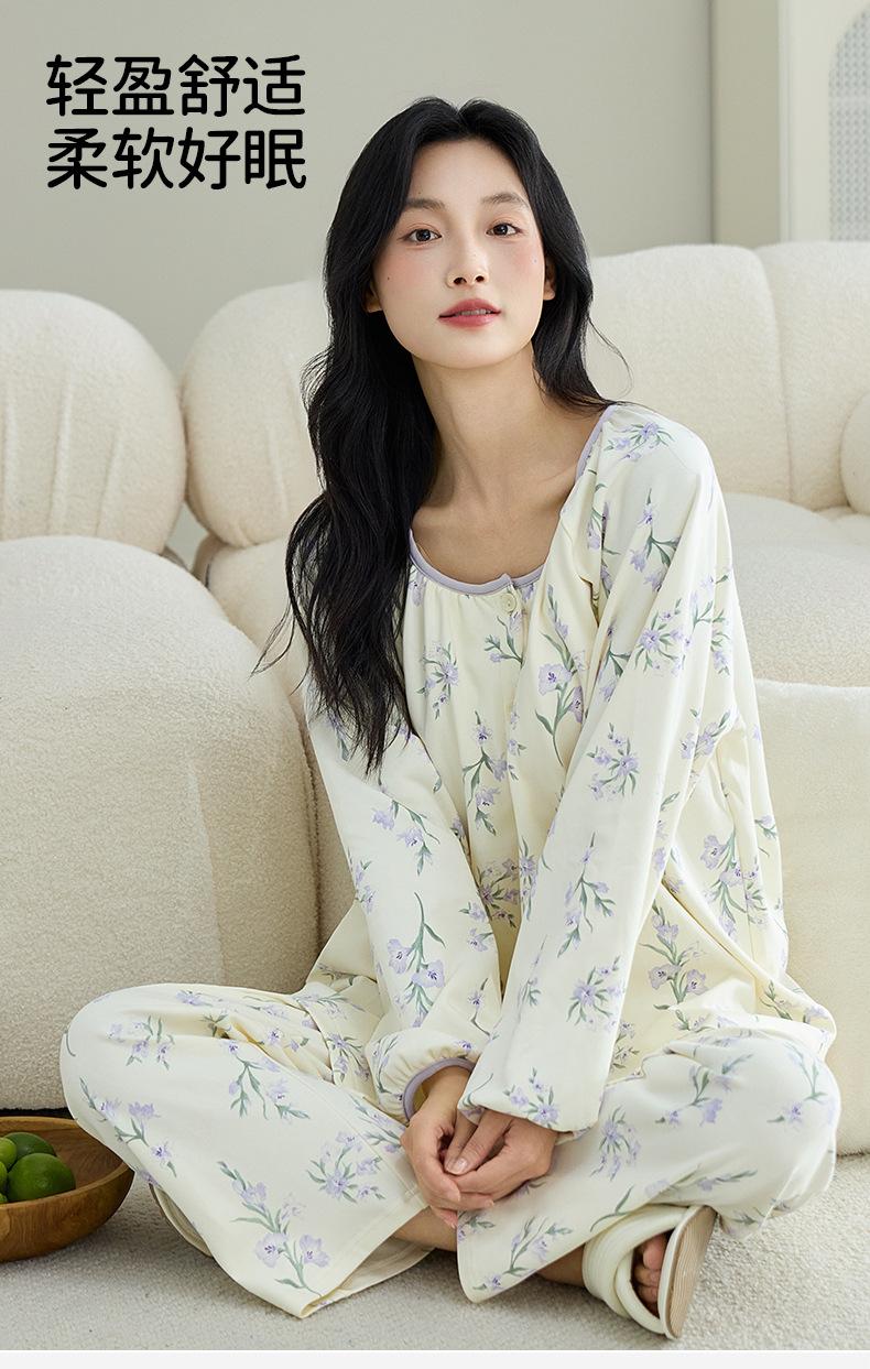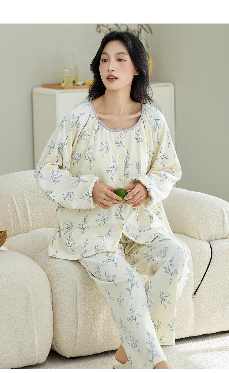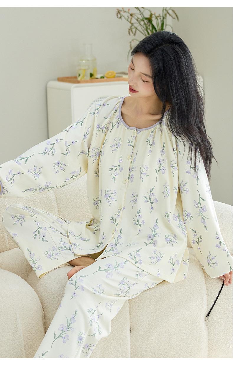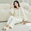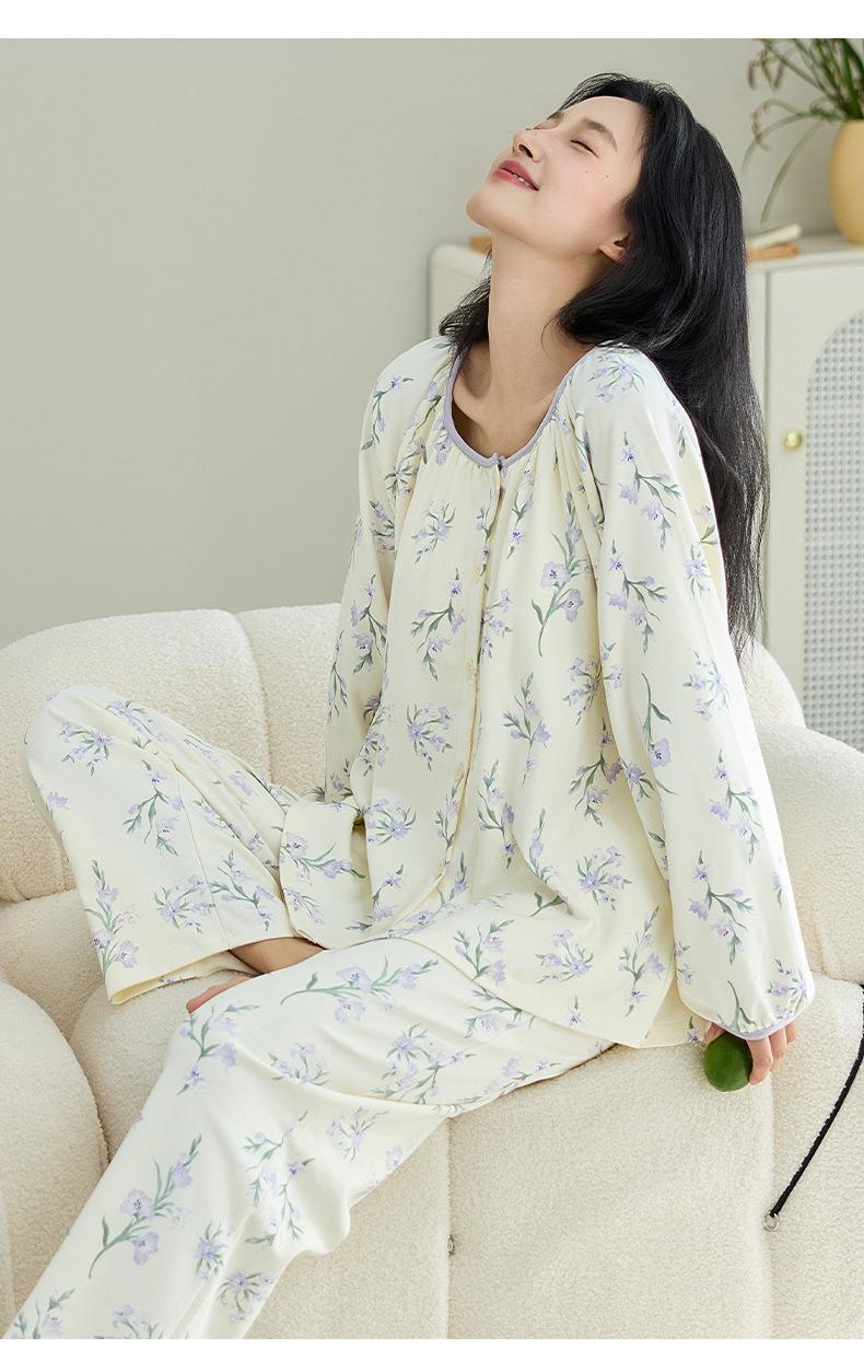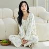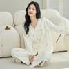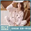 Pijama de Algodón Puro para Mujer Nuevo Manga Larga Pantalón Largo Cárdigan Dulce y Encantador Otoño Se Puede Usar Fuera Conjunto para Estar en Casa