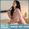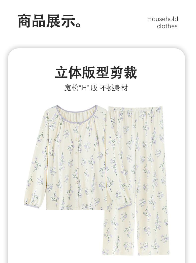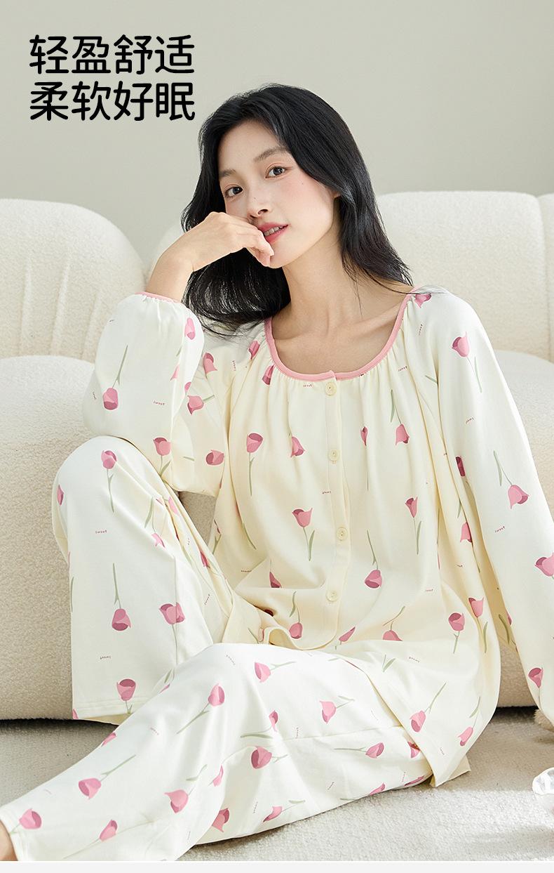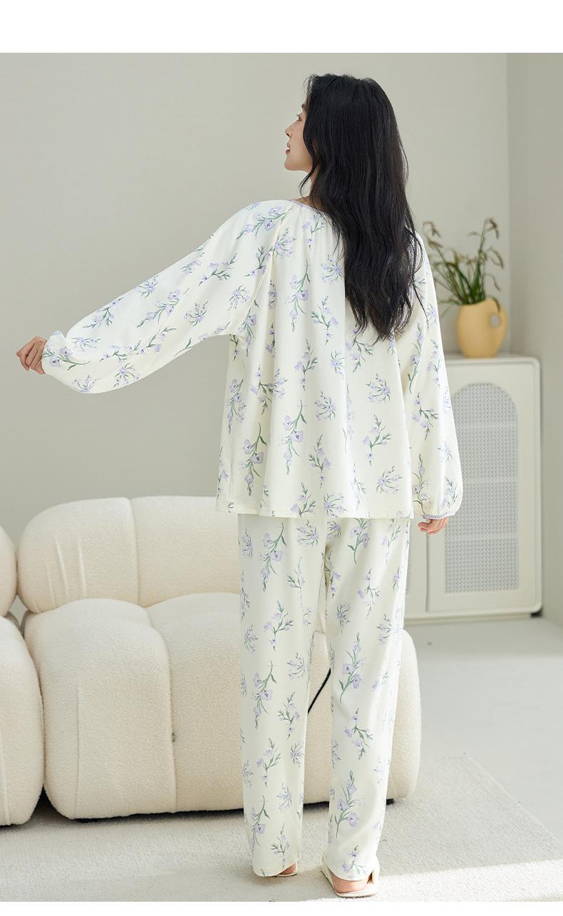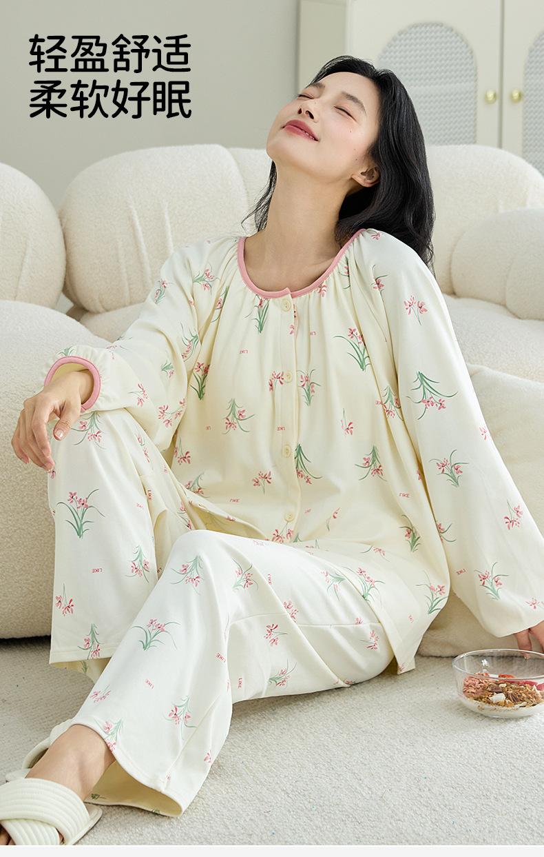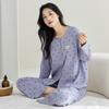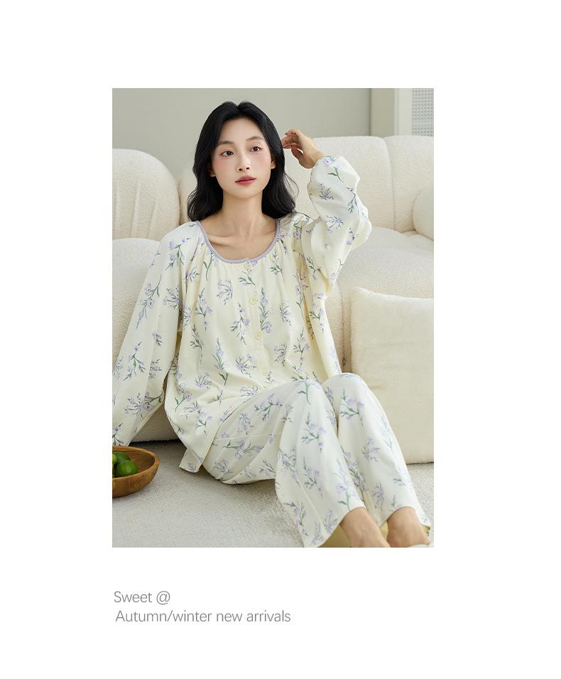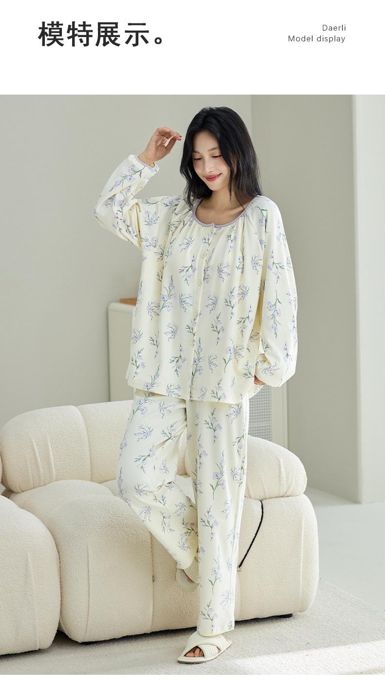 Pijama de Algodón Puro para Mujer Nuevo Manga Larga Pantalón Largo Cárdigan Dulce y Encantador Otoño Se Puede Usar Fuera Conjunto para Estar en Casa