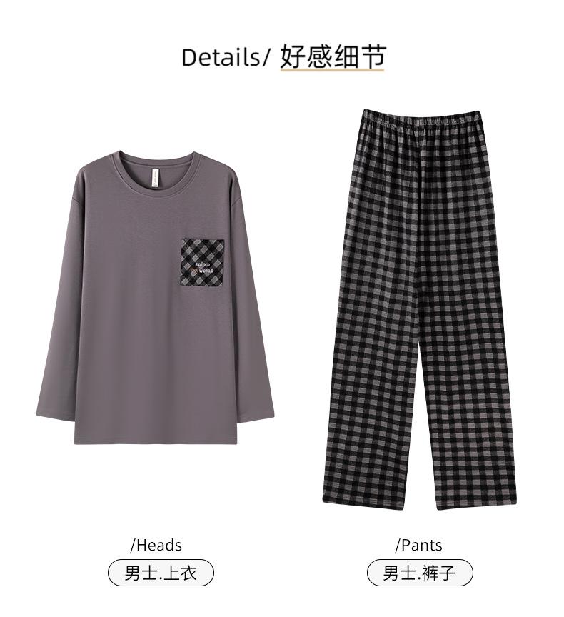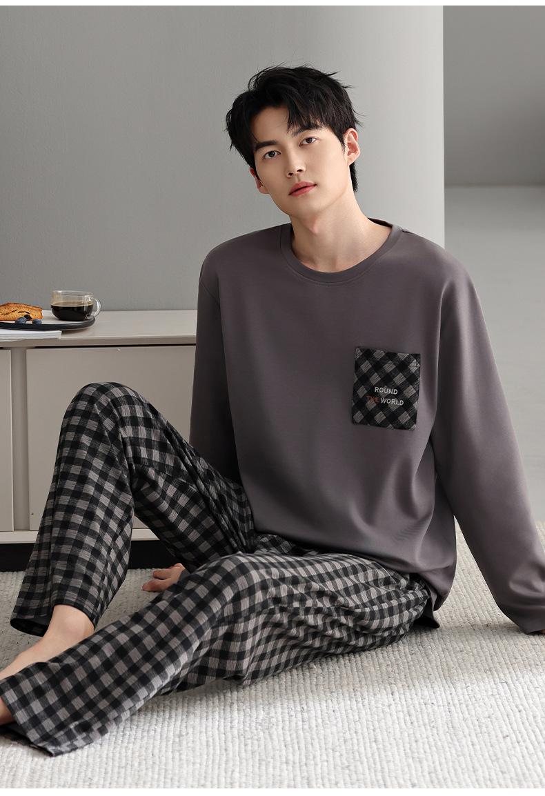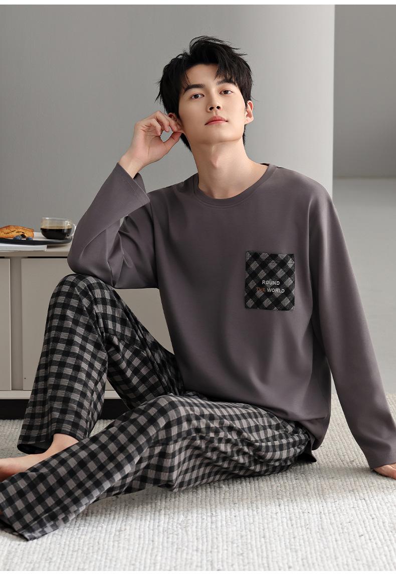 Pijama para Hombre Estilo Primavera y Otoño Otoño Algodón Puro Manga Larga Estilo Nuevo 2025 Niños Pueden Salir Jersey Conjunto de Ropa de Casa para Hombre