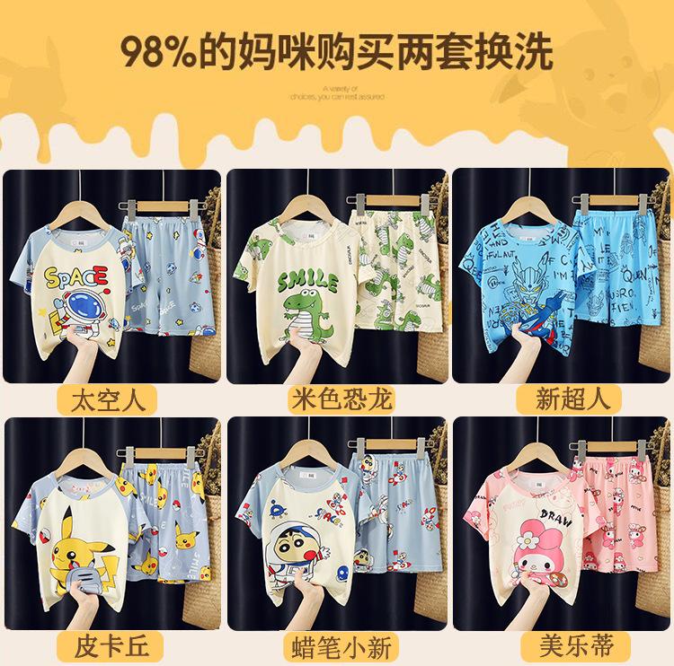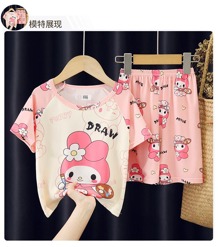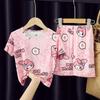 Ropa de casa para bebés y niños, pijamas de manga corta para niñas, de verano, finos y grandes, con dibujos animados, para niñas pequeñas, ropa exterior