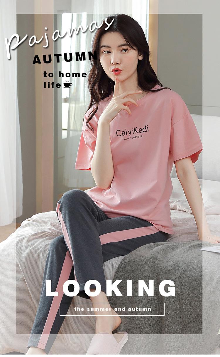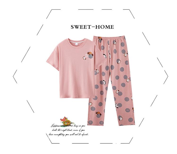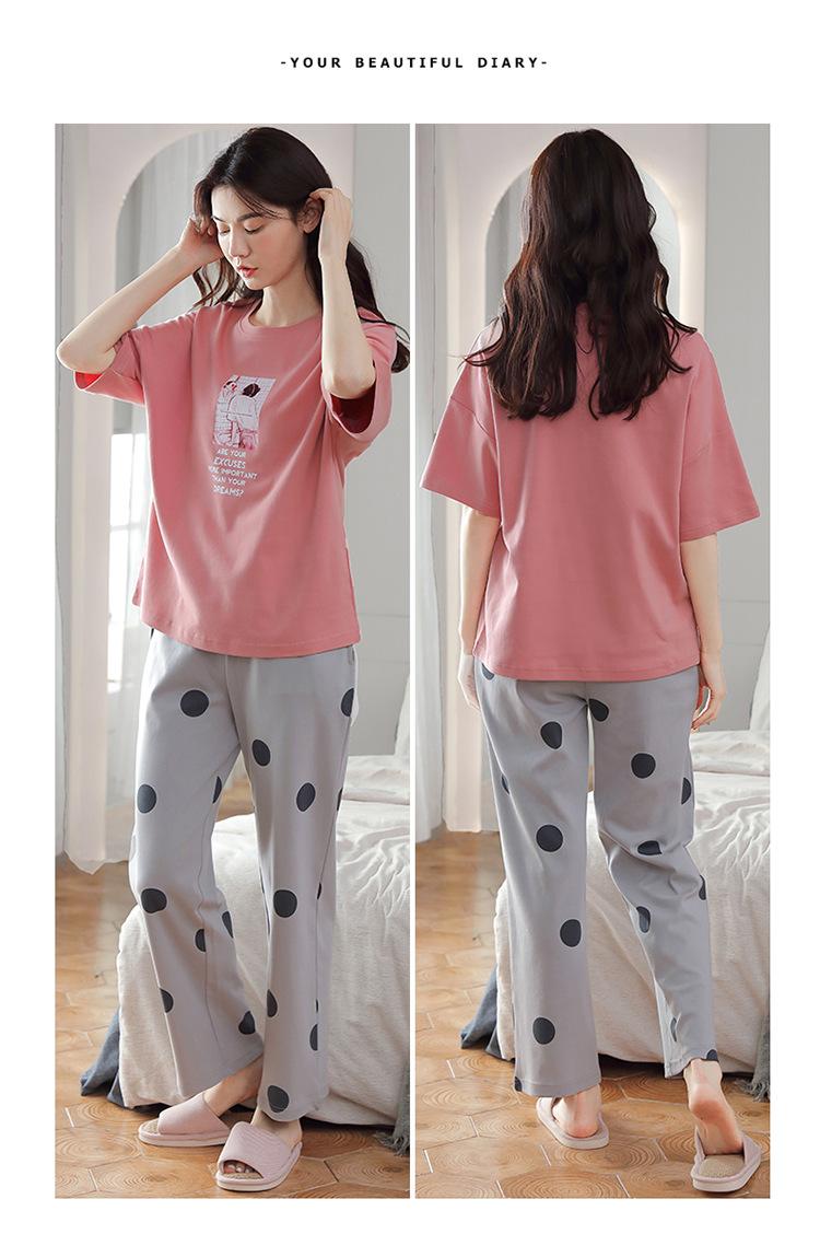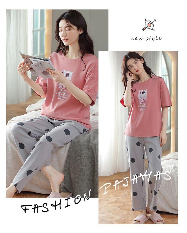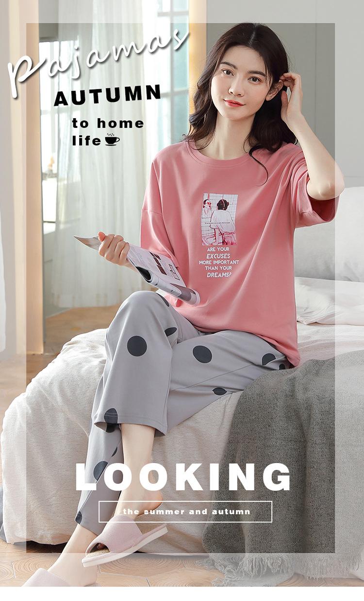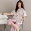 Pijama de Verano para Mujer Algodón Lindo Manga Corta Pantalones Dulce Jersey Ropa para el Hogar Verano Fino Ropa Exterior Conjunto de Dos Piezas