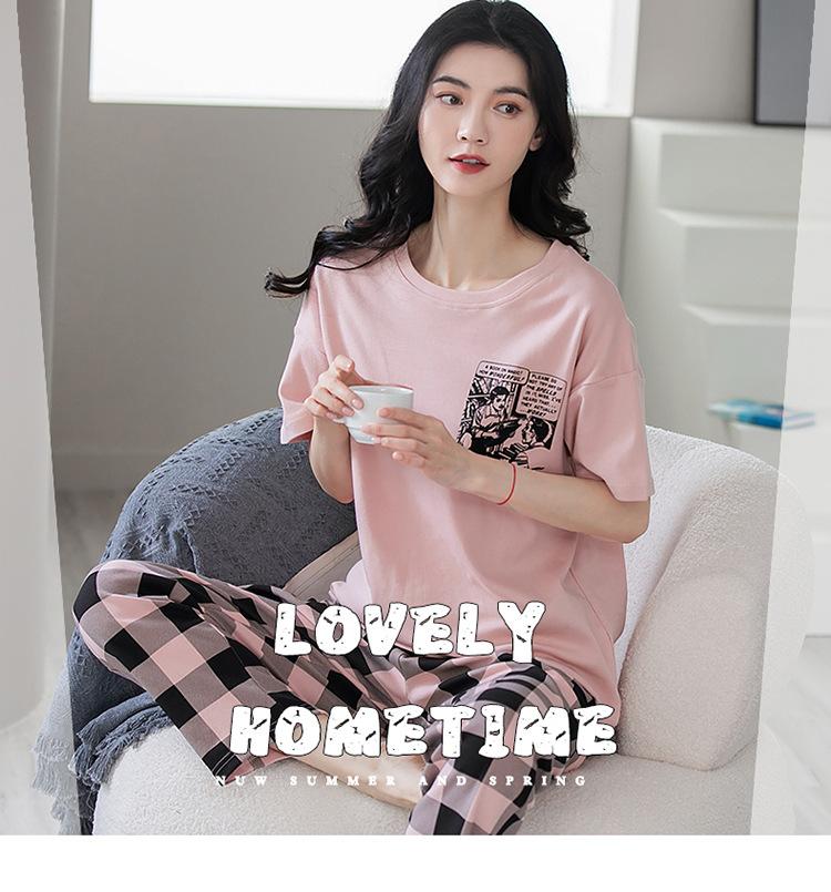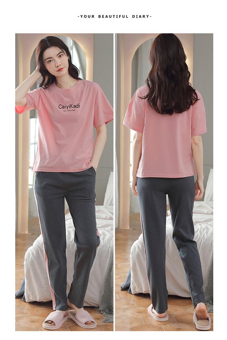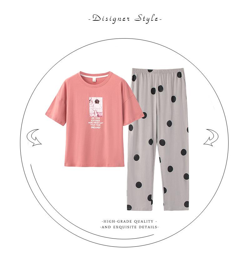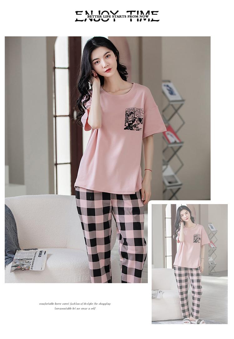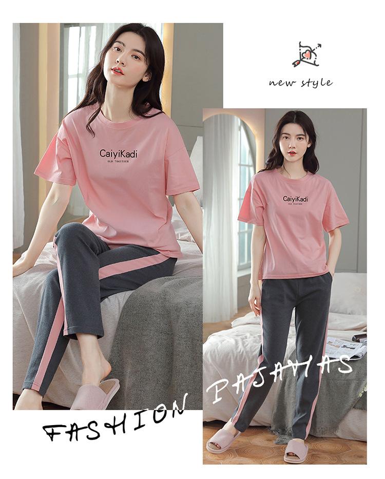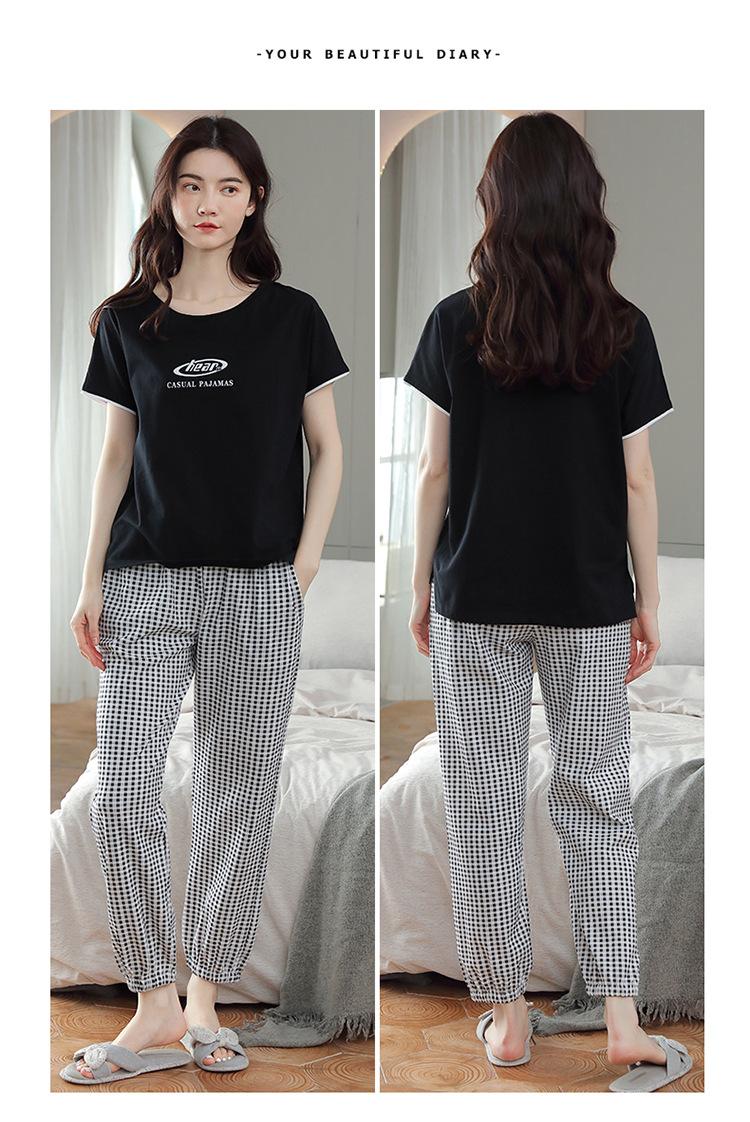 Pijama de Verano para Mujer Algodón Lindo Manga Corta Pantalones Dulce Jersey Ropa para el Hogar Verano Fino Ropa Exterior Conjunto de Dos Piezas