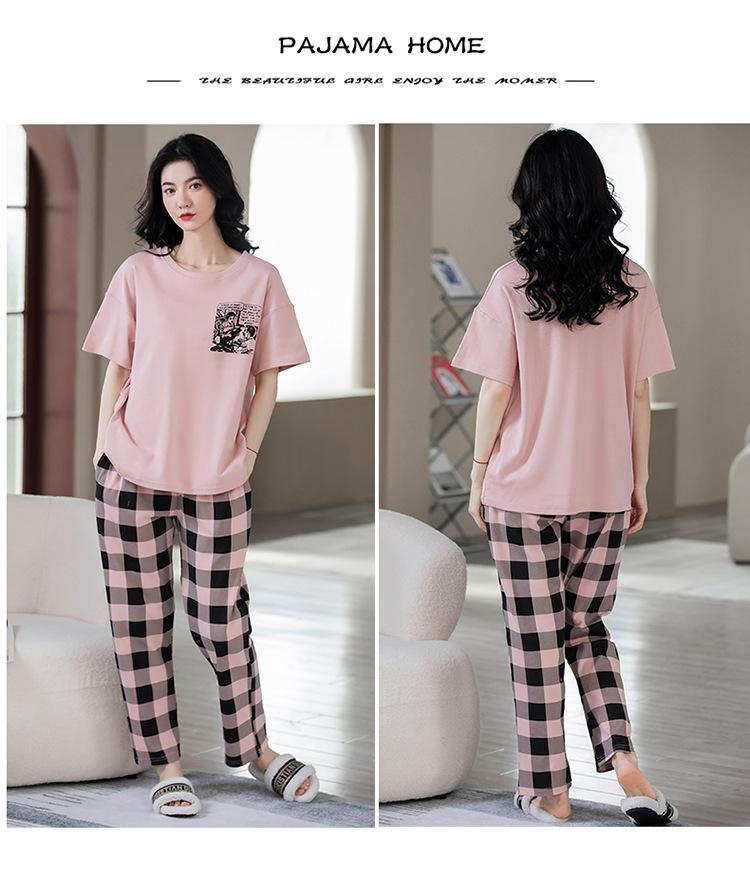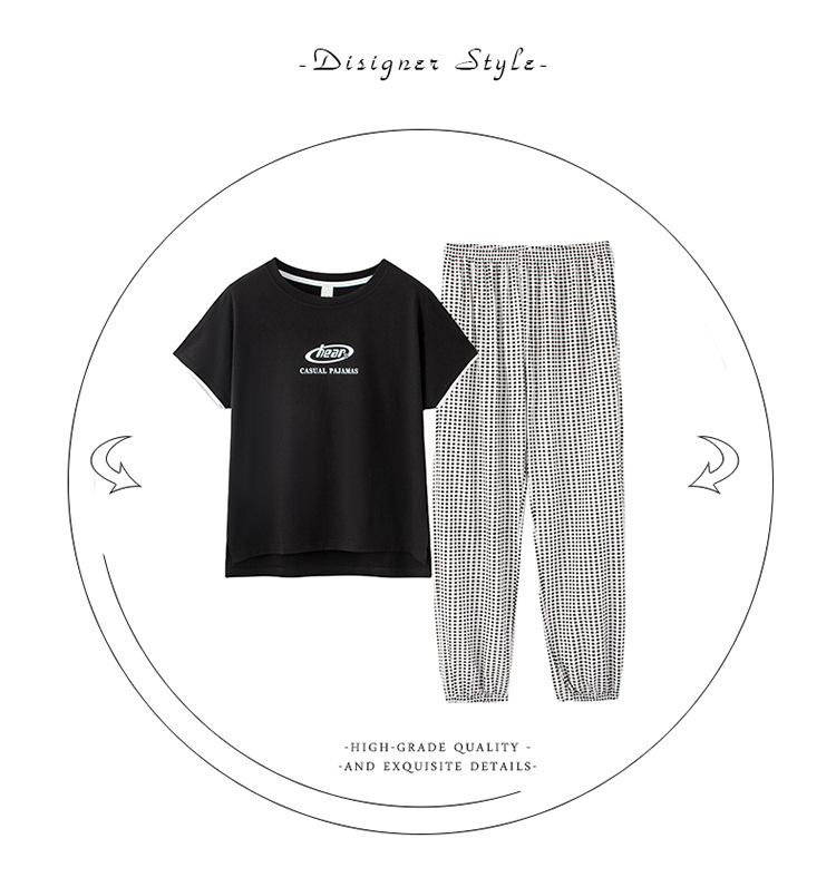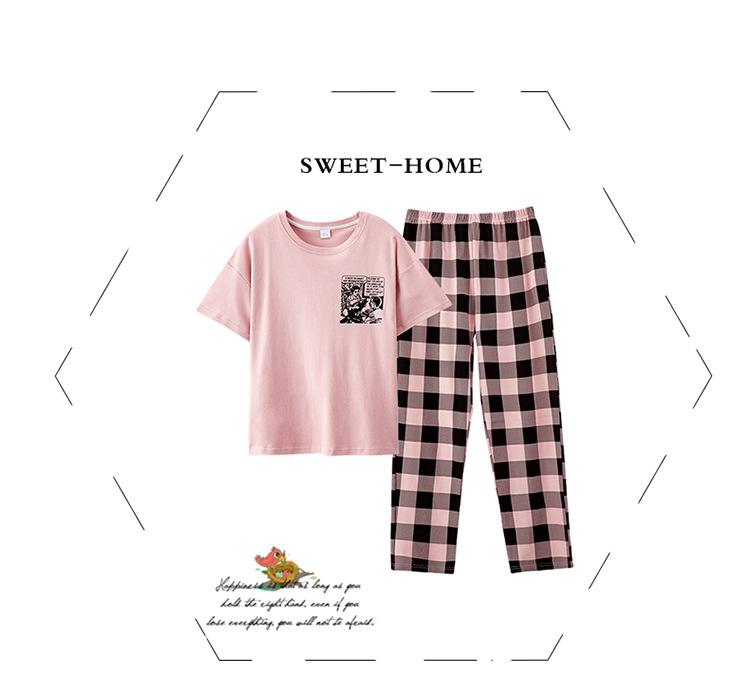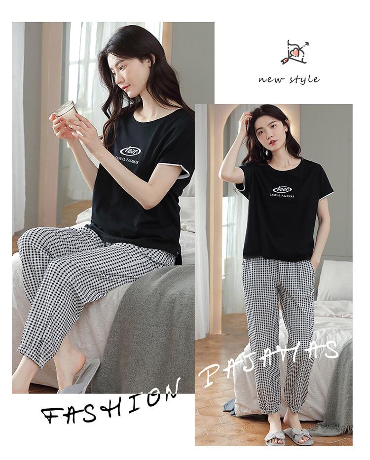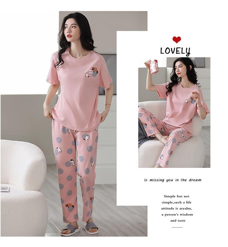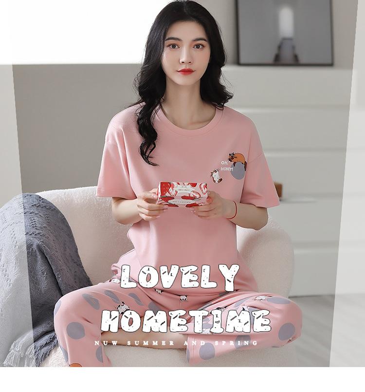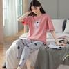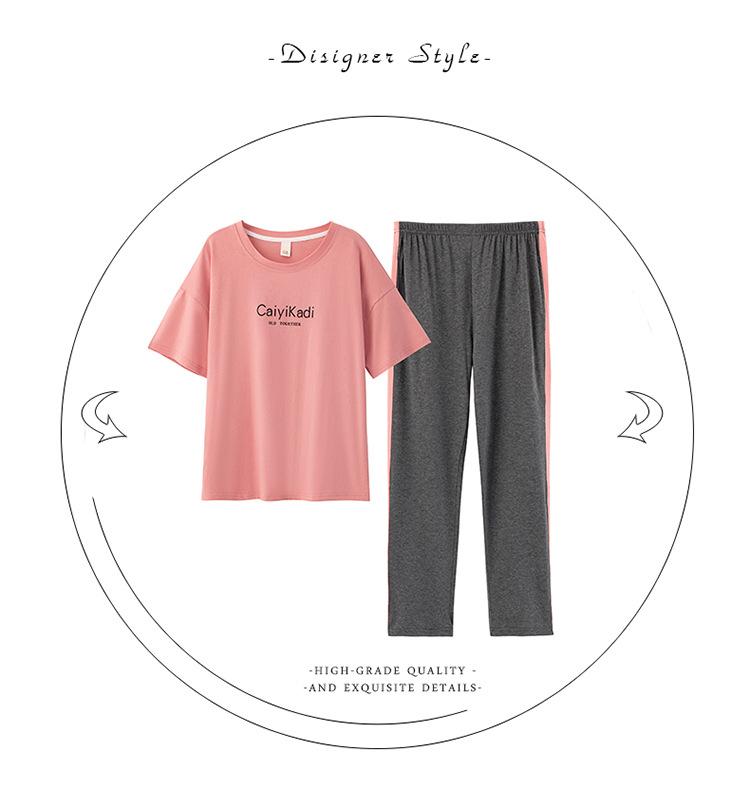 Pijama de Verano para Mujer Algodón Lindo Manga Corta Pantalones Dulce Jersey Ropa para el Hogar Verano Fino Ropa Exterior Conjunto de Dos Piezas