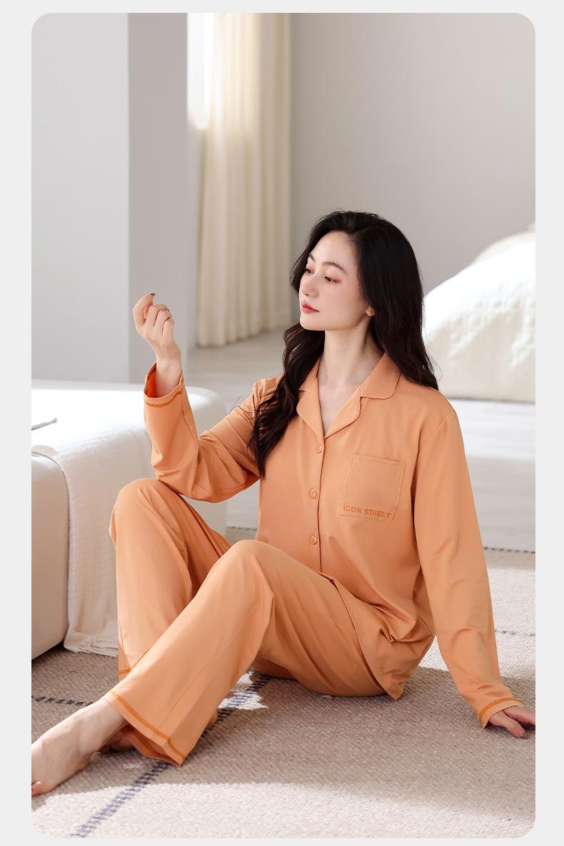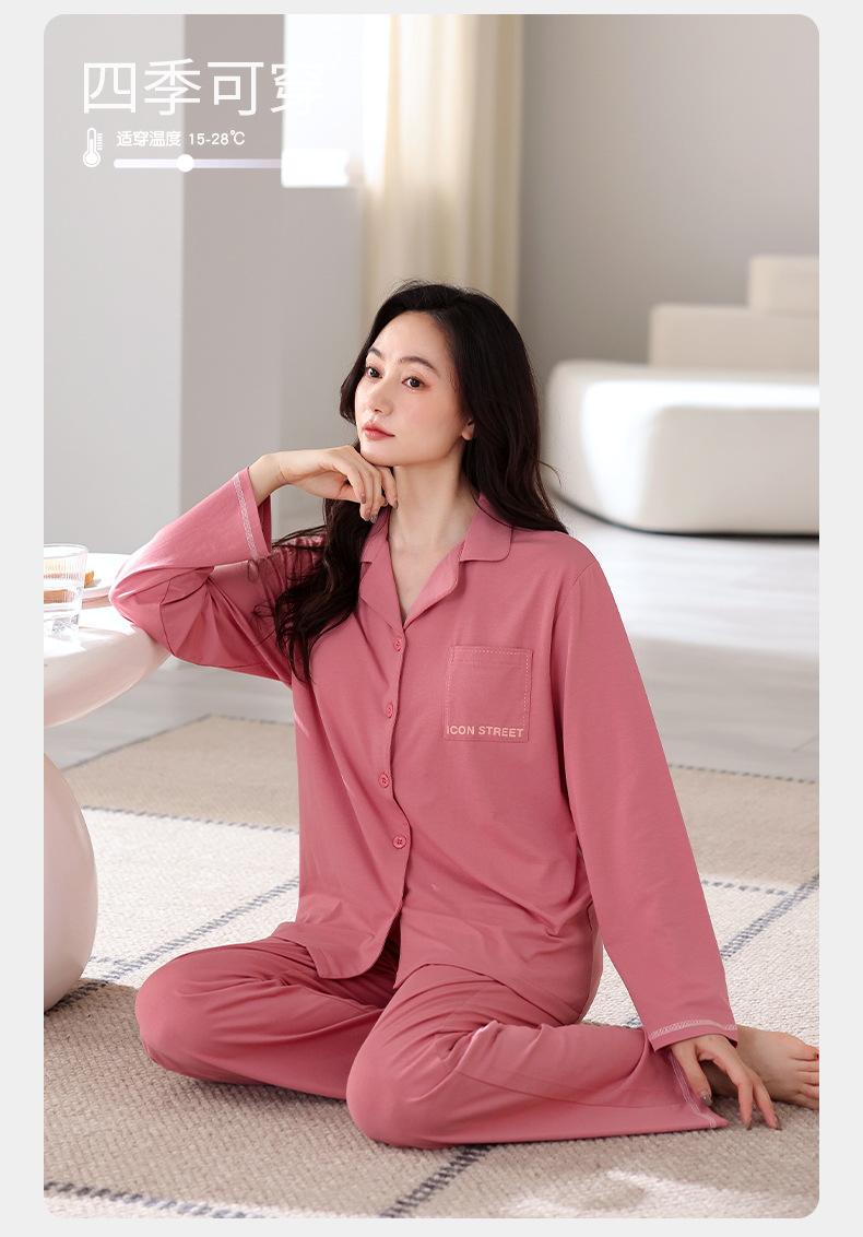 Pijama de Mujer Primavera y Otoño 2024 Nuevo Modal Delgado Manga Larga de Mujer Otoño Ropa de Casa Integrada con Almohadilla en el Pecho traje