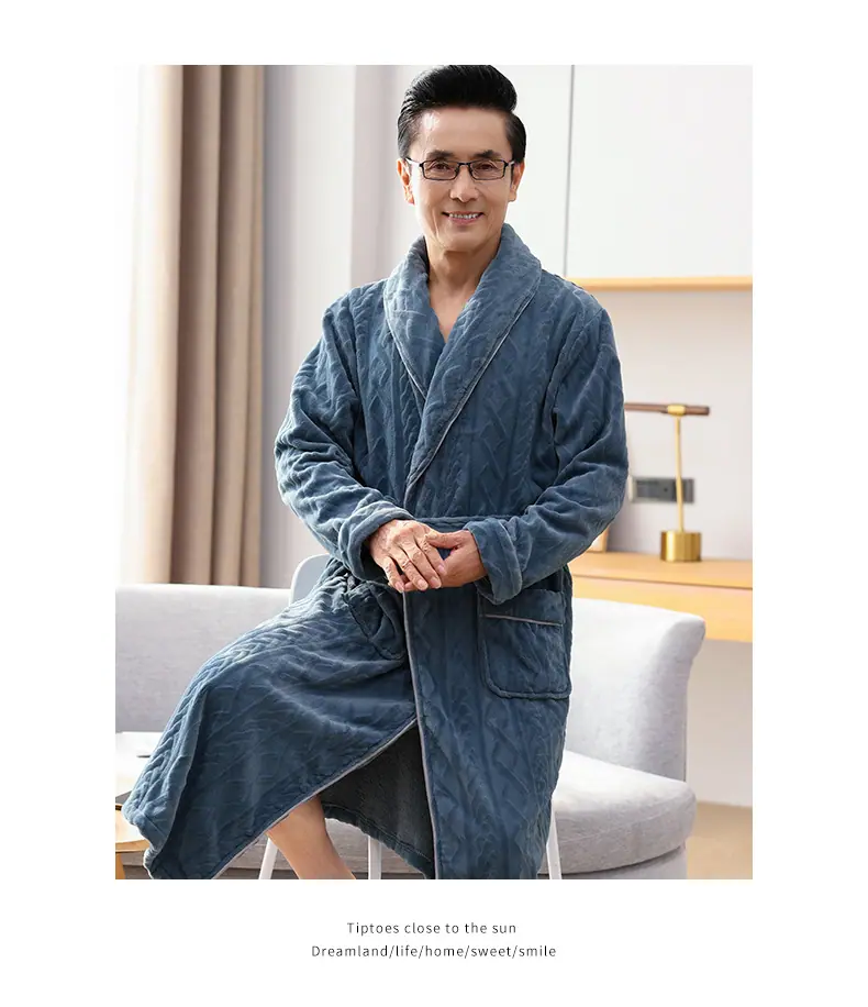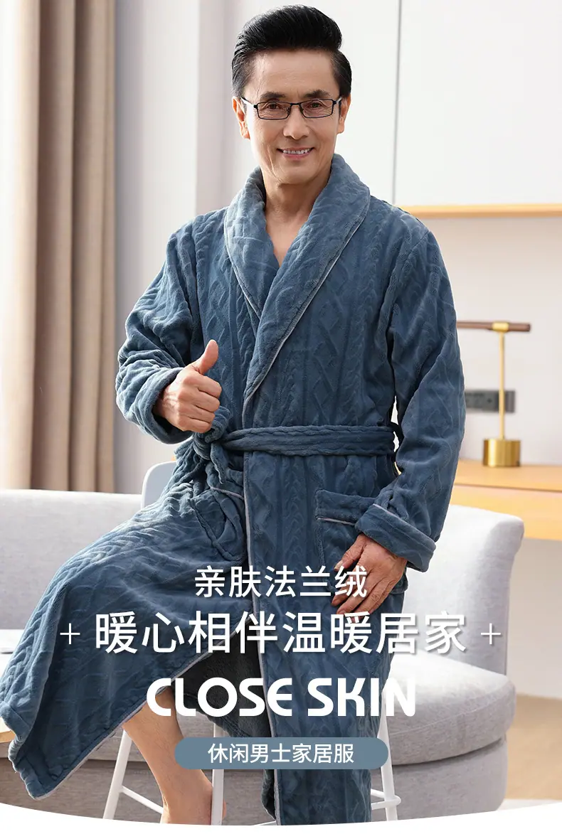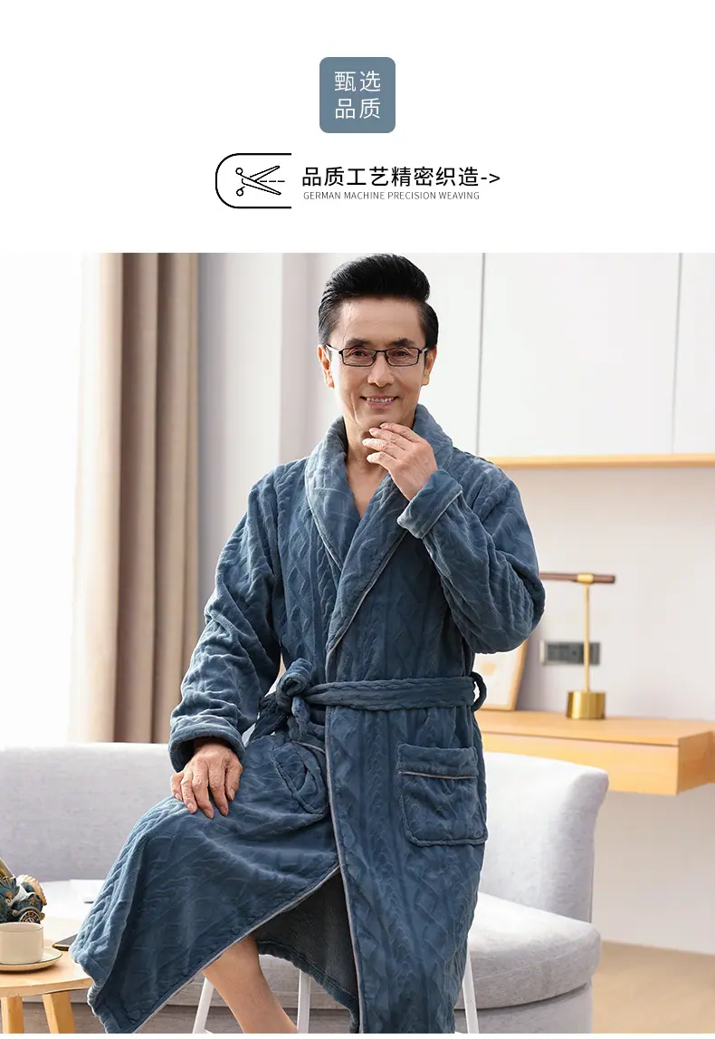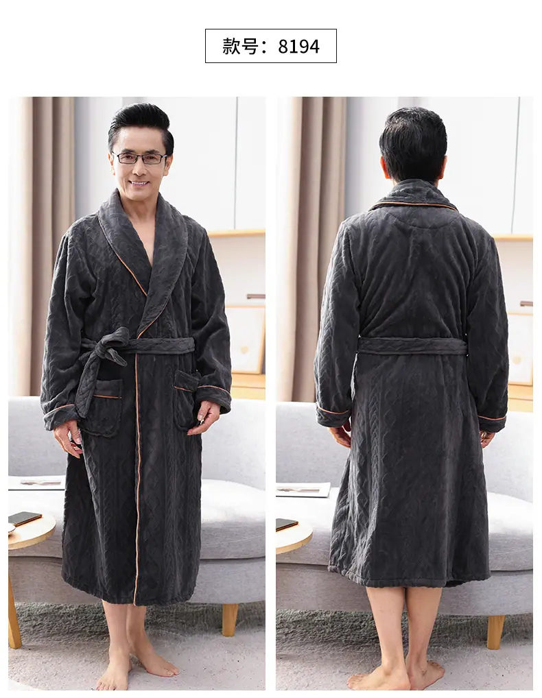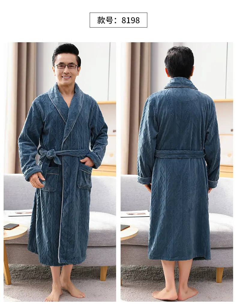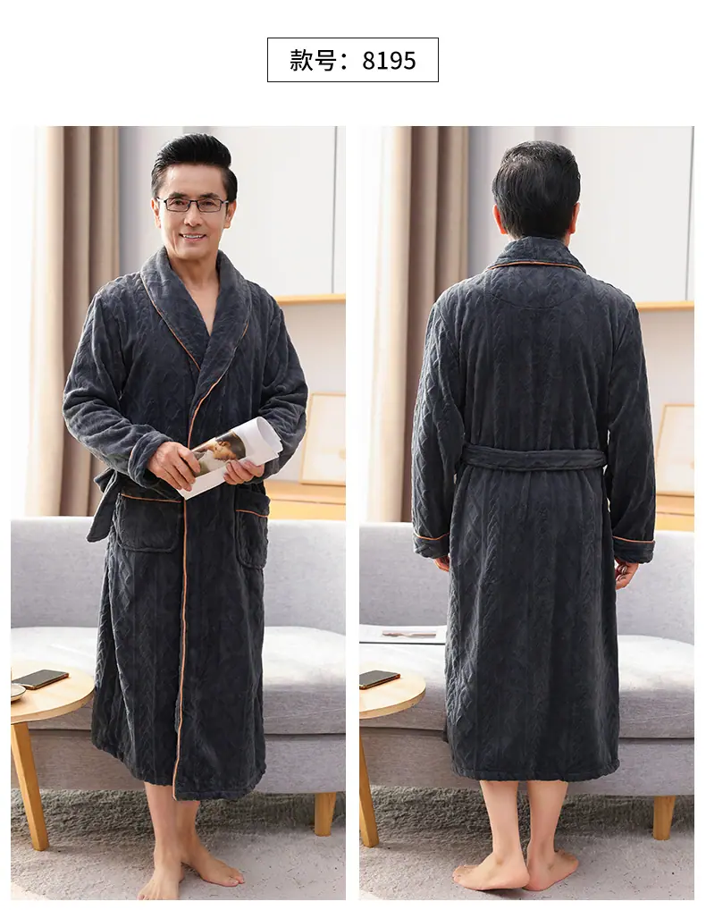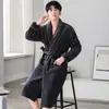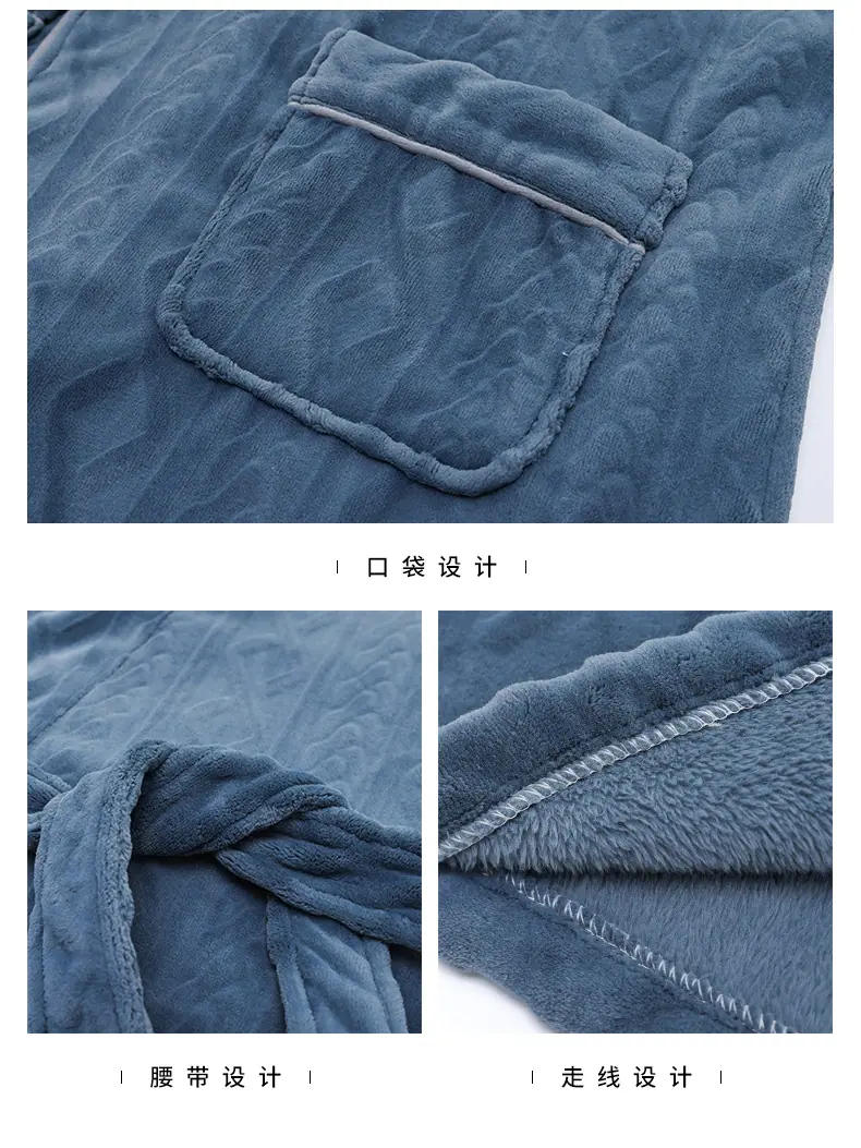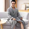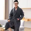 Bata de Franela para Hombre Otoño Invierno Plus Terciopelo Gruesa Invierno Media Longitud Talla Grande Cálida Bata de Baño de Forro Polar Coral Ropa para el Hogar