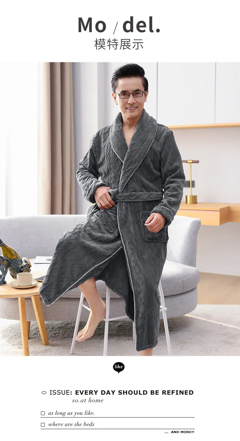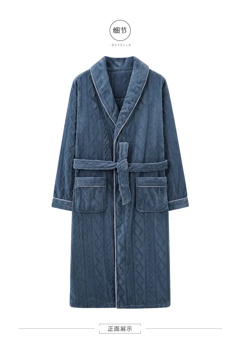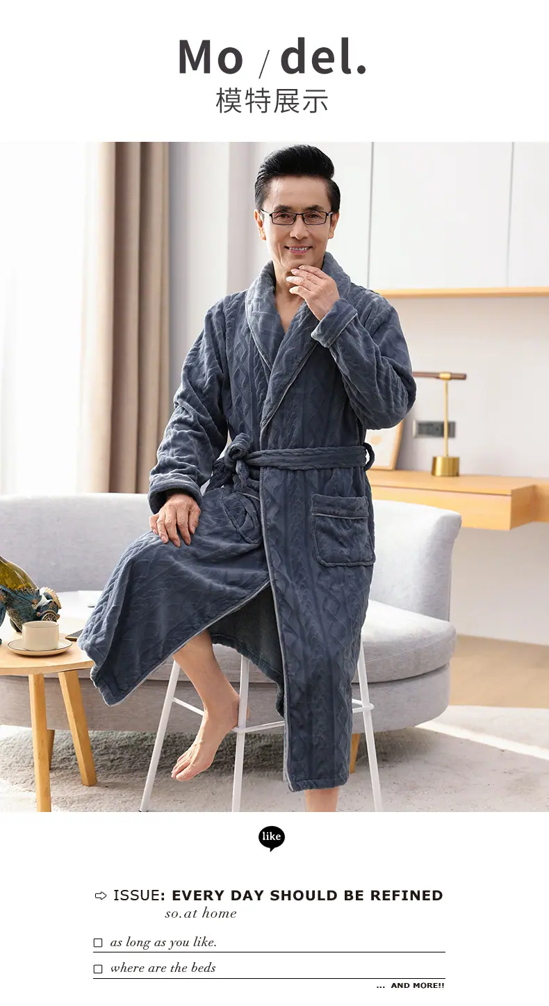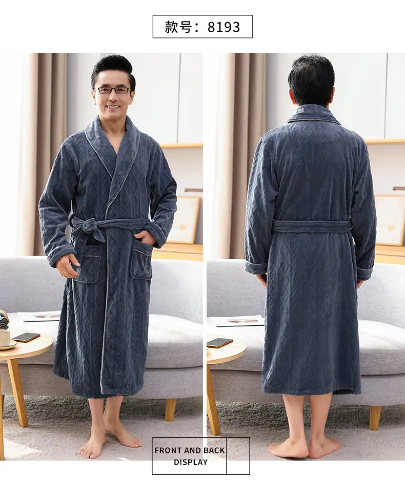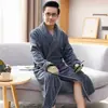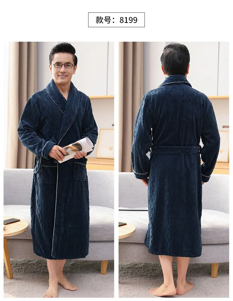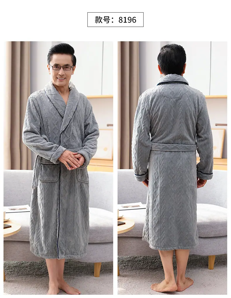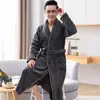 Bata de Franela para Hombre Otoño Invierno Plus Terciopelo Gruesa Invierno Media Longitud Talla Grande Cálida Bata de Baño de Forro Polar Coral Ropa para el Hogar