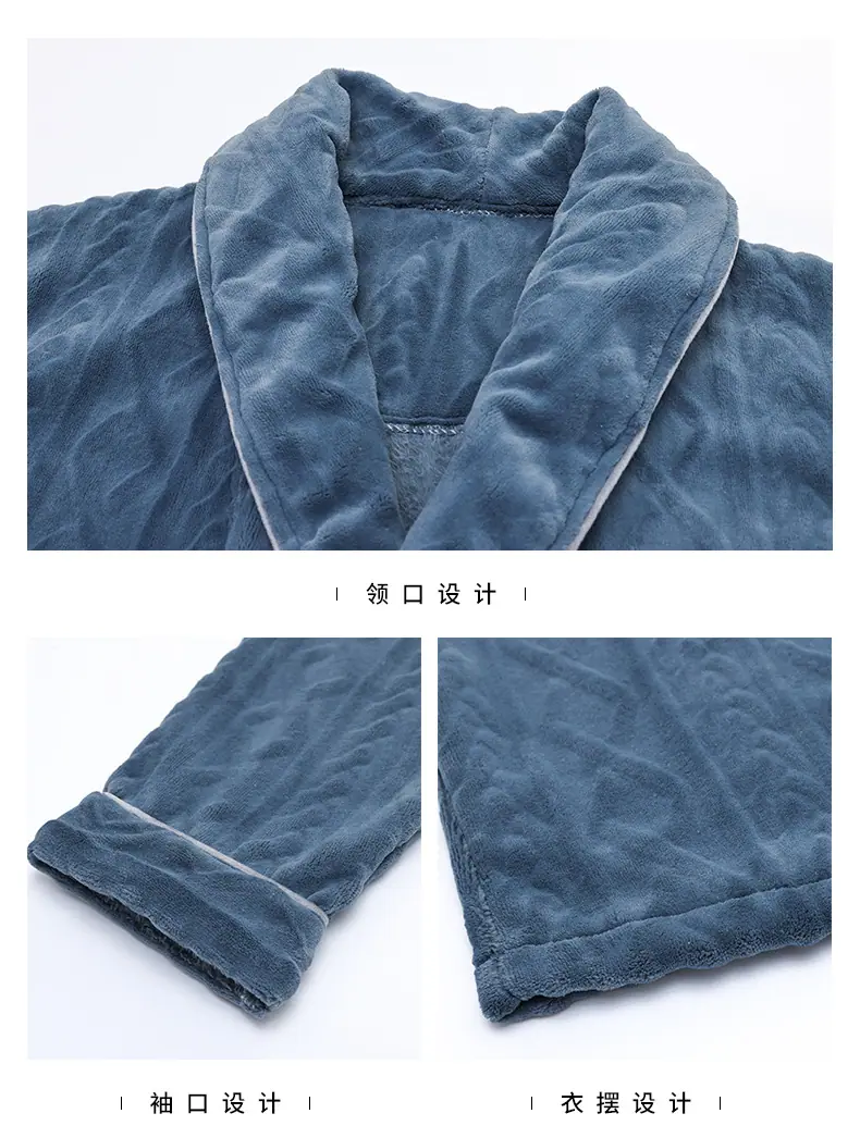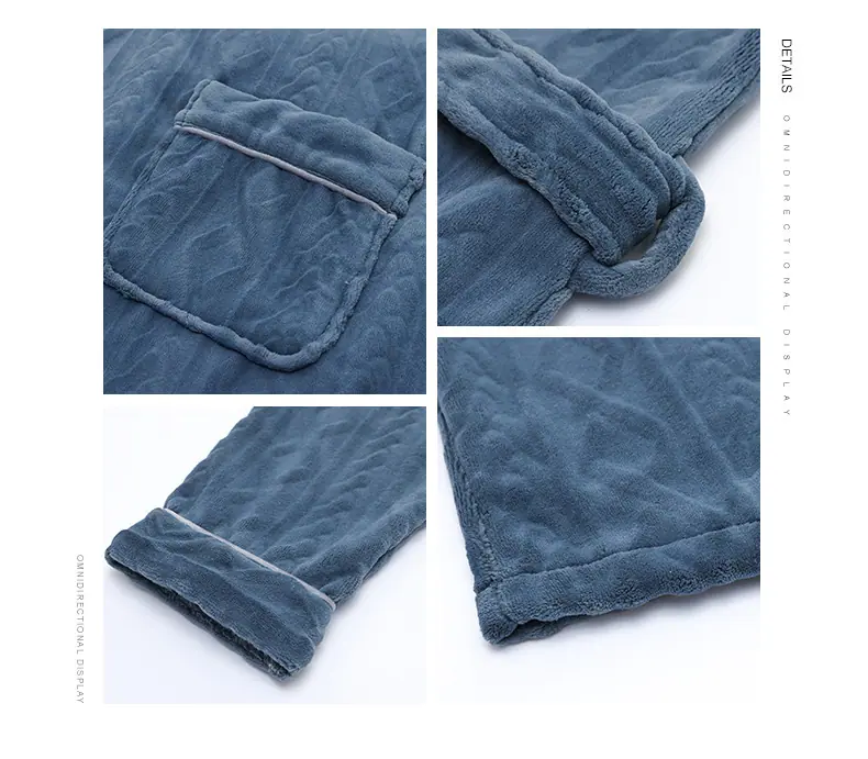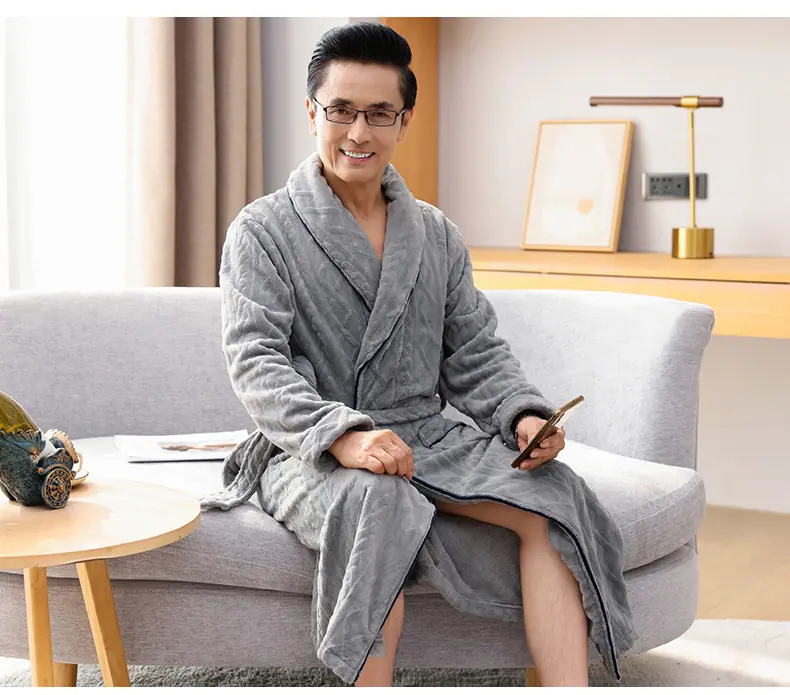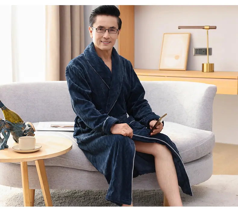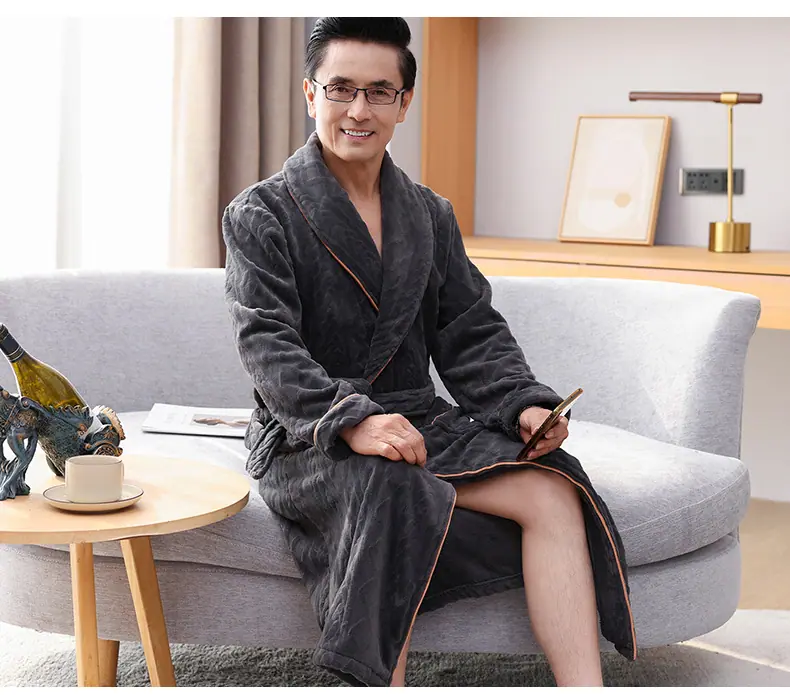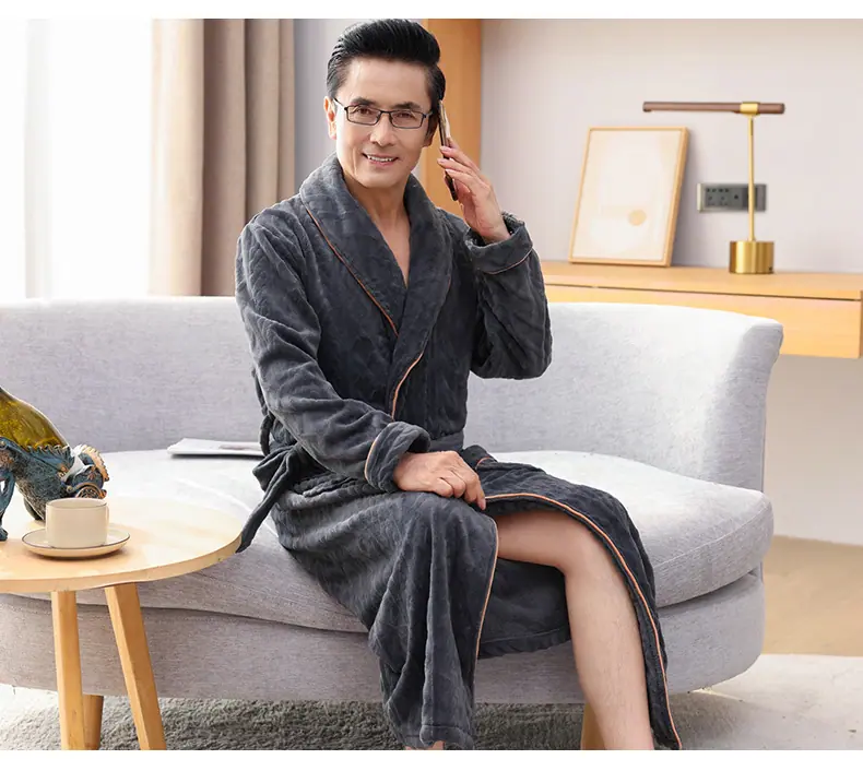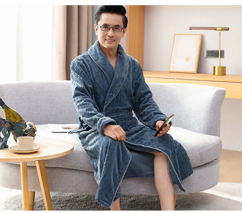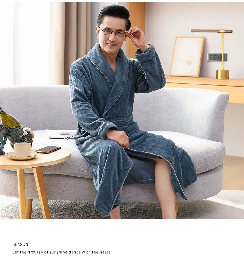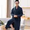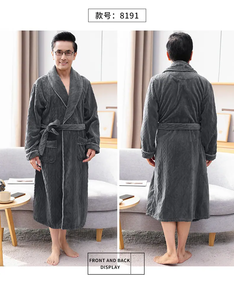 Bata de Franela para Hombre Otoño Invierno Plus Terciopelo Gruesa Invierno Media Longitud Talla Grande Cálida Bata de Baño de Forro Polar Coral Ropa para el Hogar