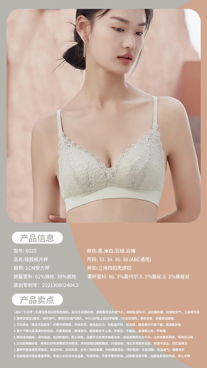 Ropa interior sin costuras de silicona de gelatina para mujer, soporte suave anti-flacidez, realce para pecho pequeño, encaje, sujetador transpirable al por mayor 8020