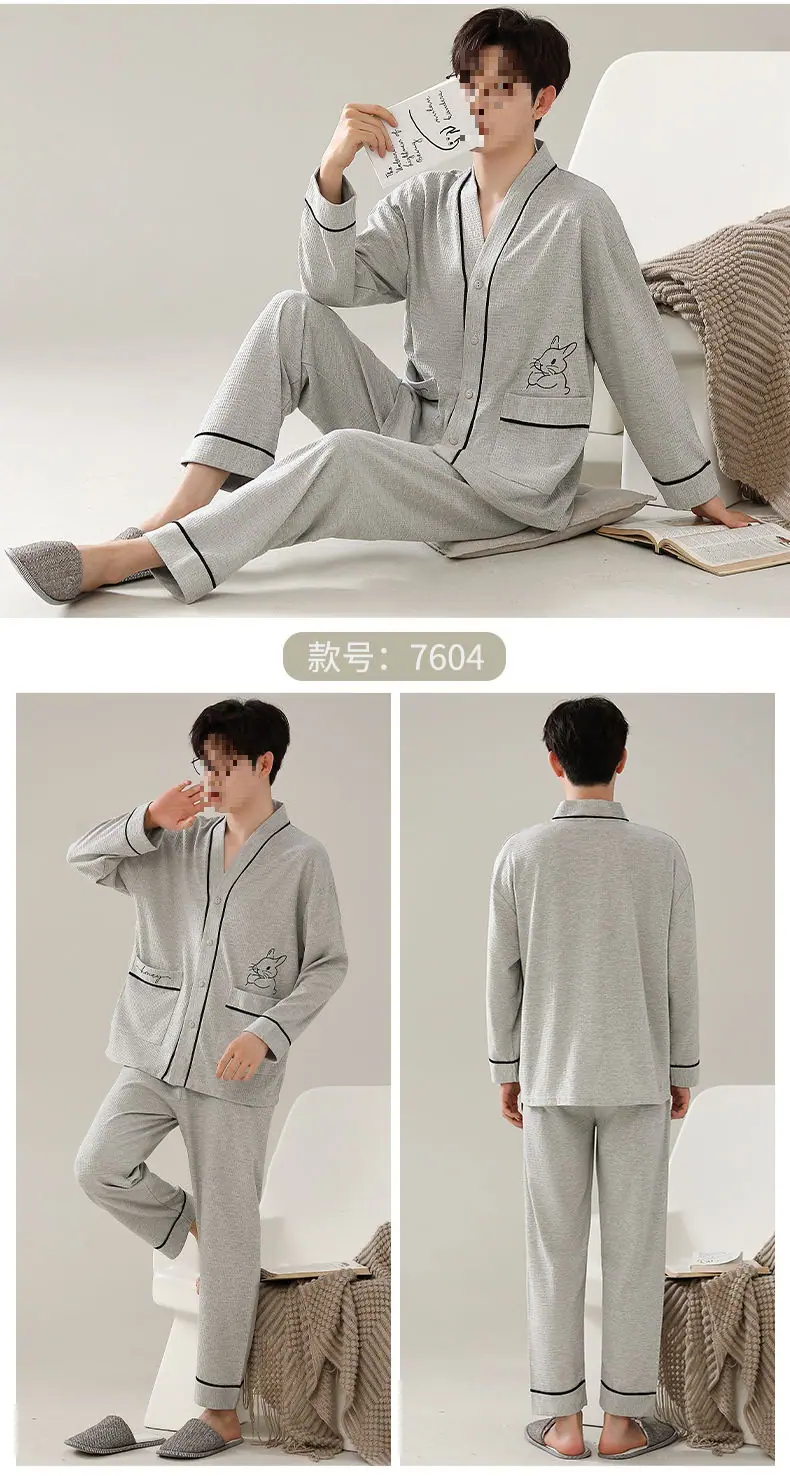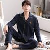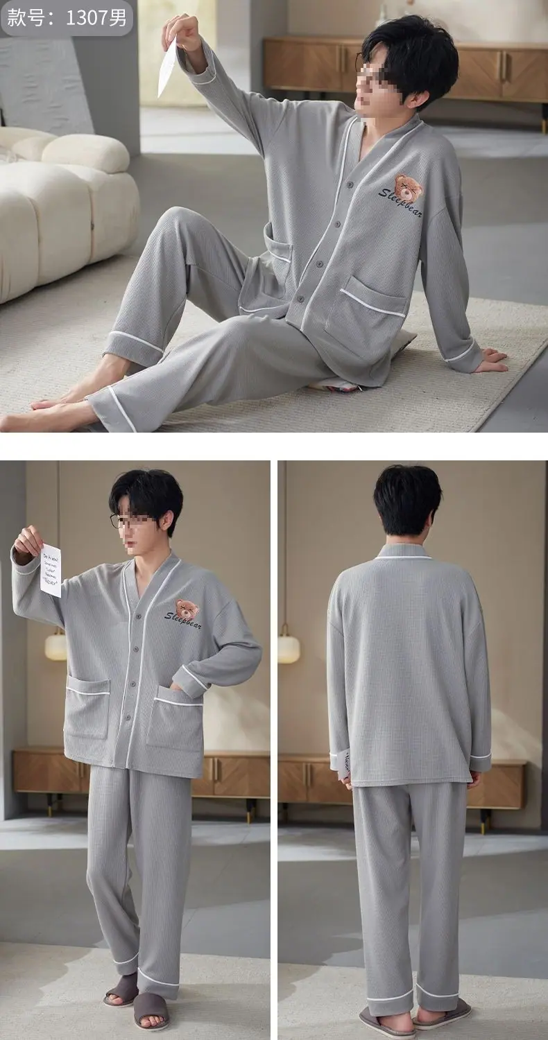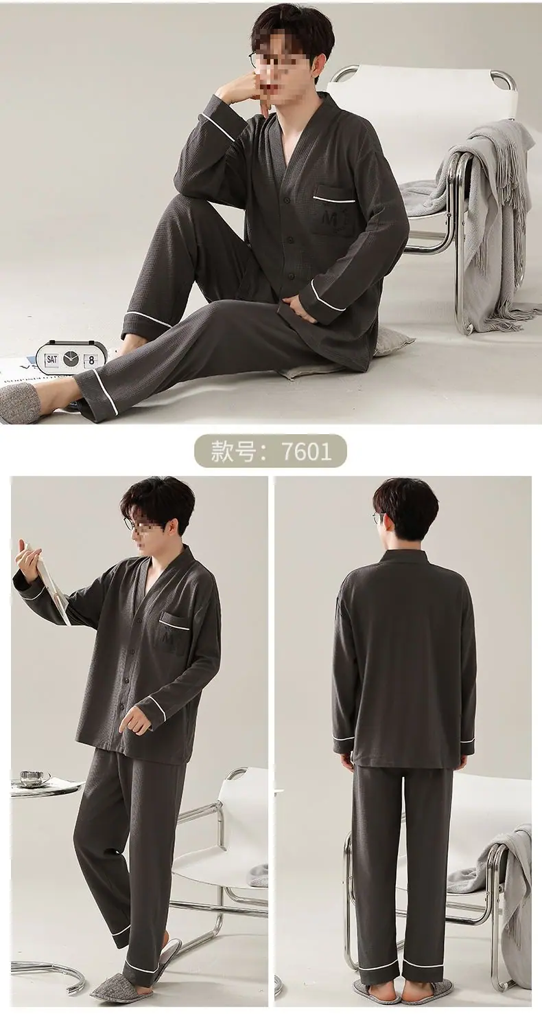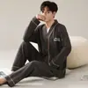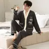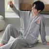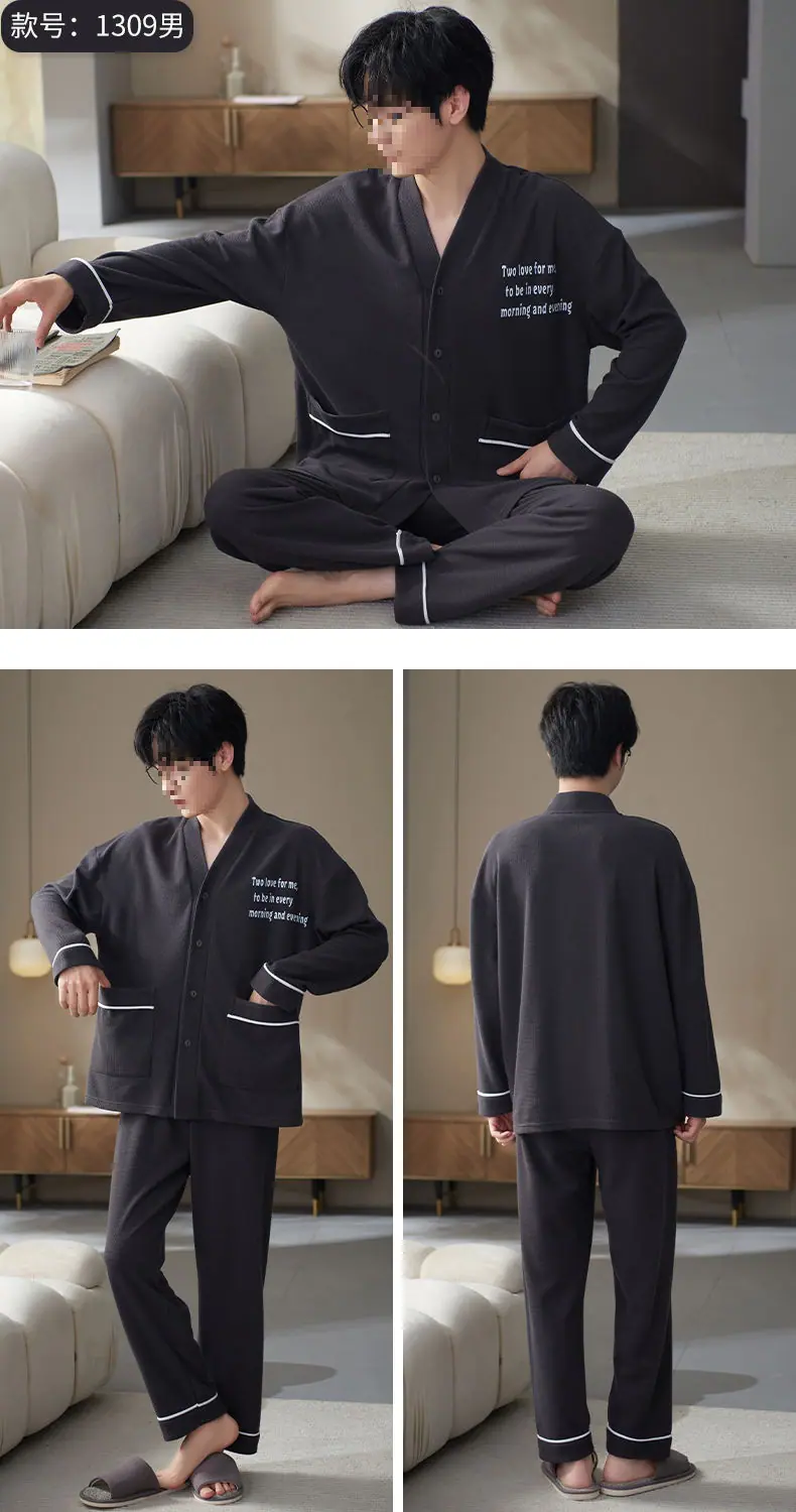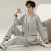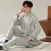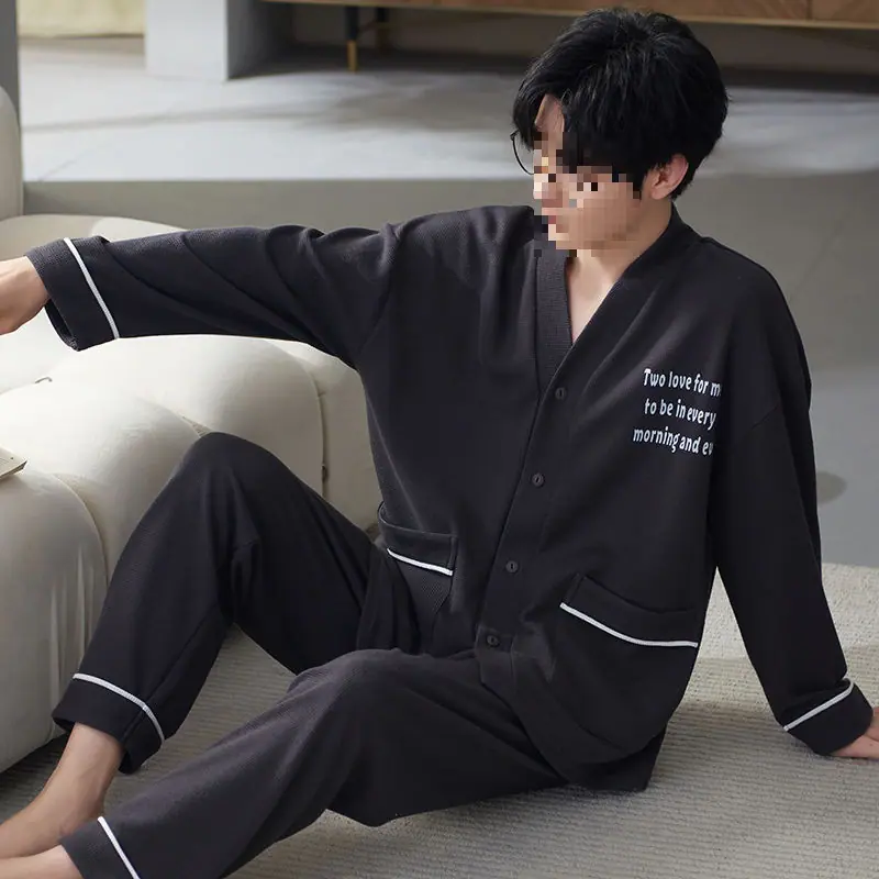 Conjunto de ropa para el hogar de otoño e invierno talla holgada cárdigan manga larga pijamas de primavera y otoño talla grande para hombre algodón licra sencillo