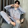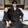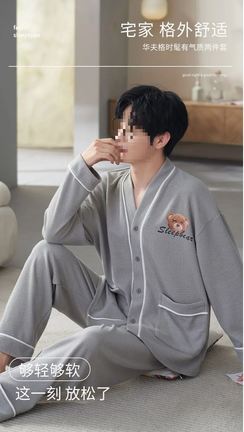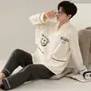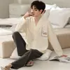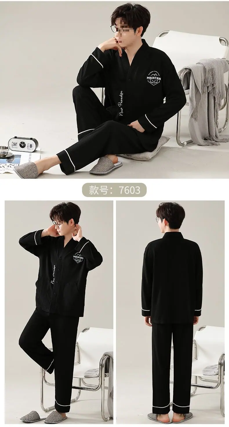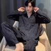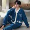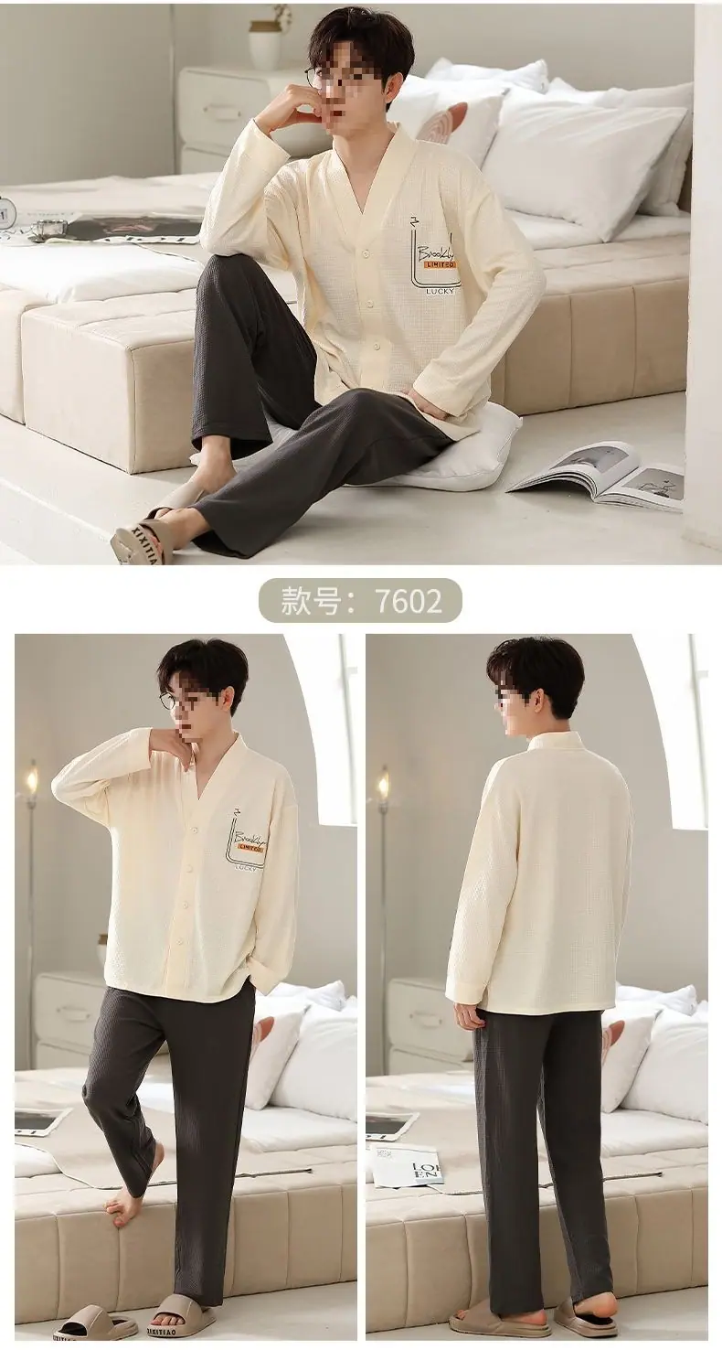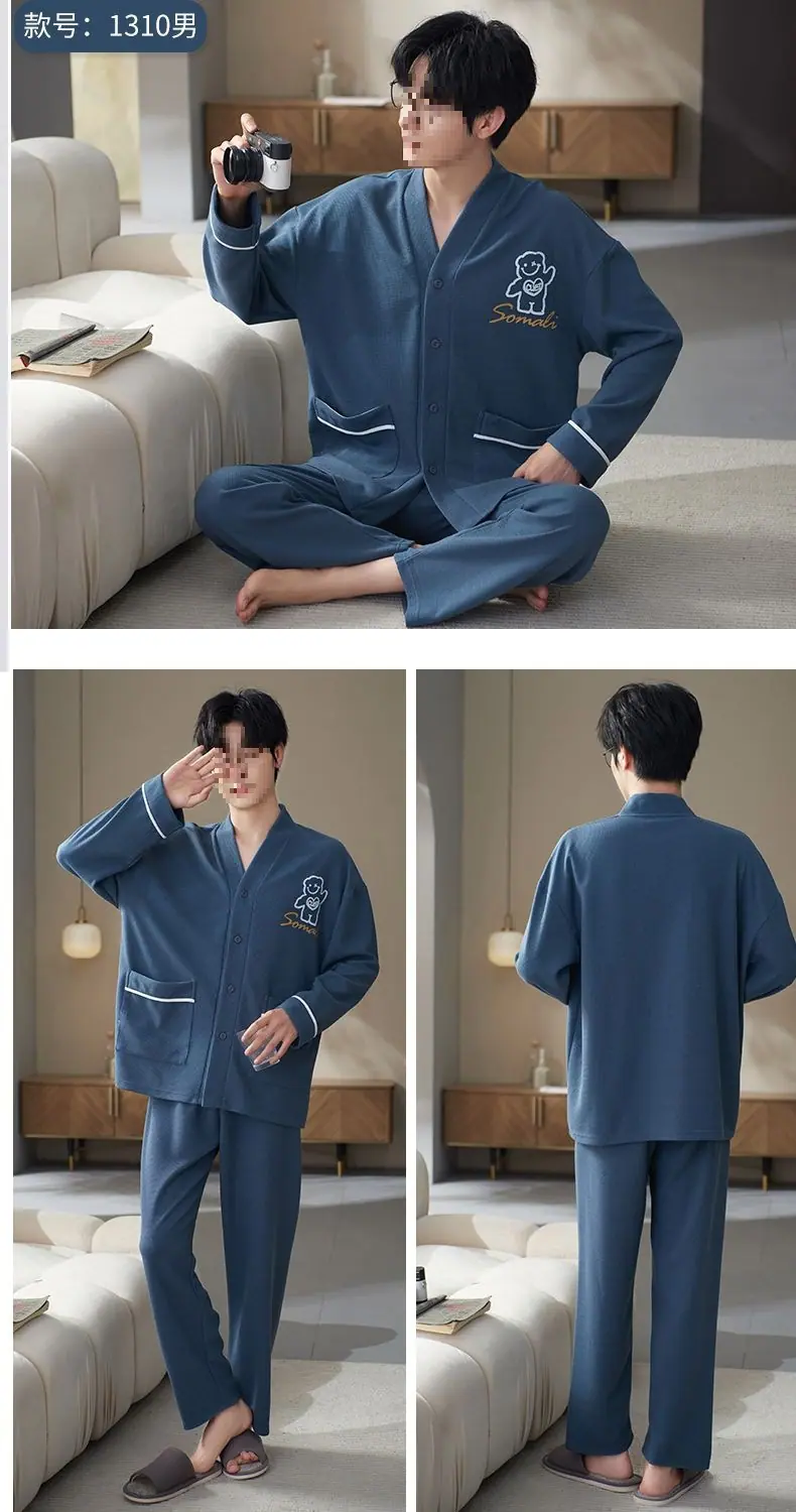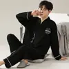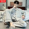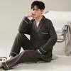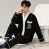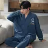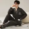 Conjunto de ropa para el hogar de otoño e invierno talla holgada cárdigan manga larga pijamas de primavera y otoño talla grande para hombre algodón licra sencillo