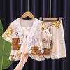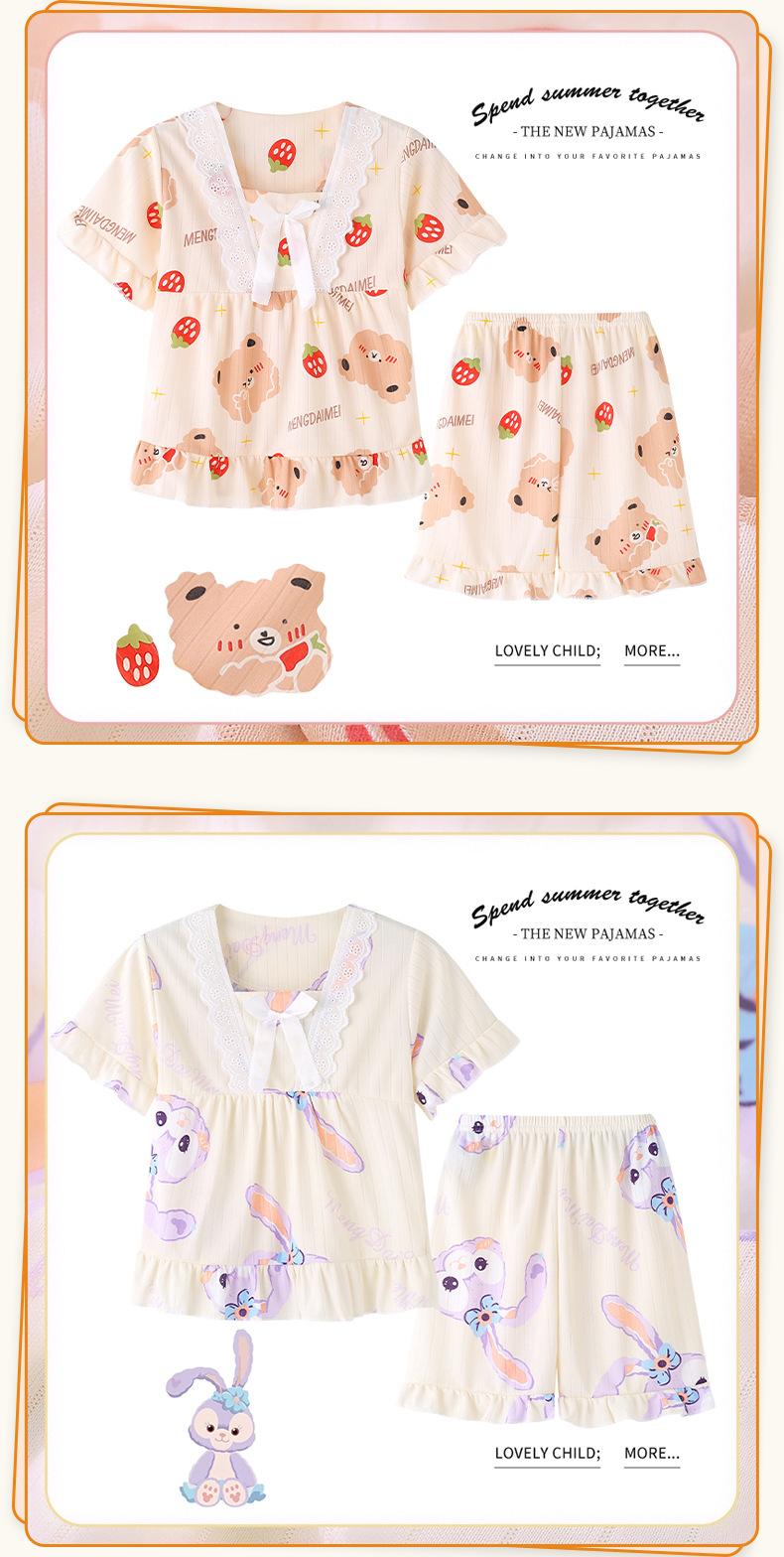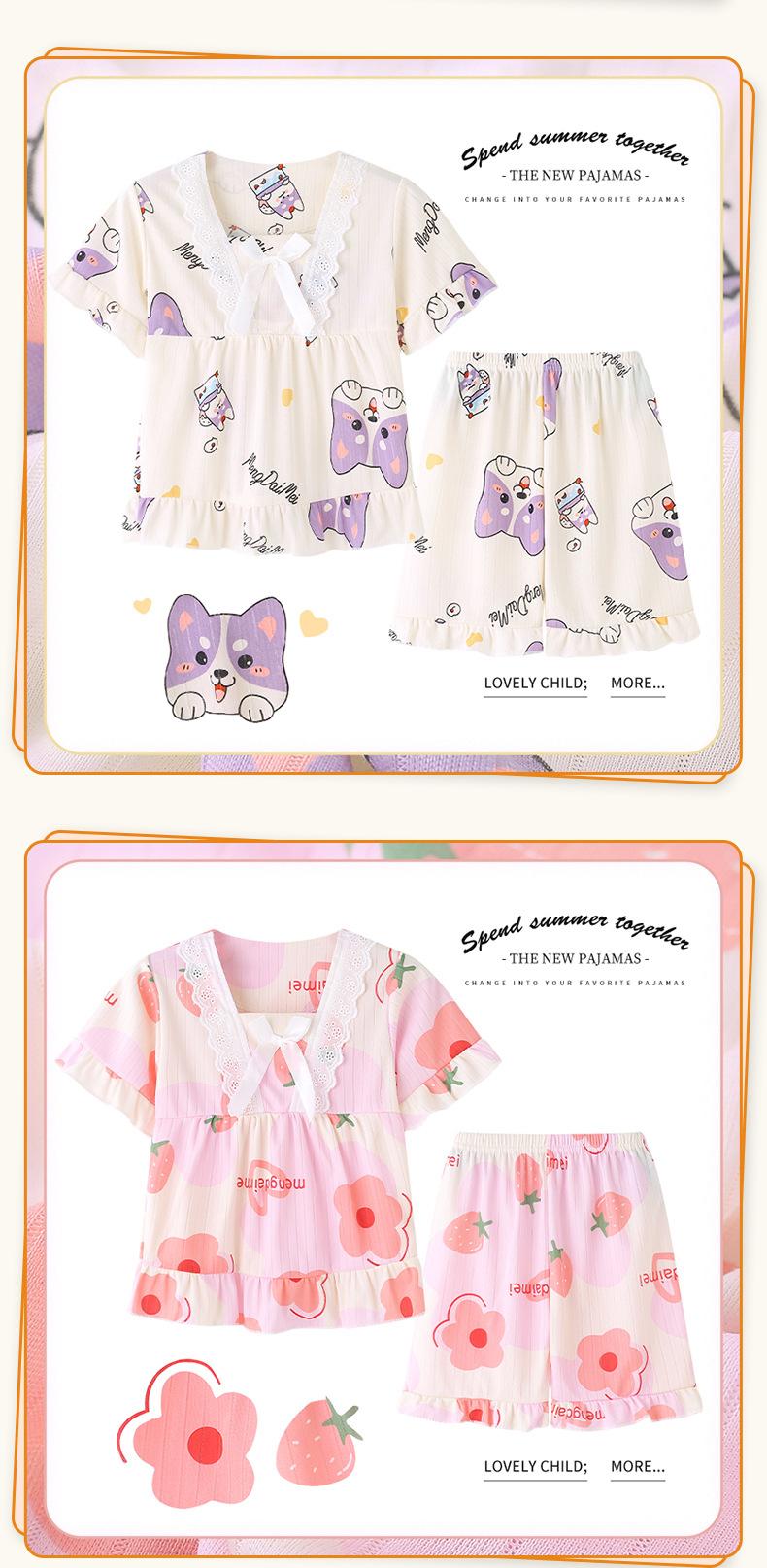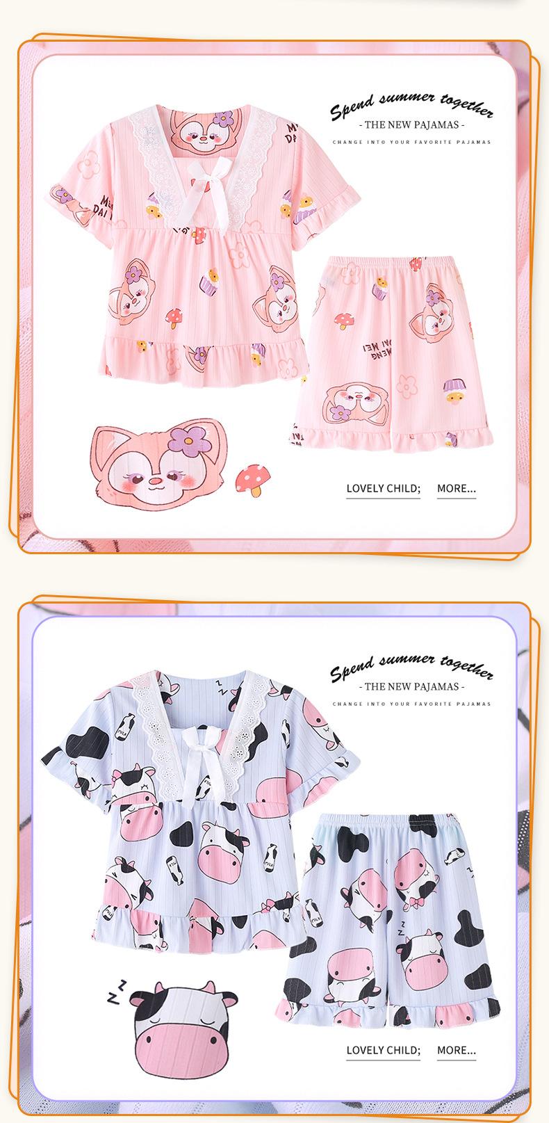 Pijamas para niñas, ropa de casa fina de verano, traje para niñas medianas y grandes, ropa de aire acondicionado de manga corta con dibujos animados para niñas, ropa exterior