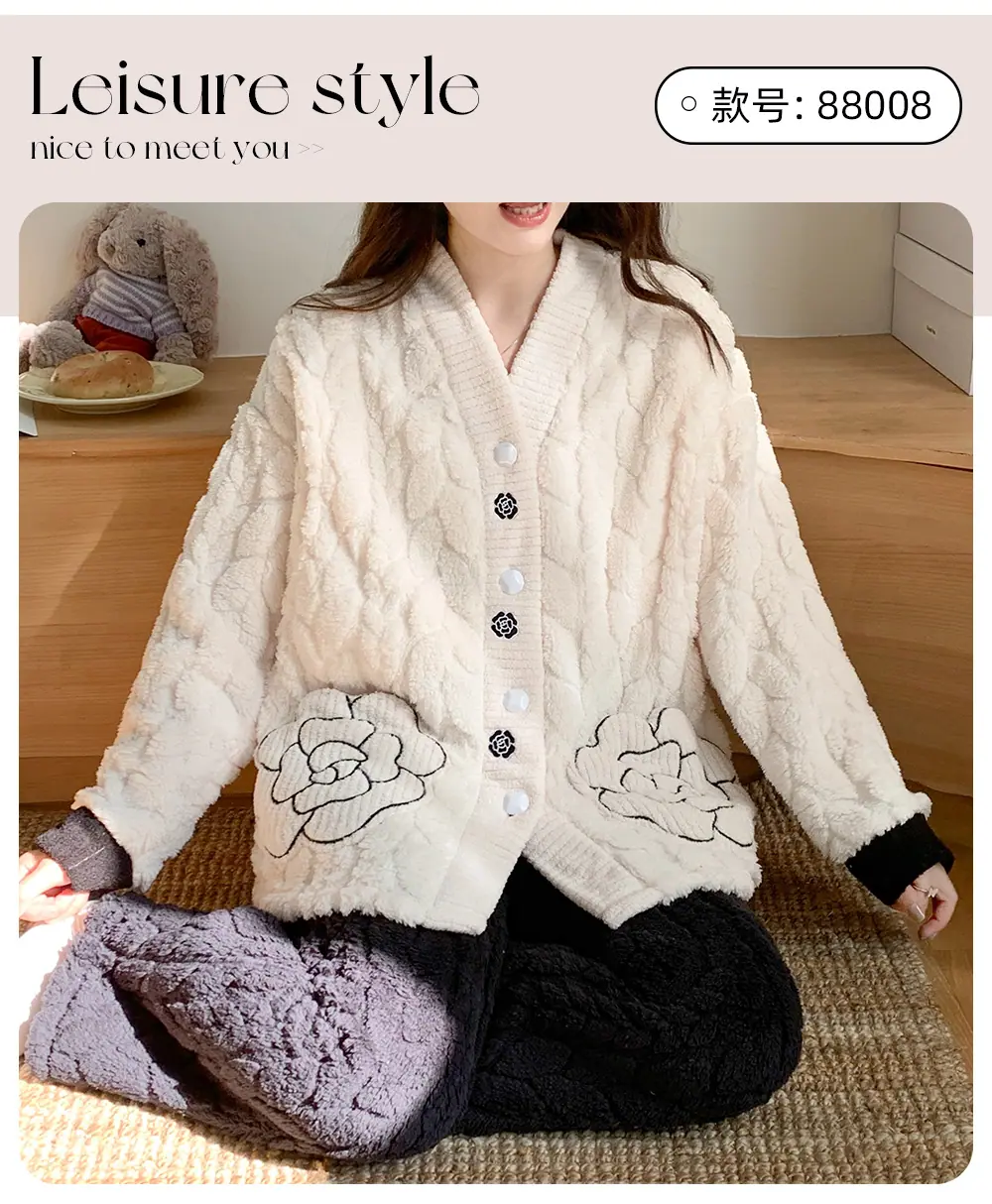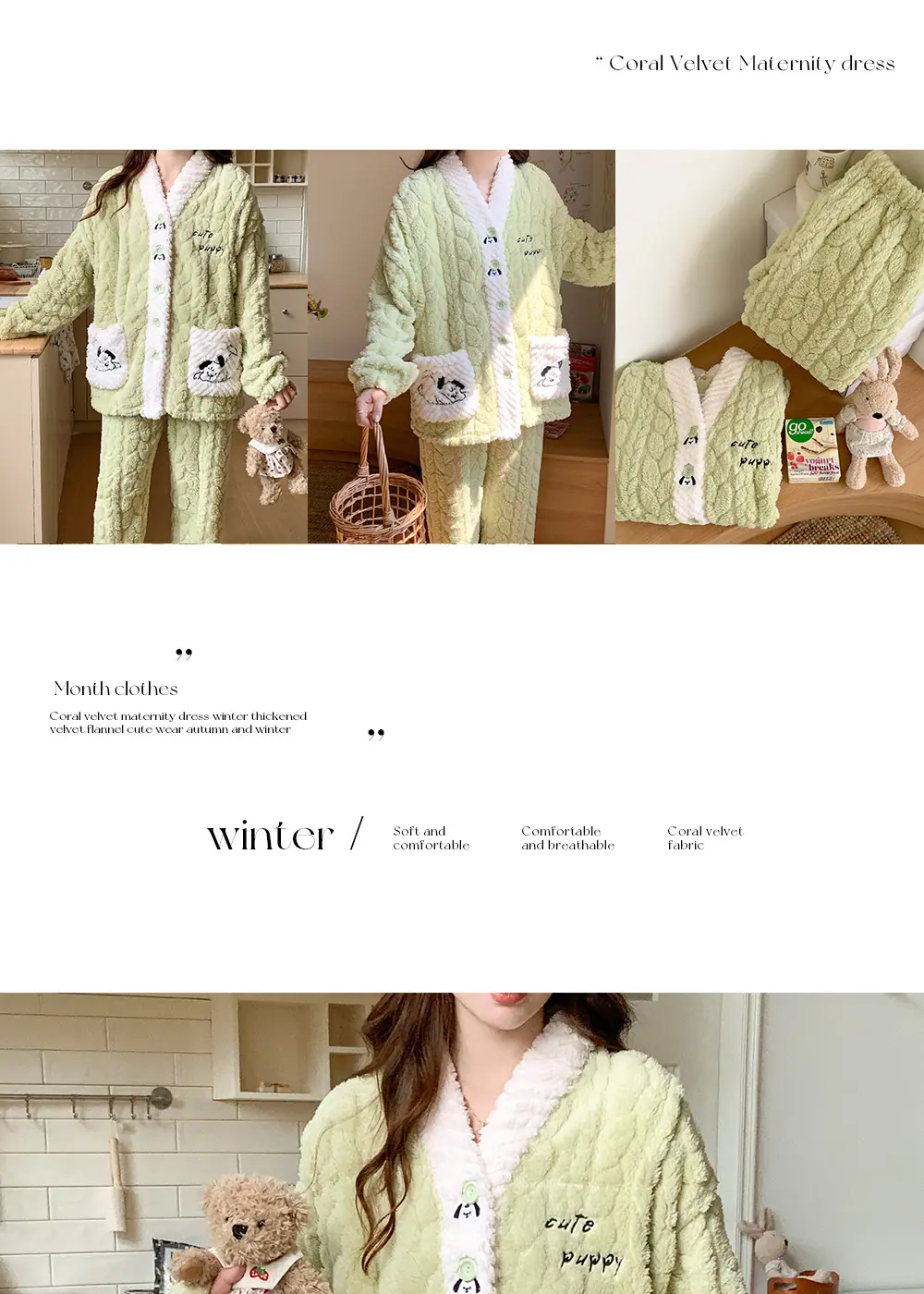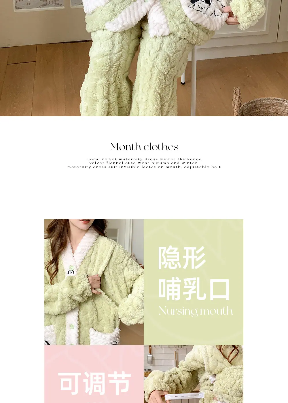 Xi Yue Venta al por Mayor Invierno Clase A Ropa de Maternidad Polar Coral 280 Gramos Embarazo Postparto Lactancia Calidez Pijamas para Mujeres Embarazadas