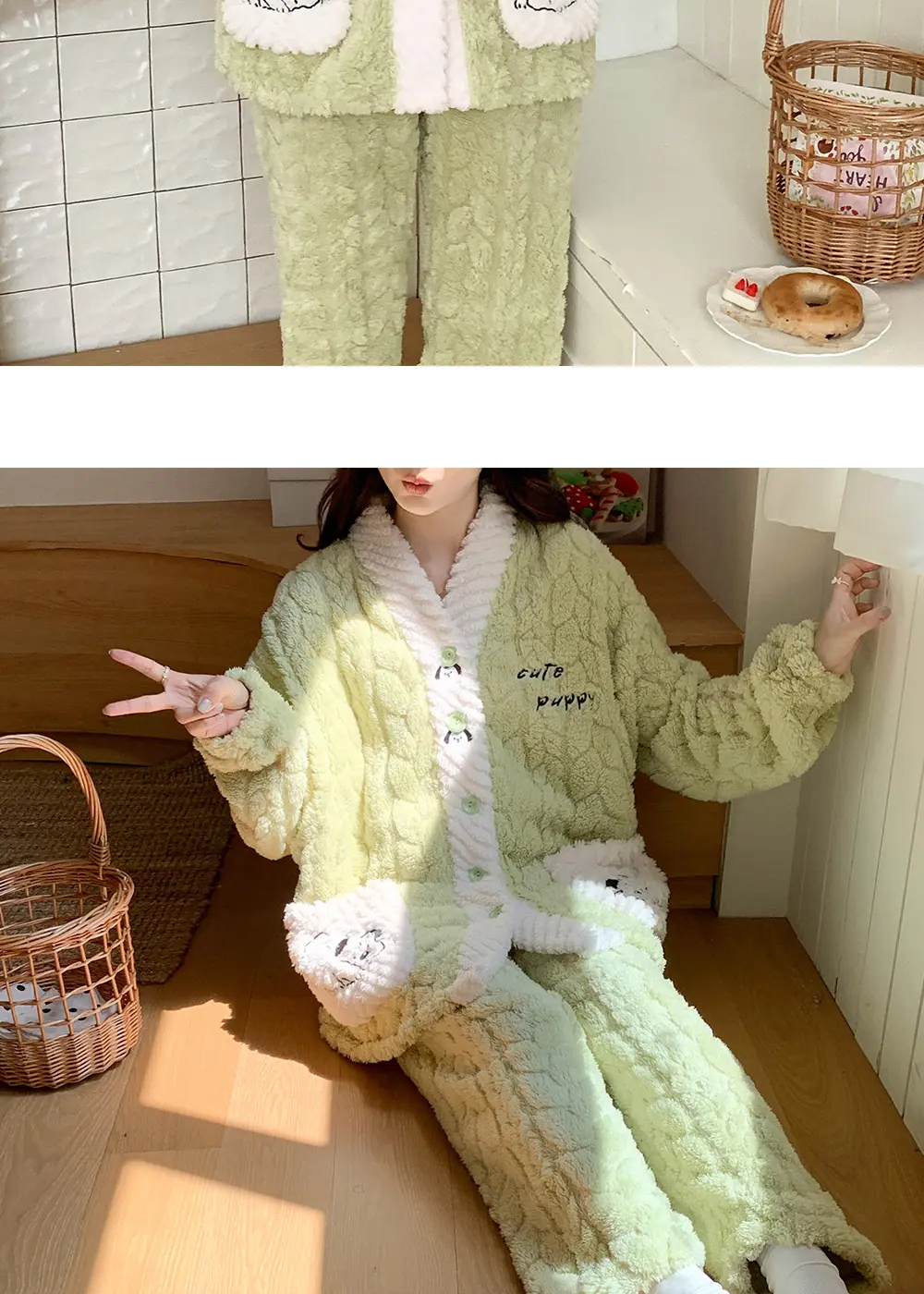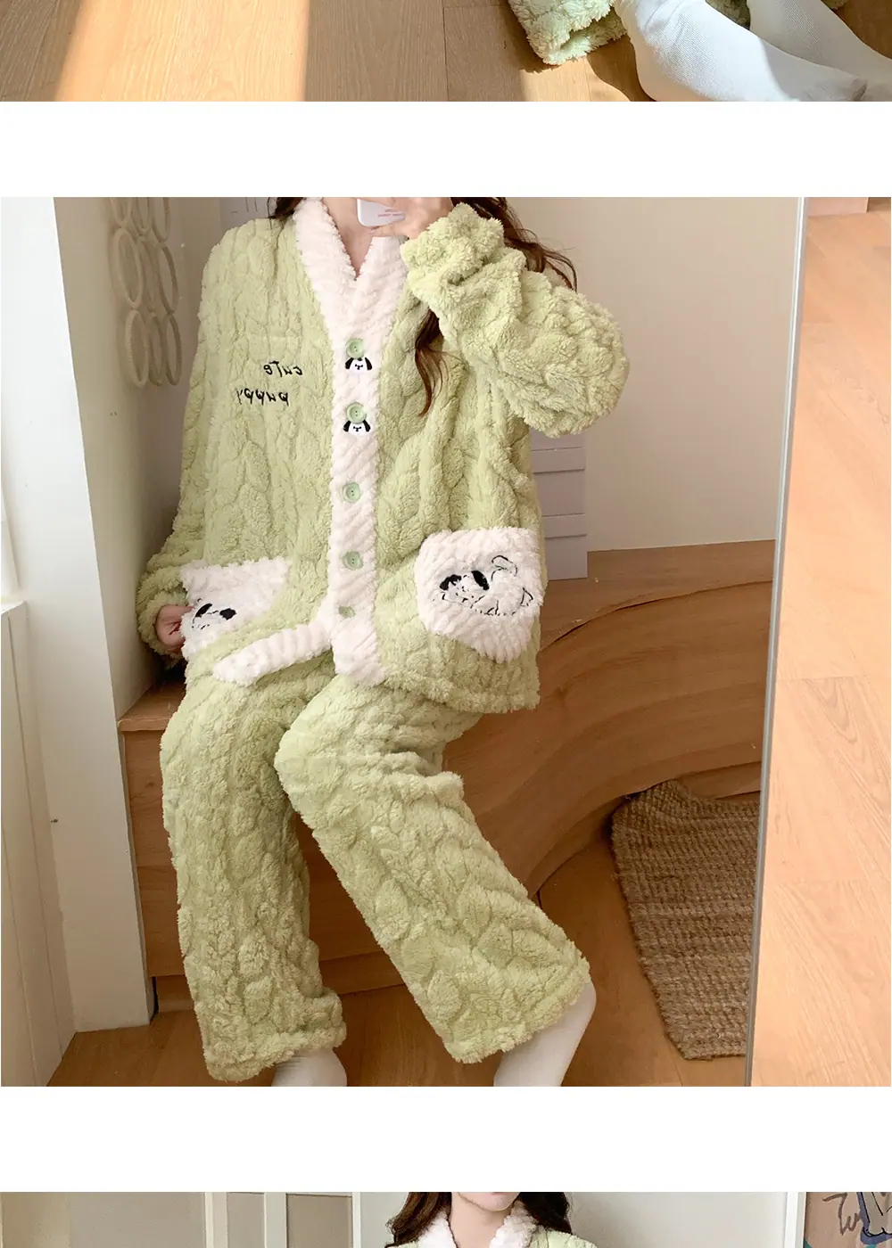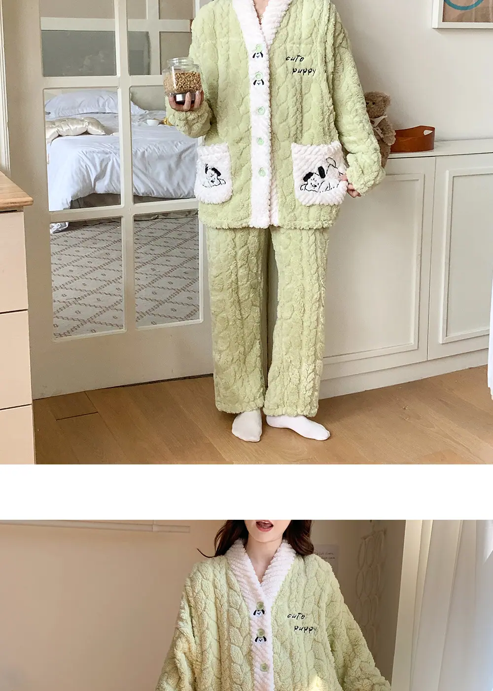 Xi Yue Venta al por Mayor Invierno Clase A Ropa de Maternidad Polar Coral 280 Gramos Embarazo Postparto Lactancia Calidez Pijamas para Mujeres Embarazadas