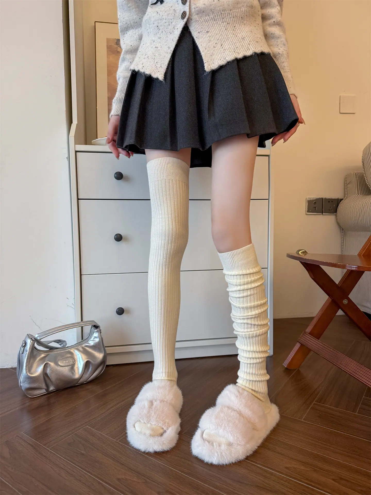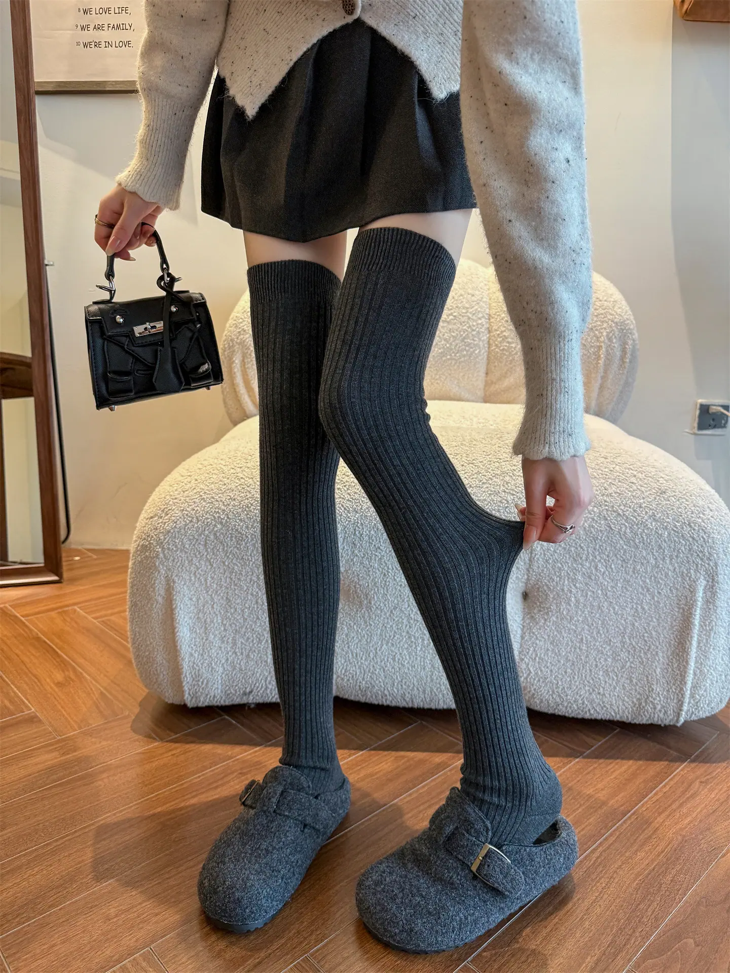 Calcetines para Mujer por Encima de la Rodilla Extra Largos Antideslizantes de Invierno de Lana Hasta el Muslo Cálidos Gruesos Adelgazantes para Pierna Otoño e Invierno Calcetines hasta la Rodilla