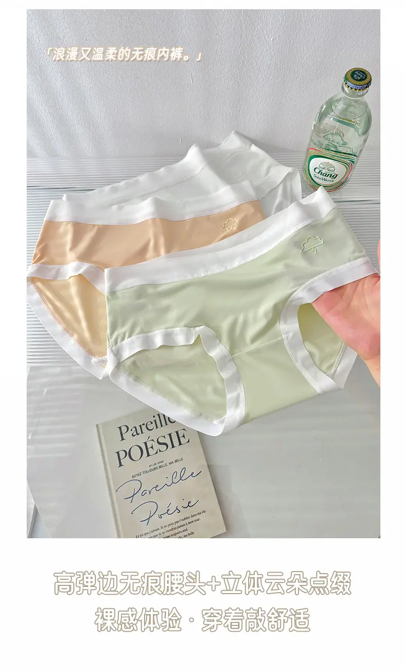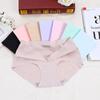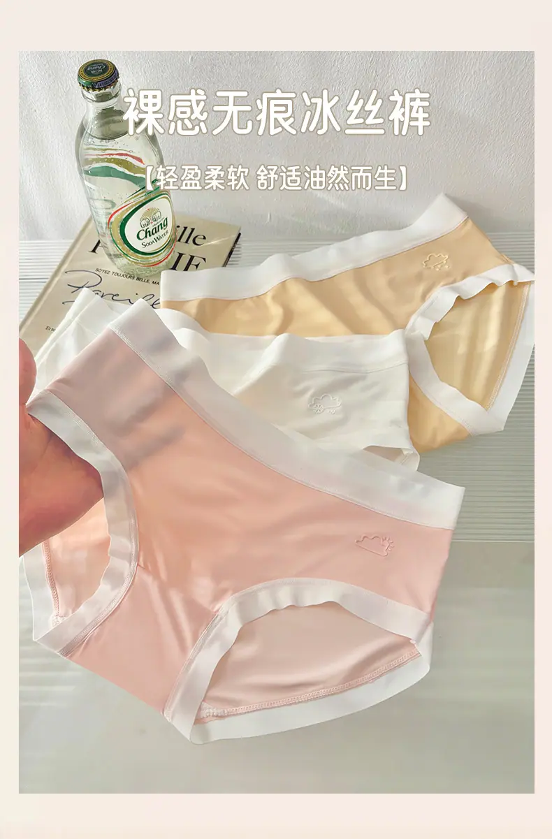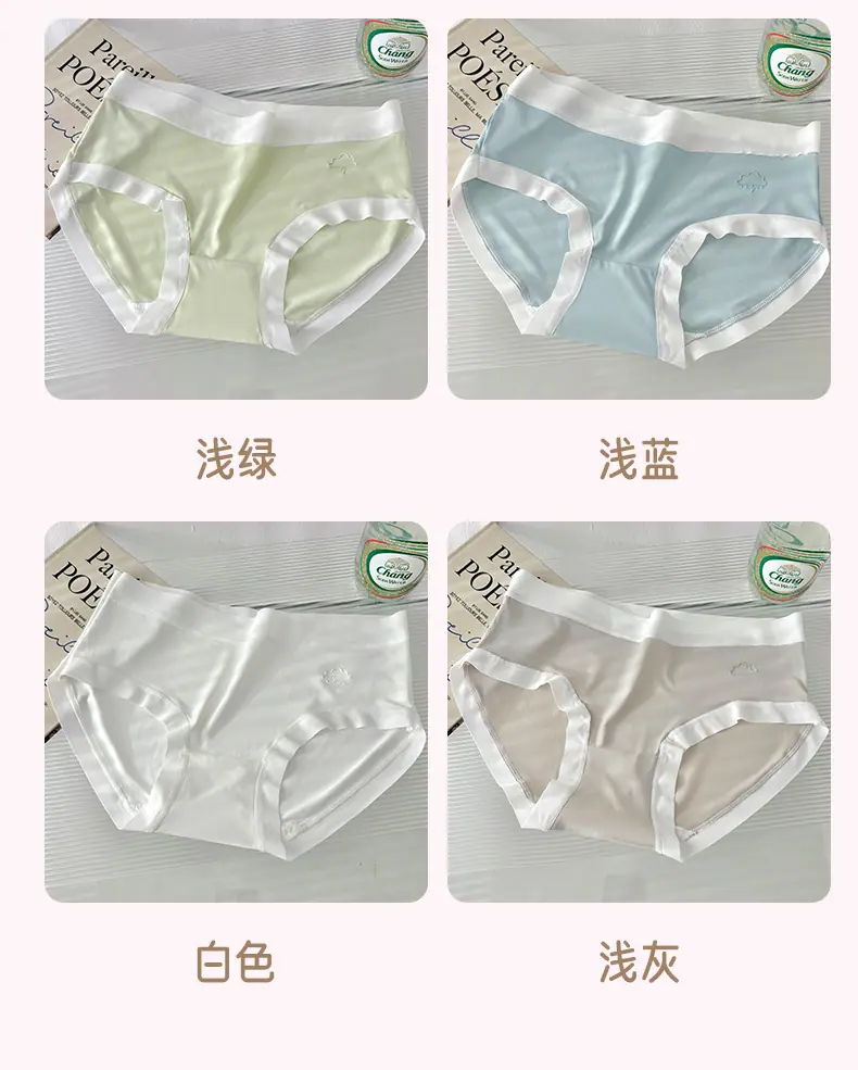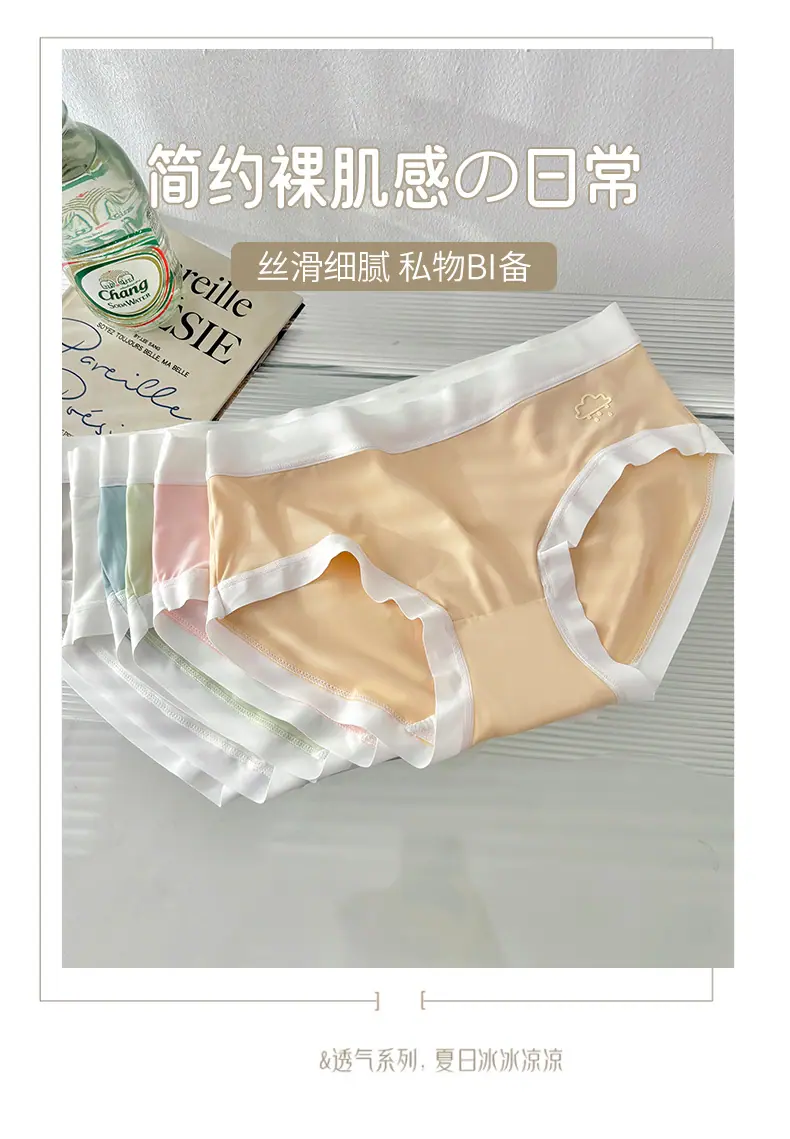 Otoño 2024 Nuevo Ropa Interior Sin Costuras de Seda de Hielo Desnudo Estudiante Femenina Color Sólido Transpirable Simple Cintura Media Calzones de Señora