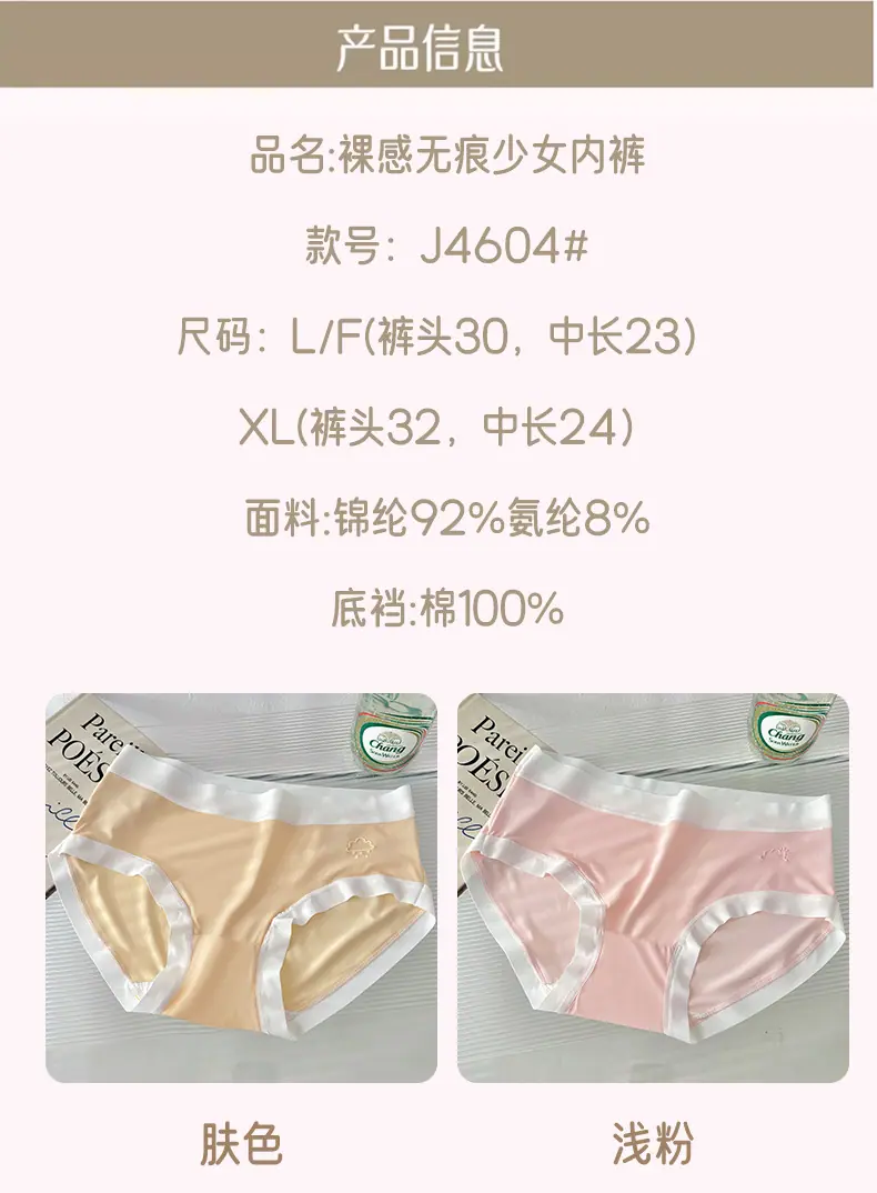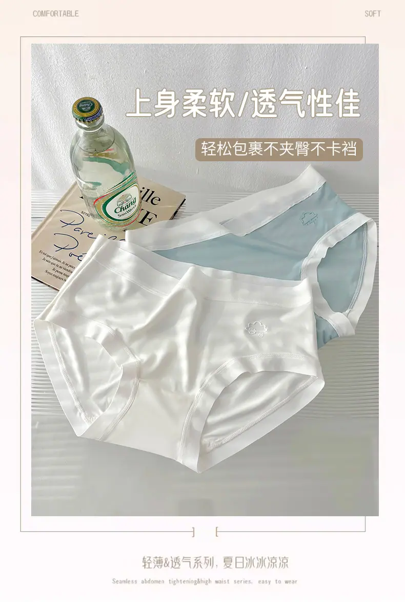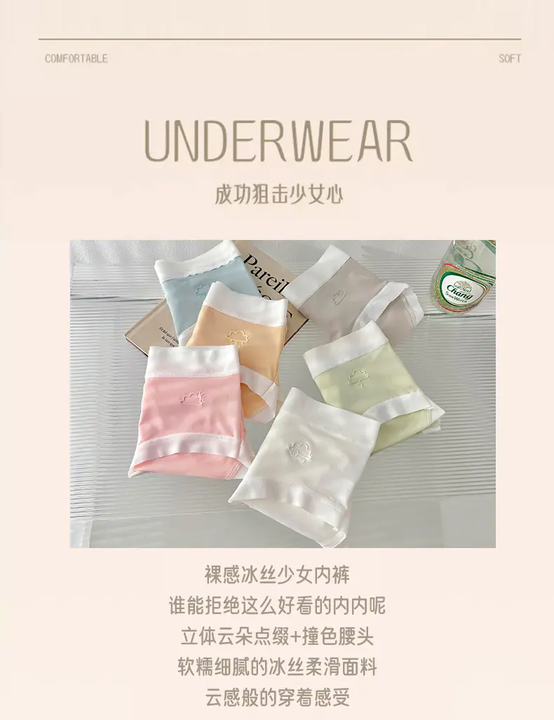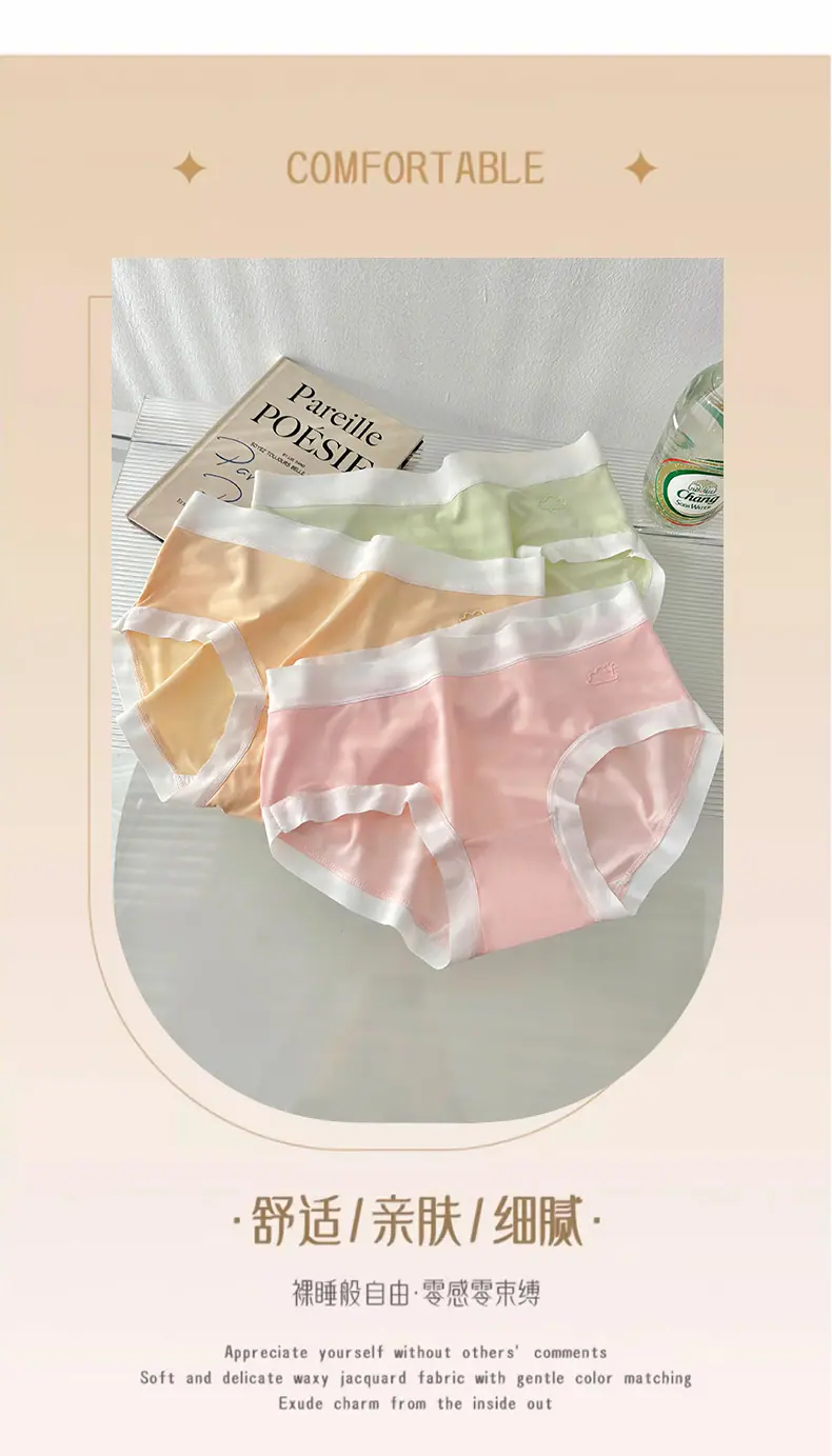 Otoño 2024 Nuevo Ropa Interior Sin Costuras de Seda de Hielo Desnudo Estudiante Femenina Color Sólido Transpirable Simple Cintura Media Calzones de Señora