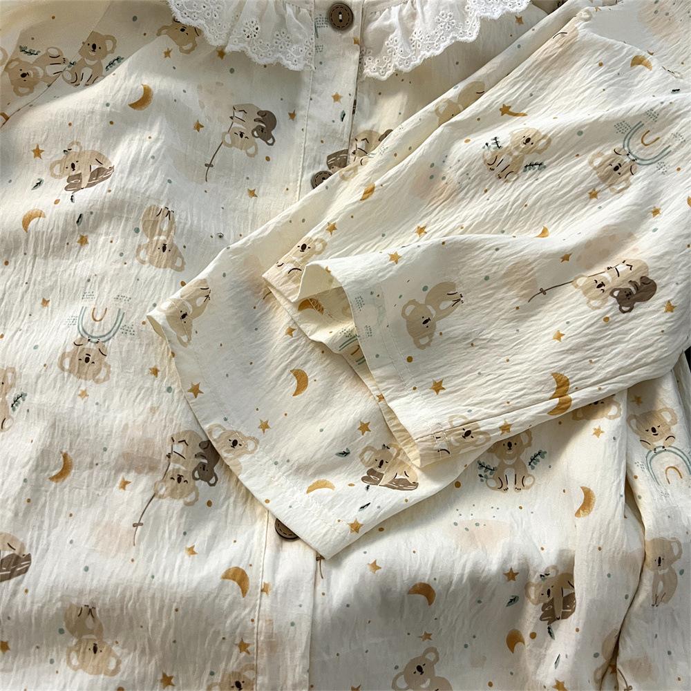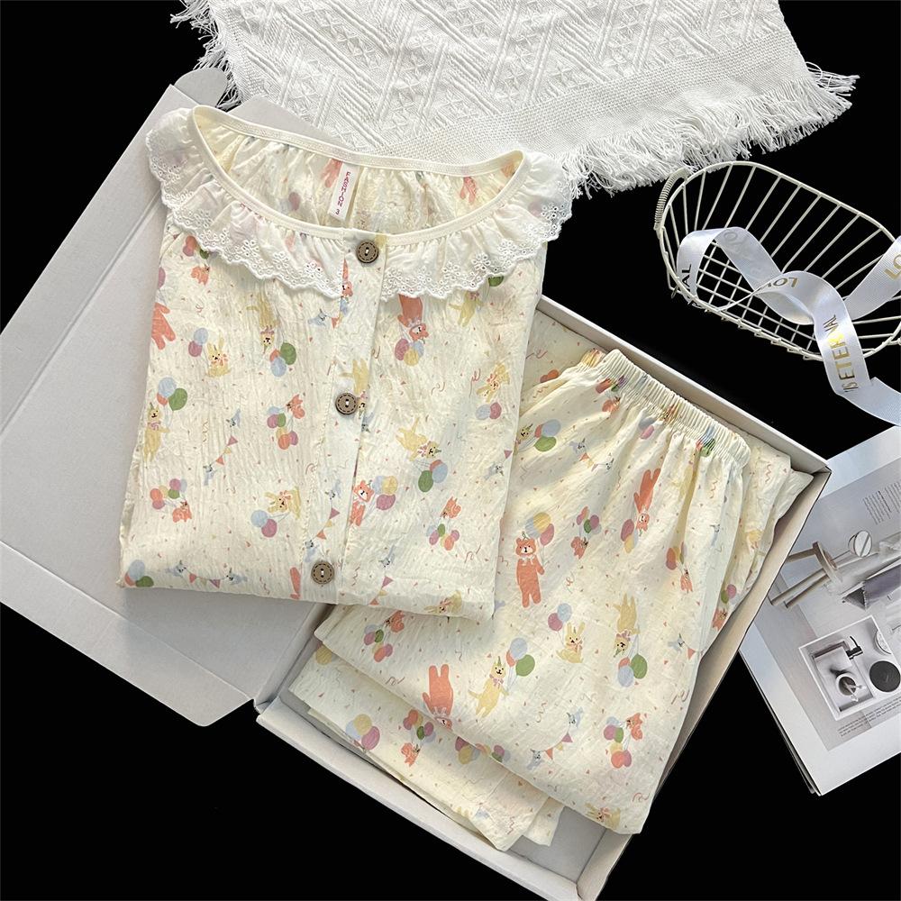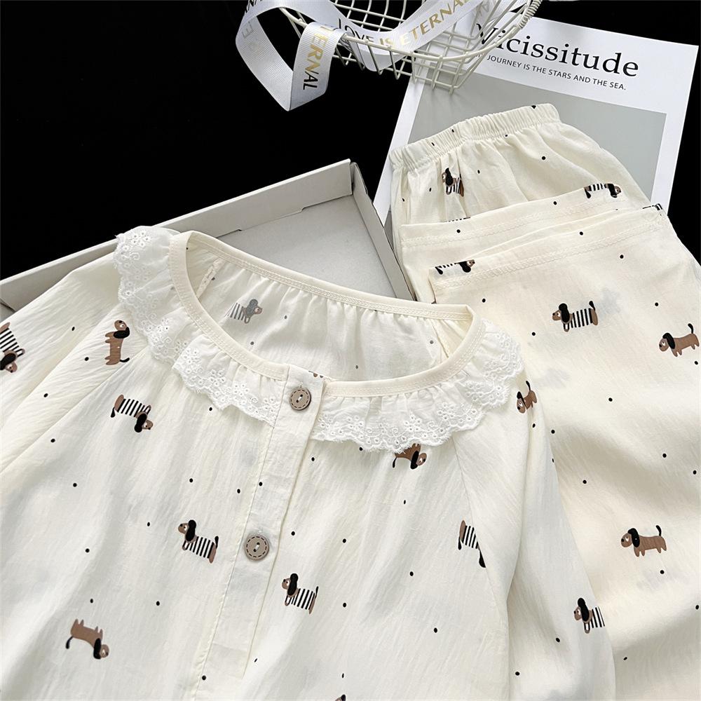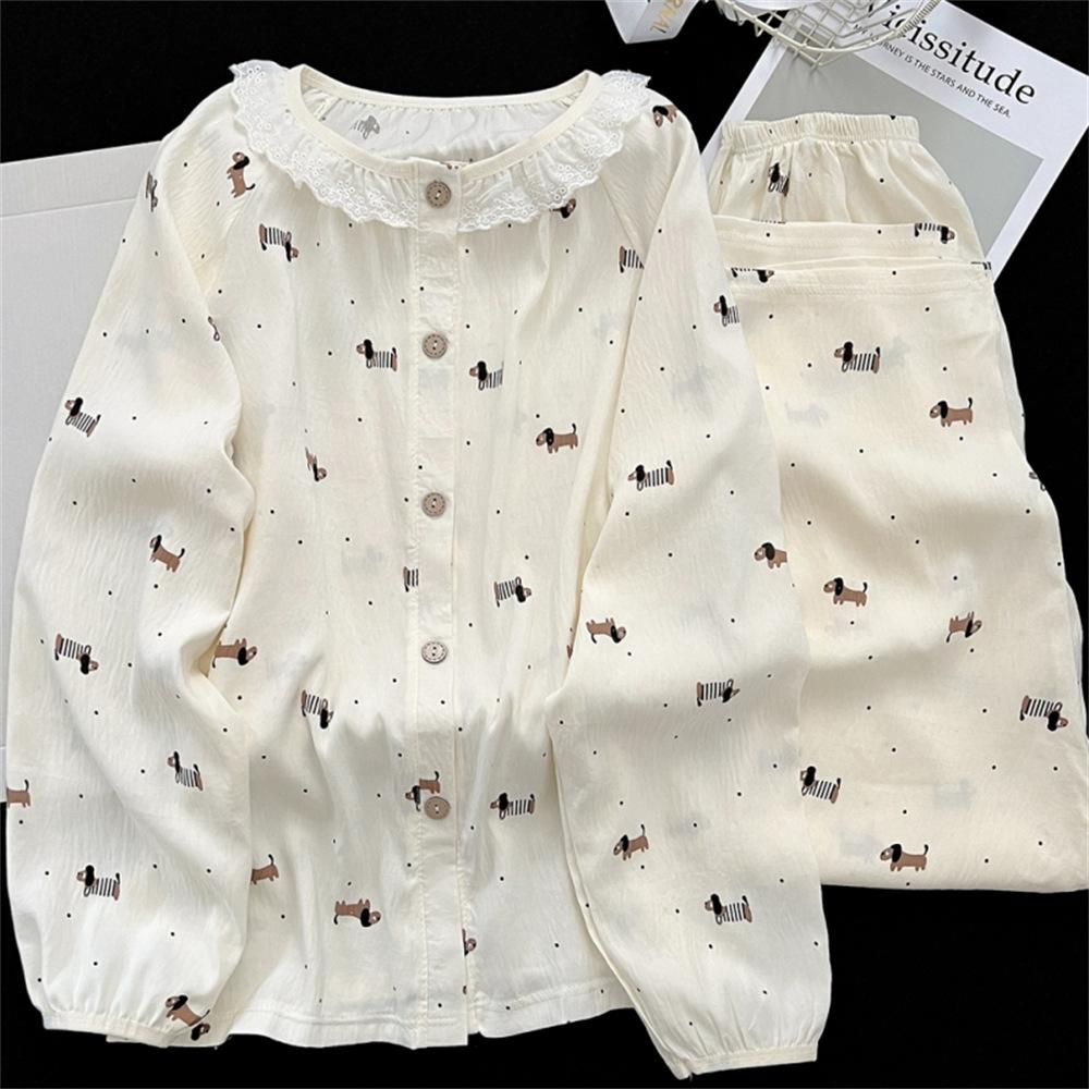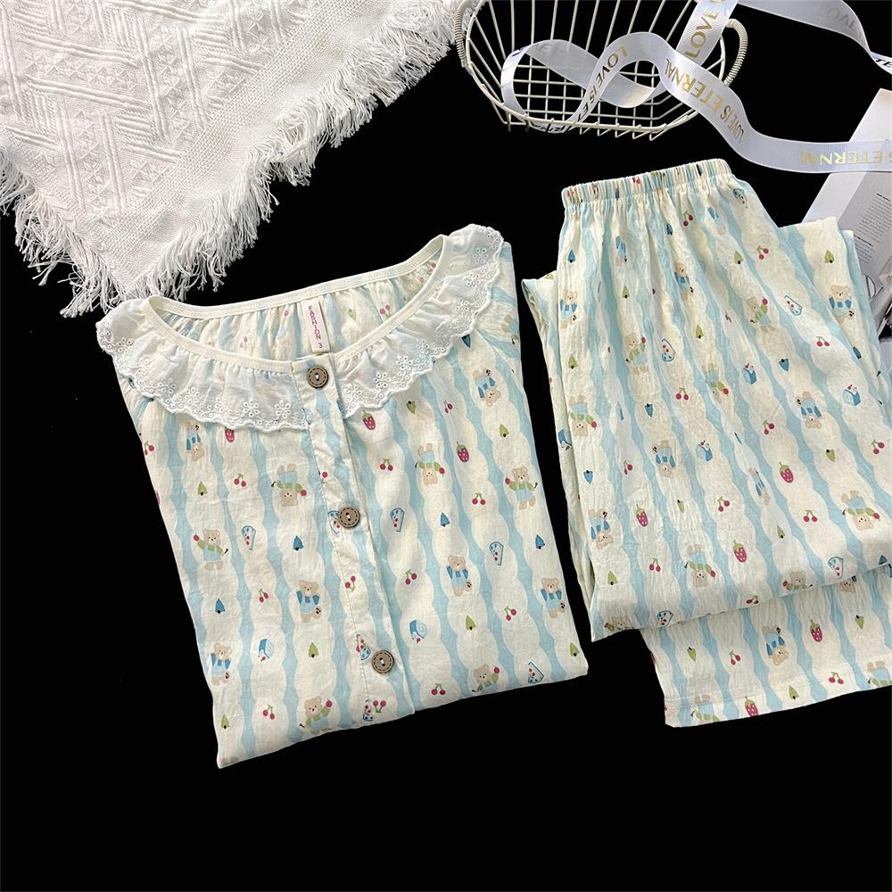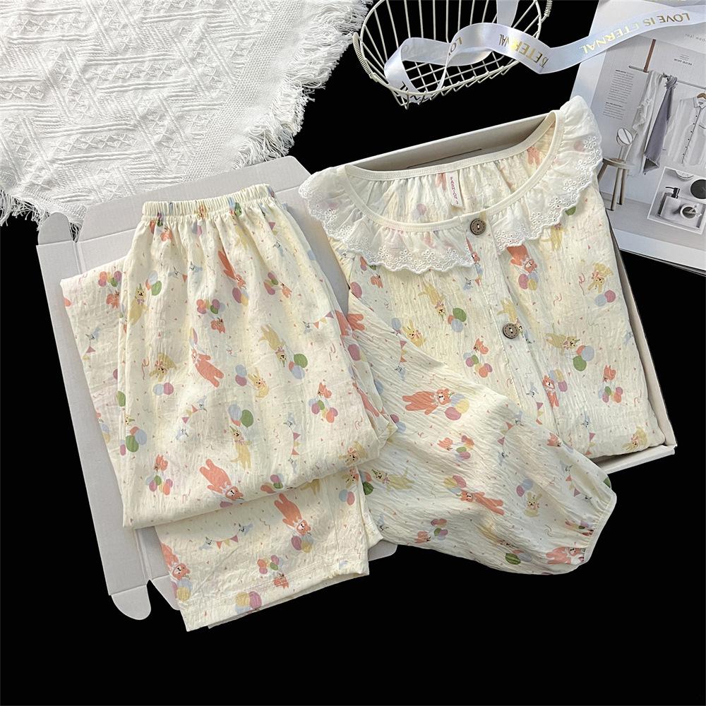 Pijama Delgado de Primavera y Otoño para Mujer Algodón Nube Flores Tridimensionales Manga Larga Pantalón Largo Dulce Niña Conjunto Ropa de Casa