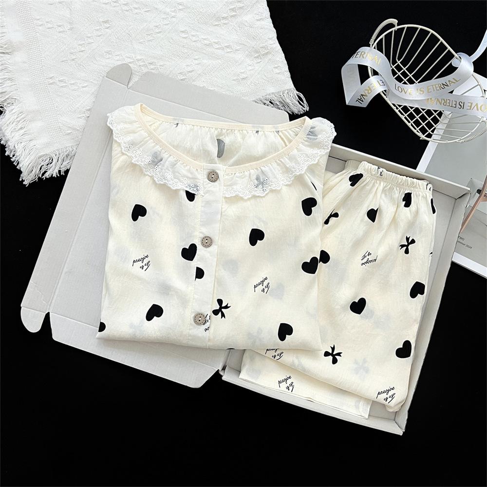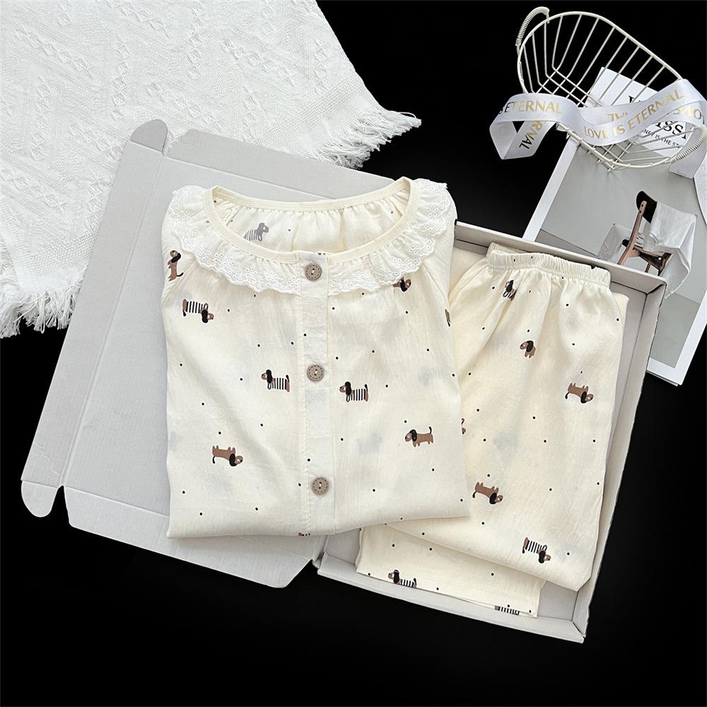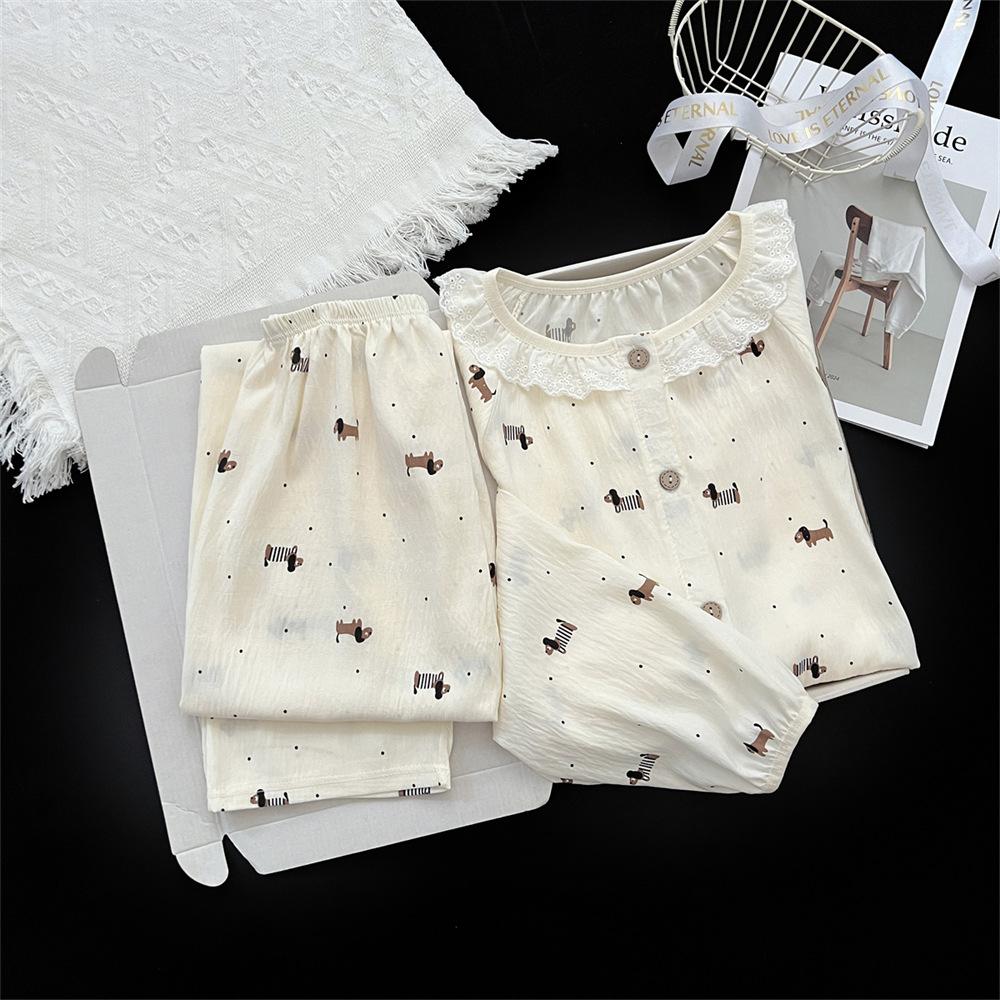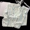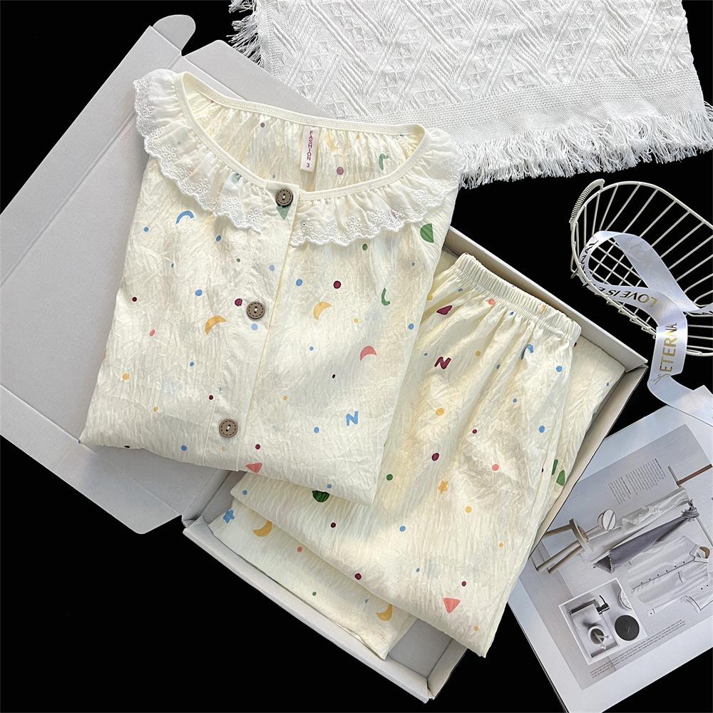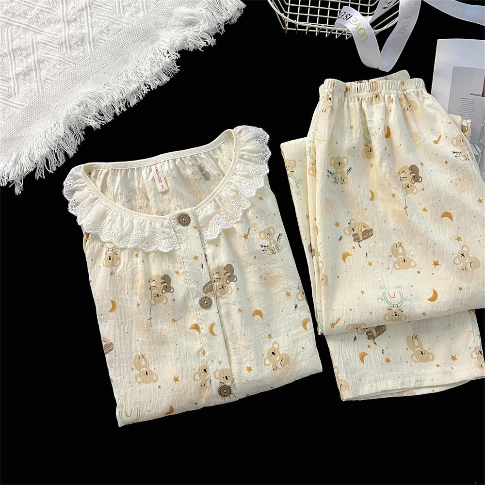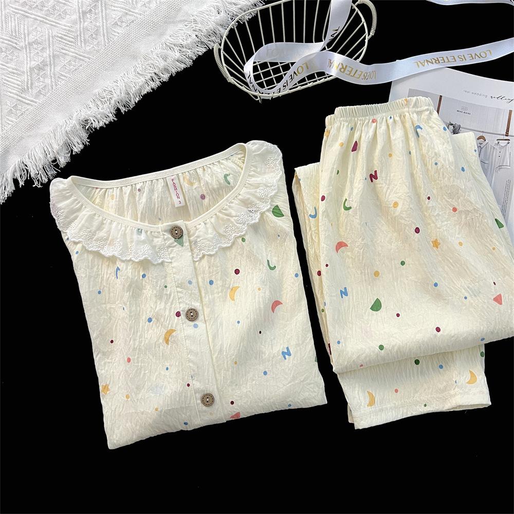 Pijama Delgado de Primavera y Otoño para Mujer Algodón Nube Flores Tridimensionales Manga Larga Pantalón Largo Dulce Niña Conjunto Ropa de Casa