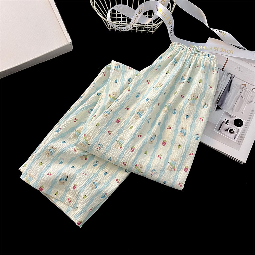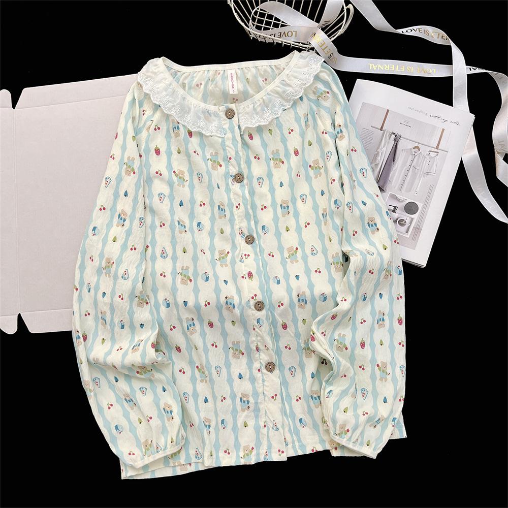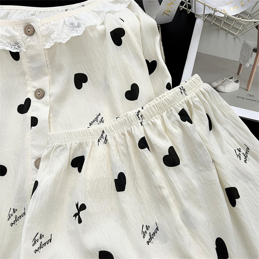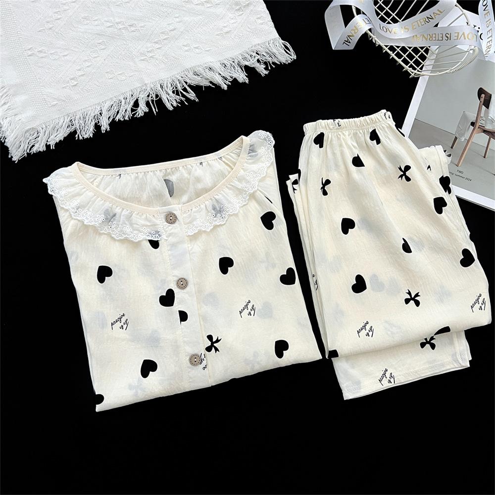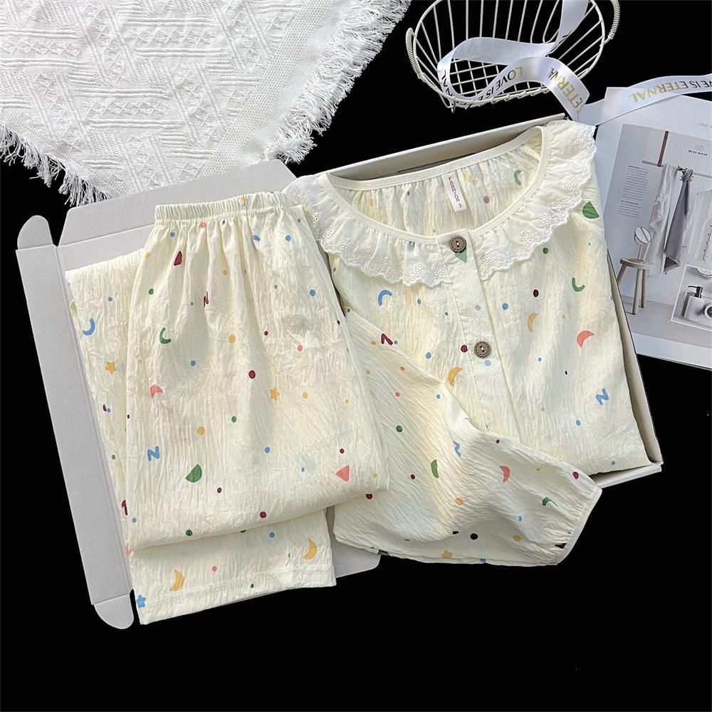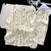 Pijama Delgado de Primavera y Otoño para Mujer Algodón Nube Flores Tridimensionales Manga Larga Pantalón Largo Dulce Niña Conjunto Ropa de Casa