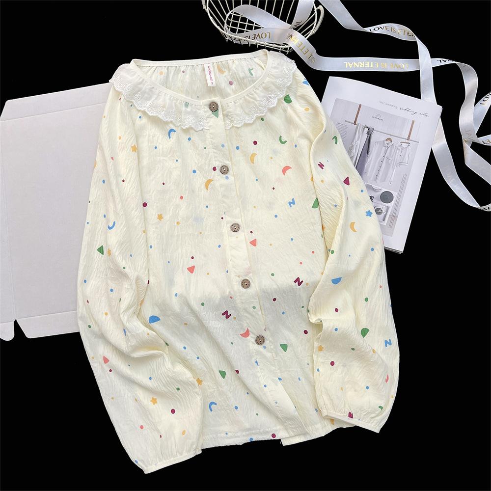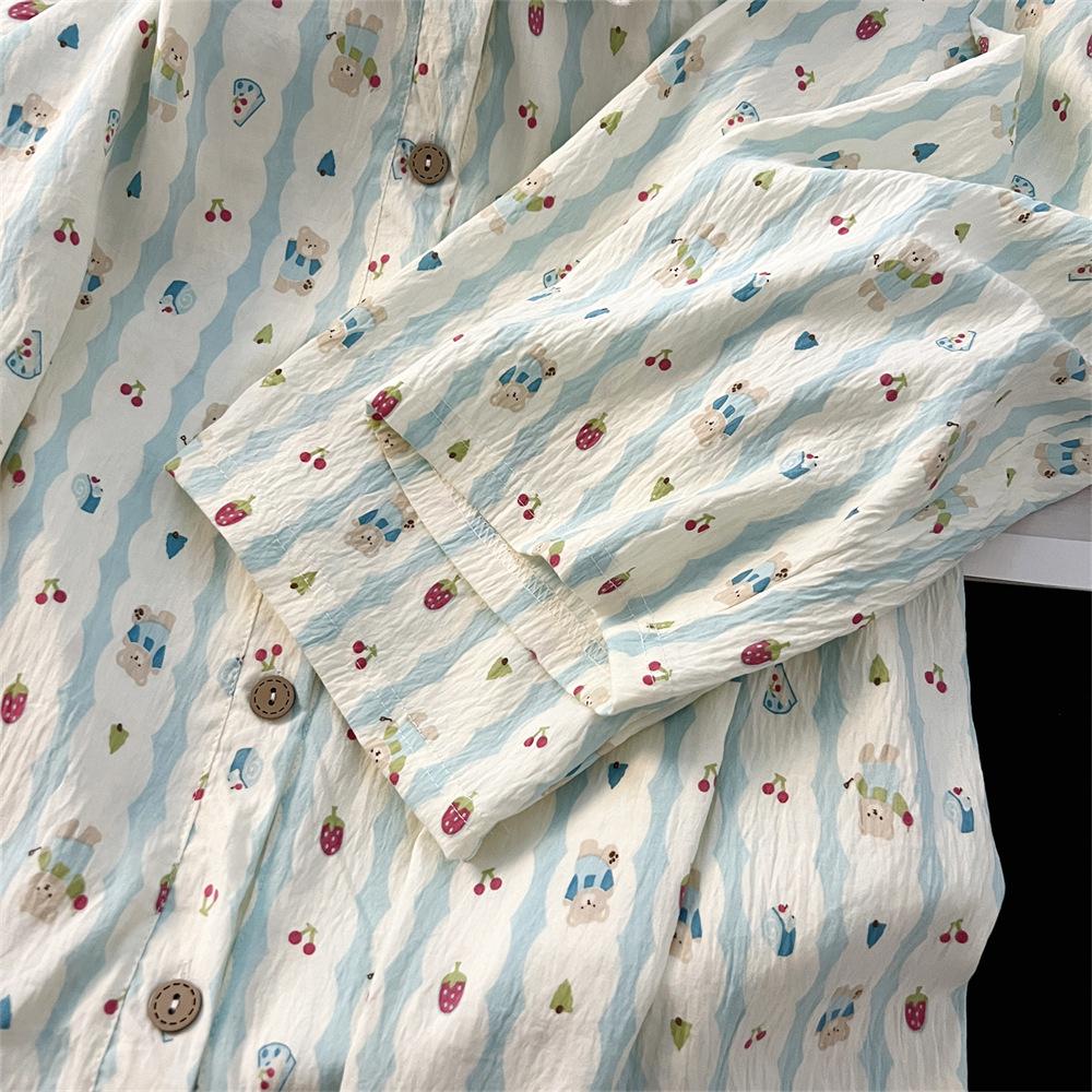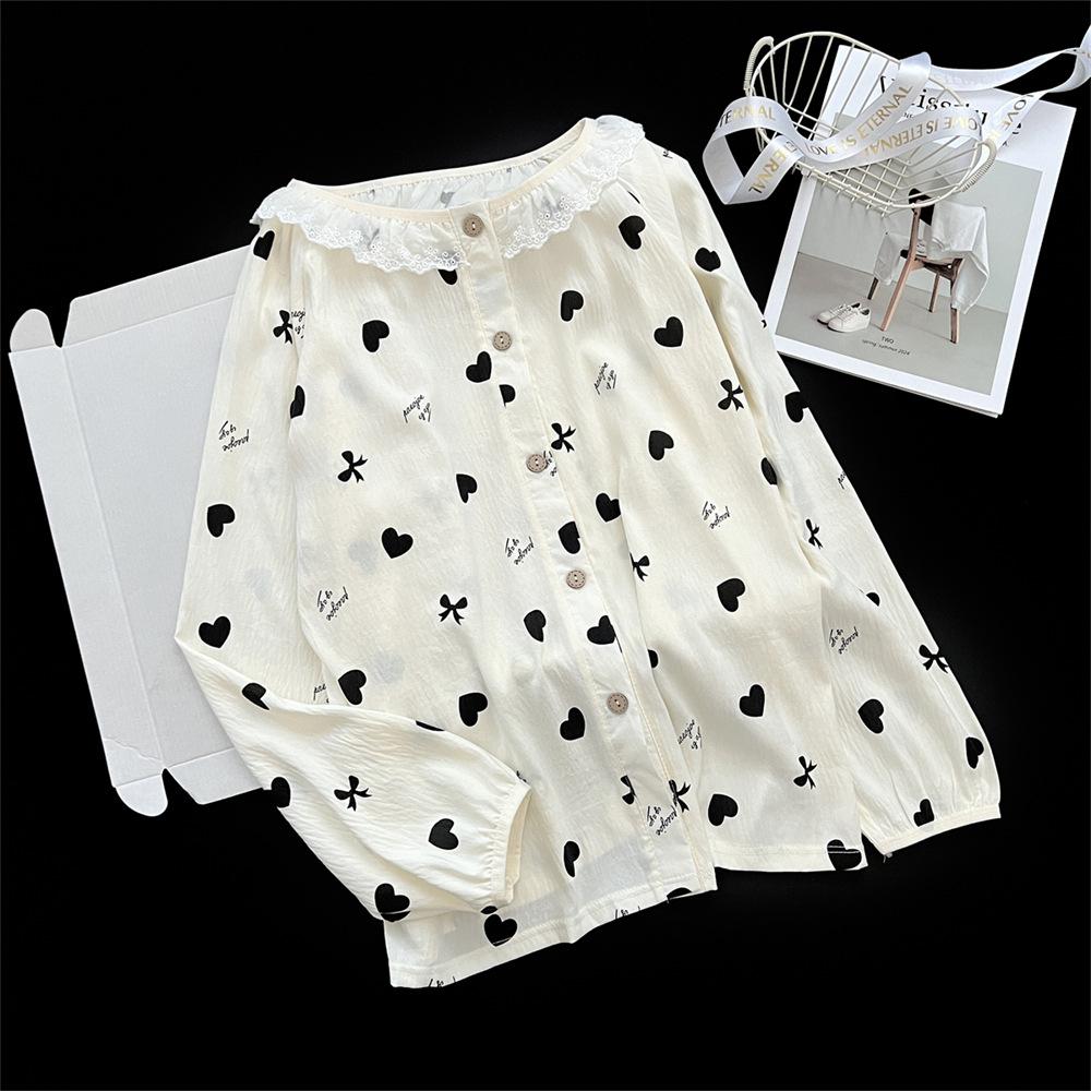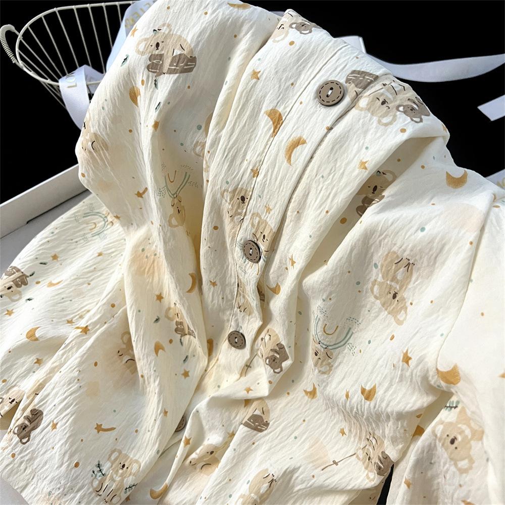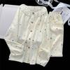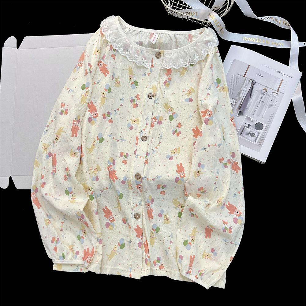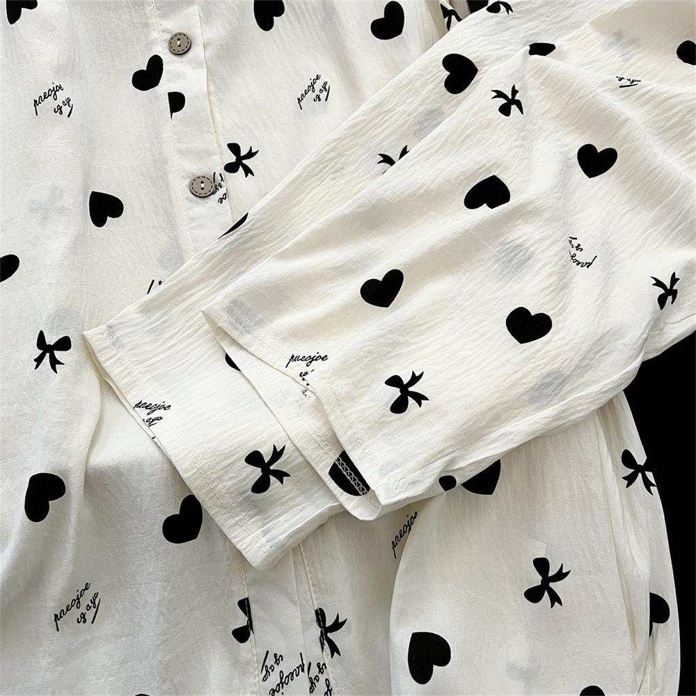 Pijama Delgado de Primavera y Otoño para Mujer Algodón Nube Flores Tridimensionales Manga Larga Pantalón Largo Dulce Niña Conjunto Ropa de Casa