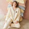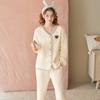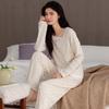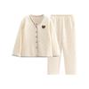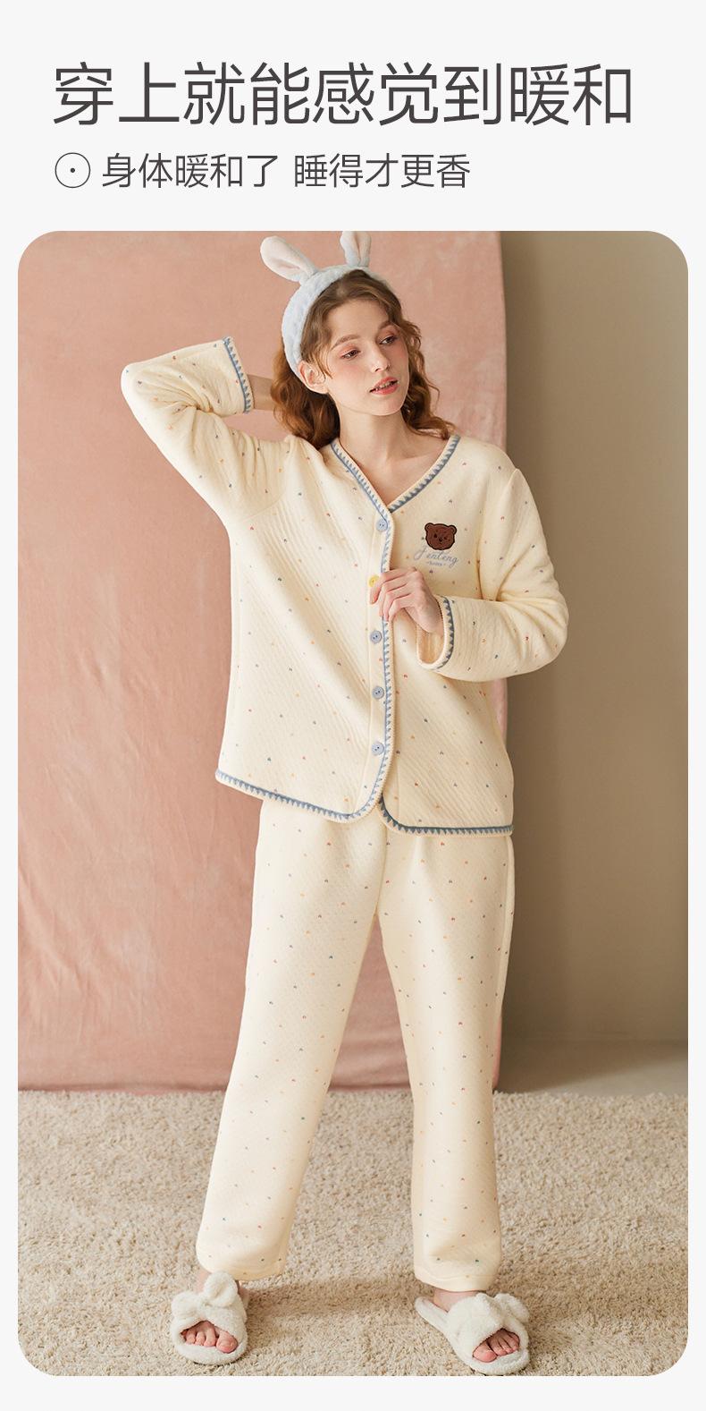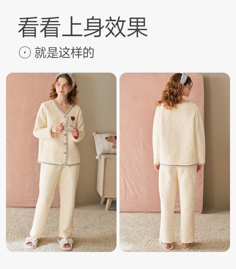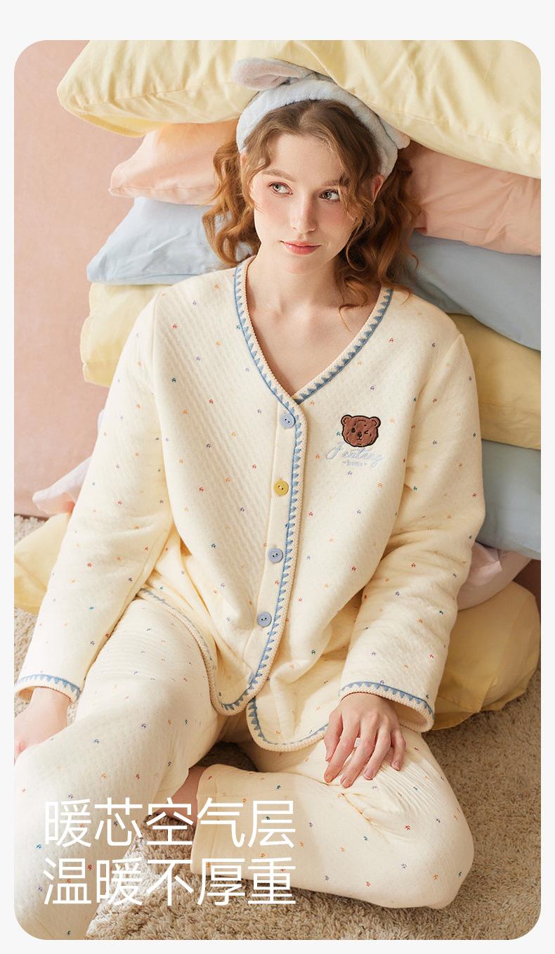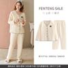 Fenteng [Algodón Cálido de Núcleo de Aire] Pijama de Mujer Otoño/Invierno Manga Larga Algodón Puro Conjunto Casual Talla Grande Ropa de Casa