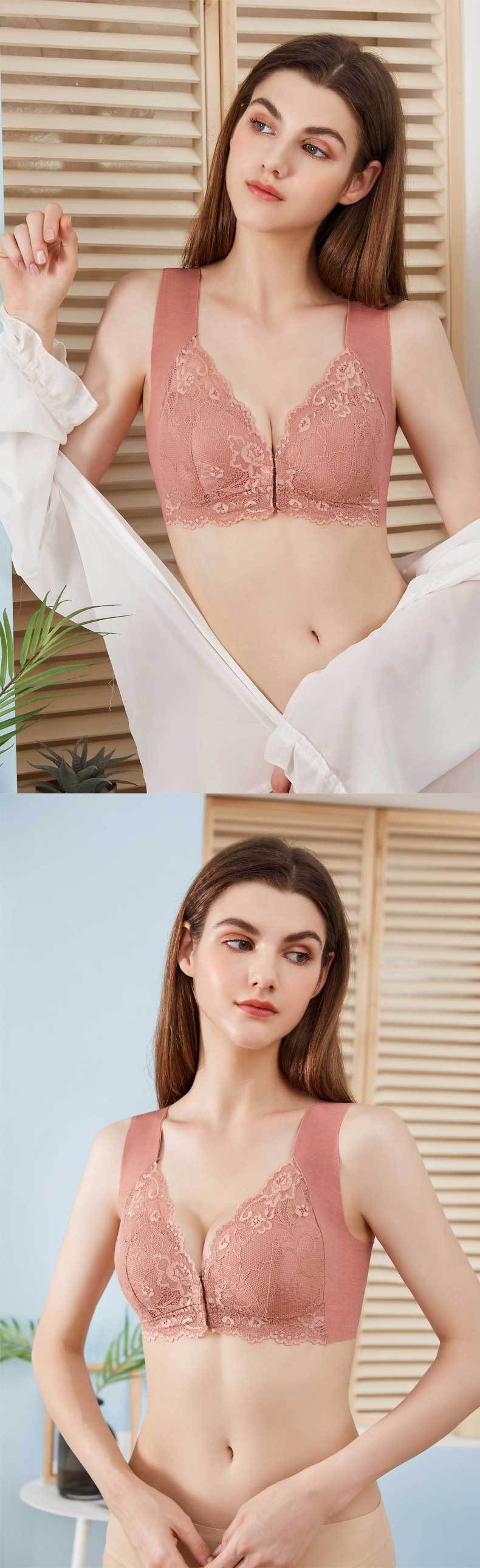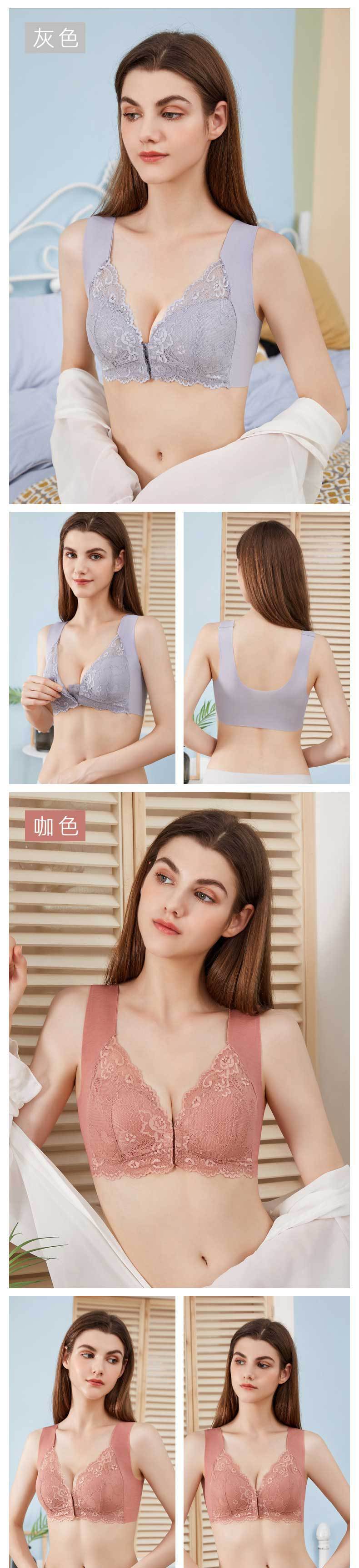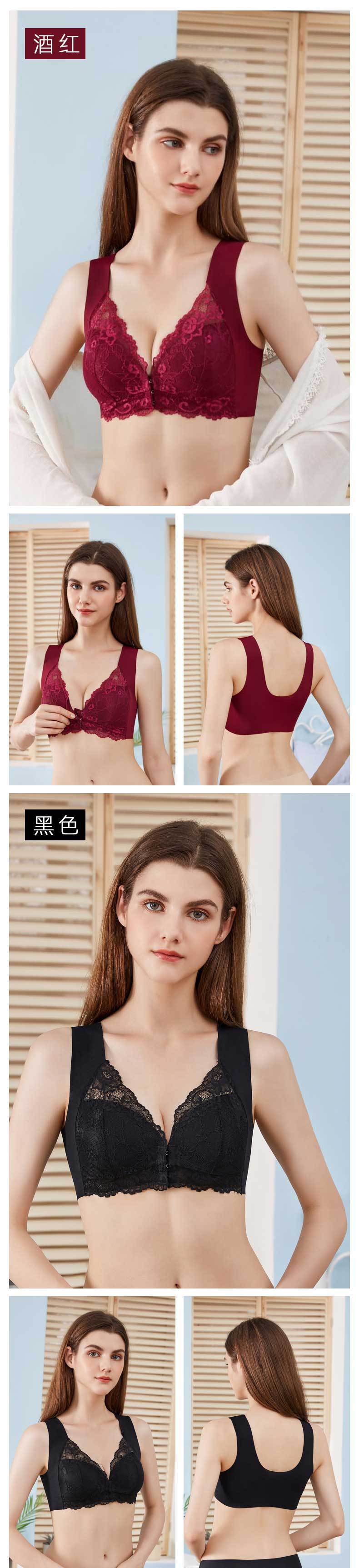 Sujetador de talla grande europeo y americano transfronterizo Sujetador chaleco con hebilla delantera Sexy encaje sin aro Sujetador push-up Ropa interior sin costuras