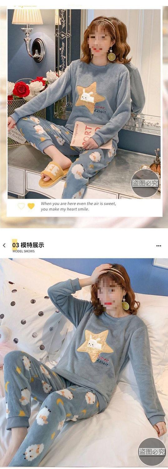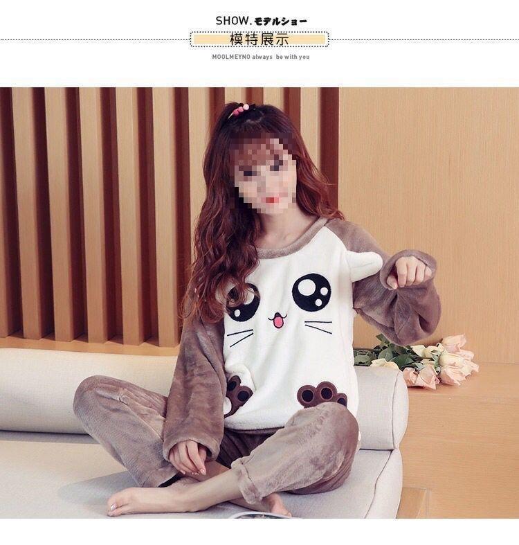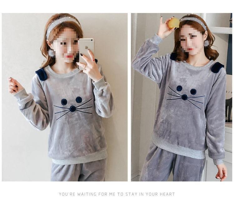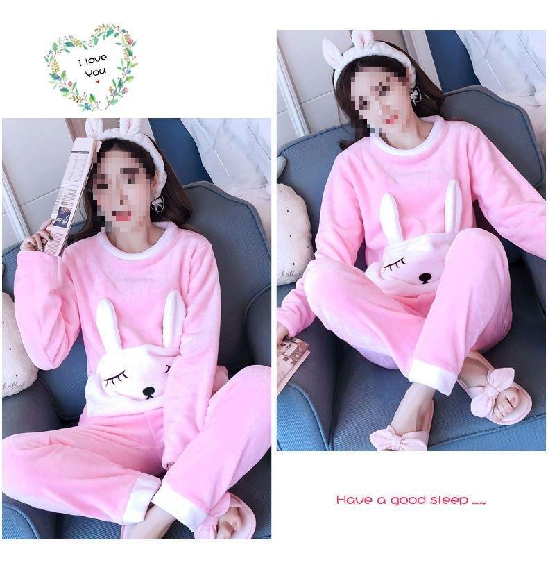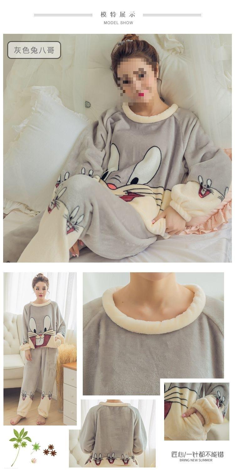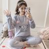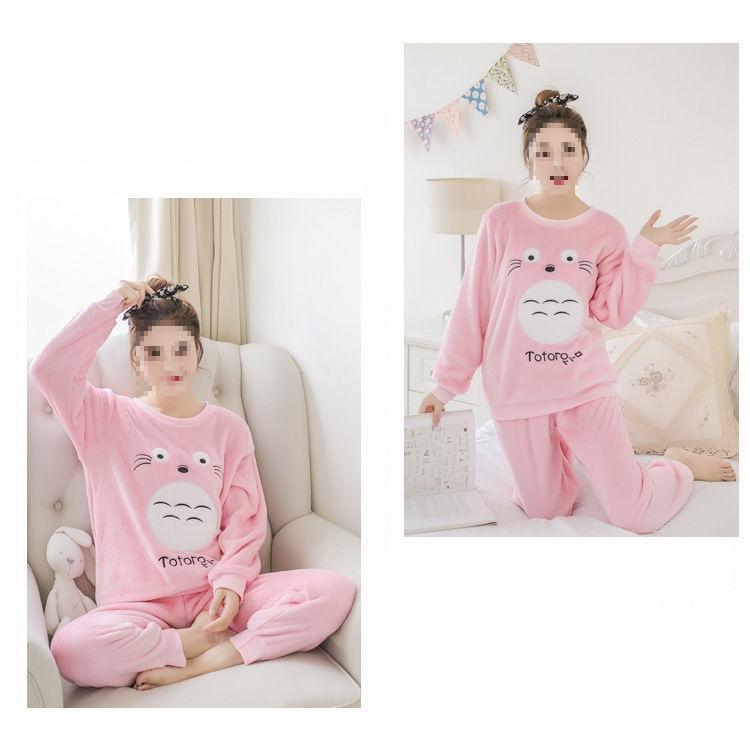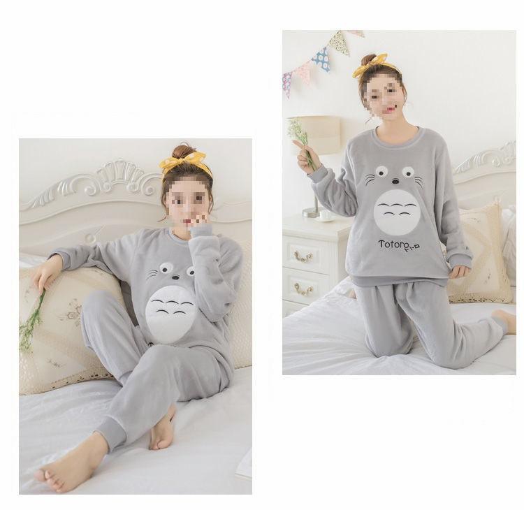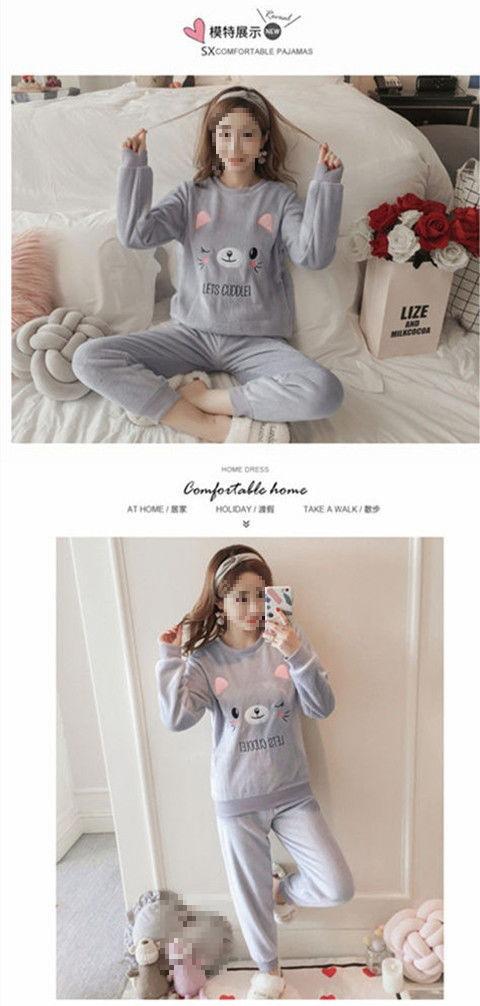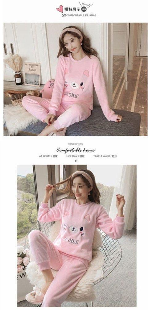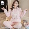 Conjunto para Estar en Casa Pijamas Lindos para Mujer Invierno Grueso Otoño e Invierno Estudiante Franela Dibujos Animados Invierno Forro Polar Coral Cálido