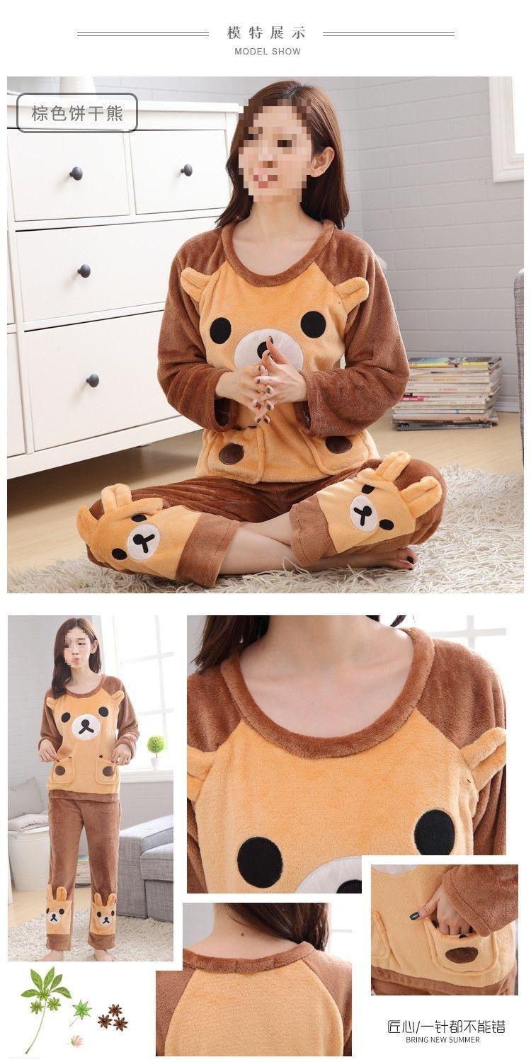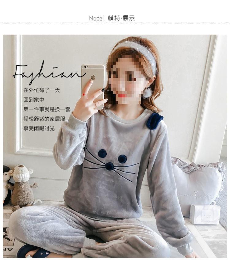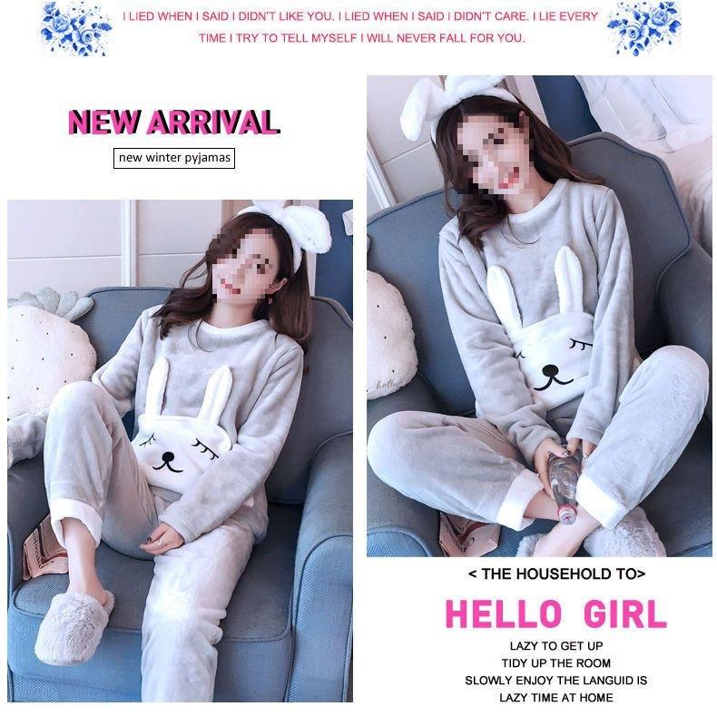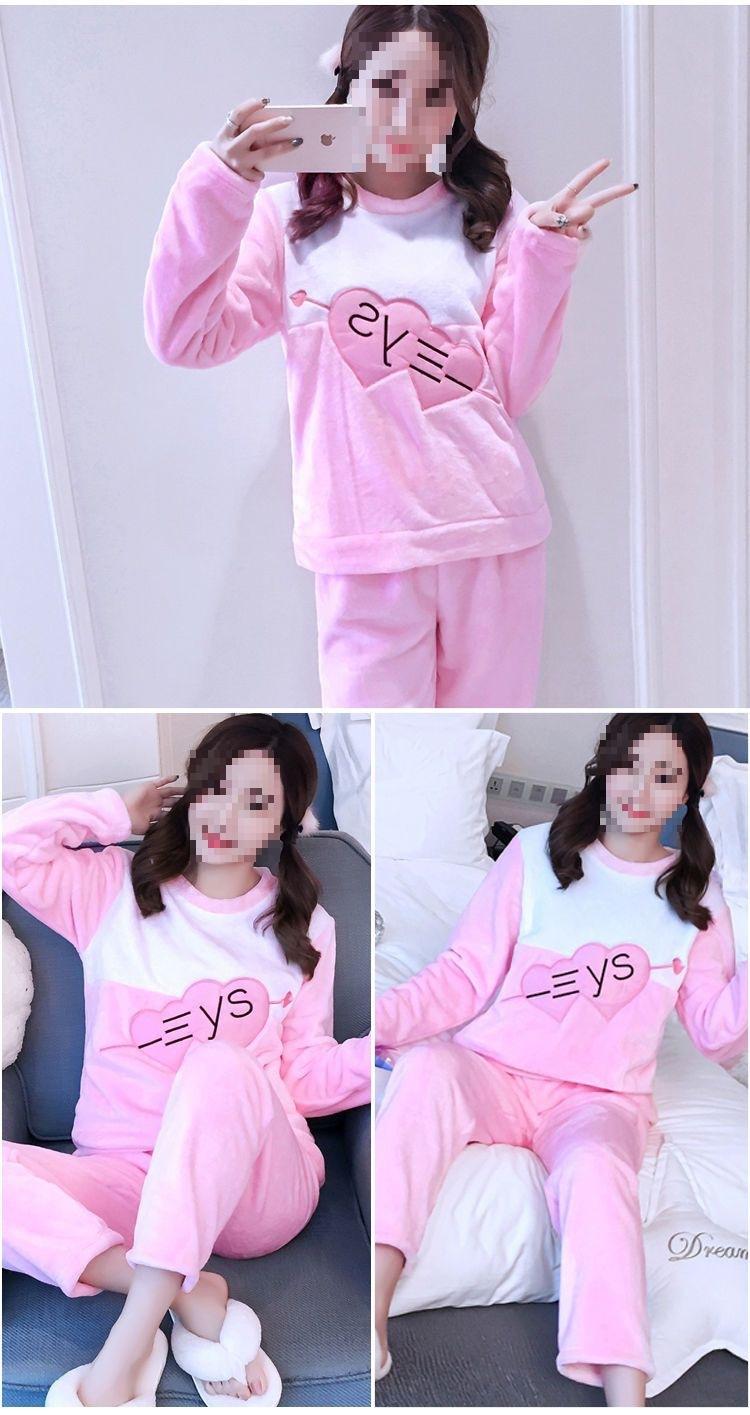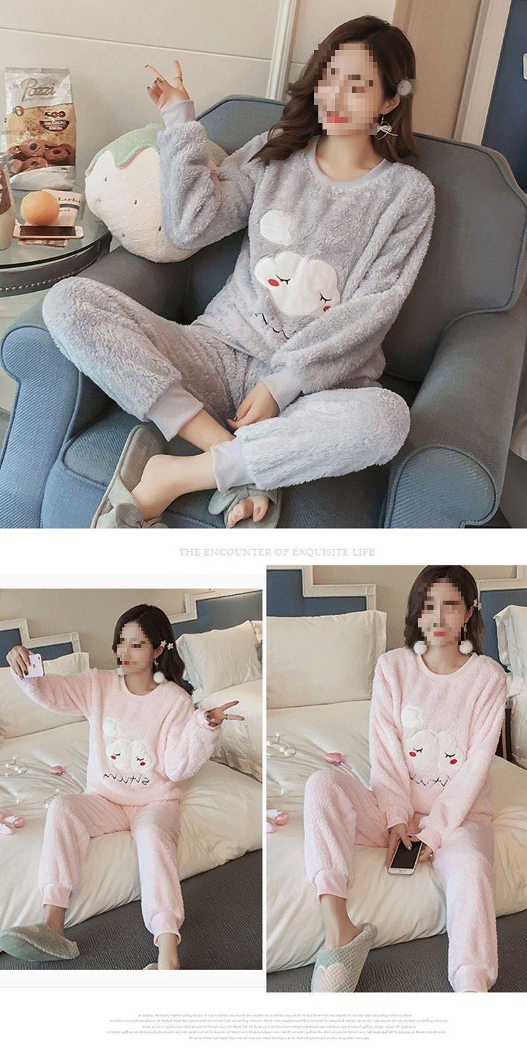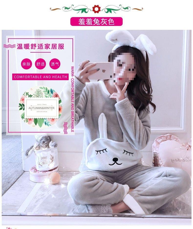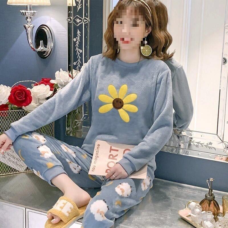 Conjunto para Estar en Casa Pijamas Lindos para Mujer Invierno Grueso Otoño e Invierno Estudiante Franela Dibujos Animados Invierno Forro Polar Coral Cálido